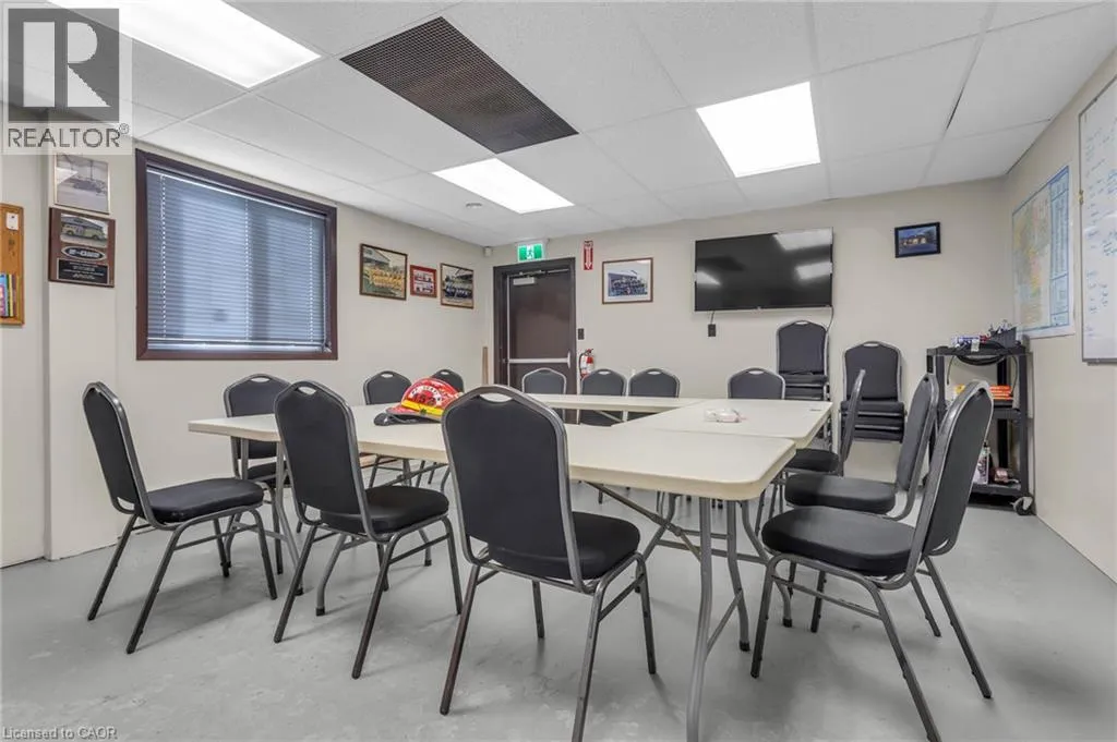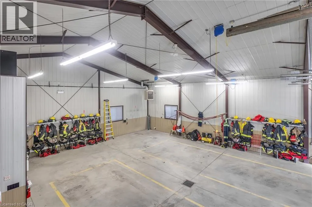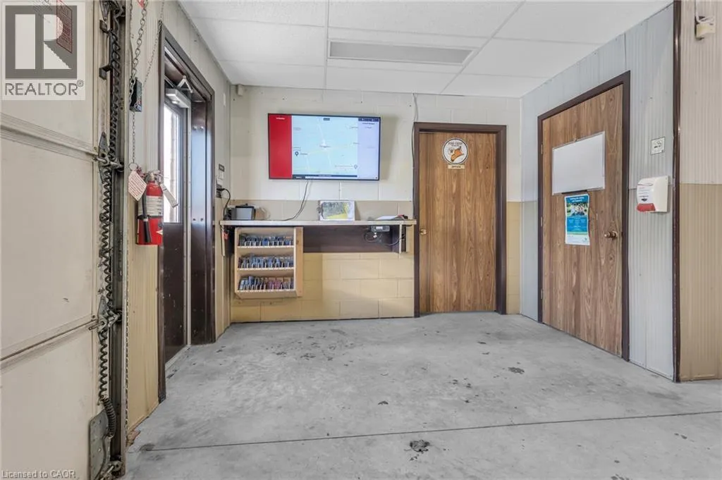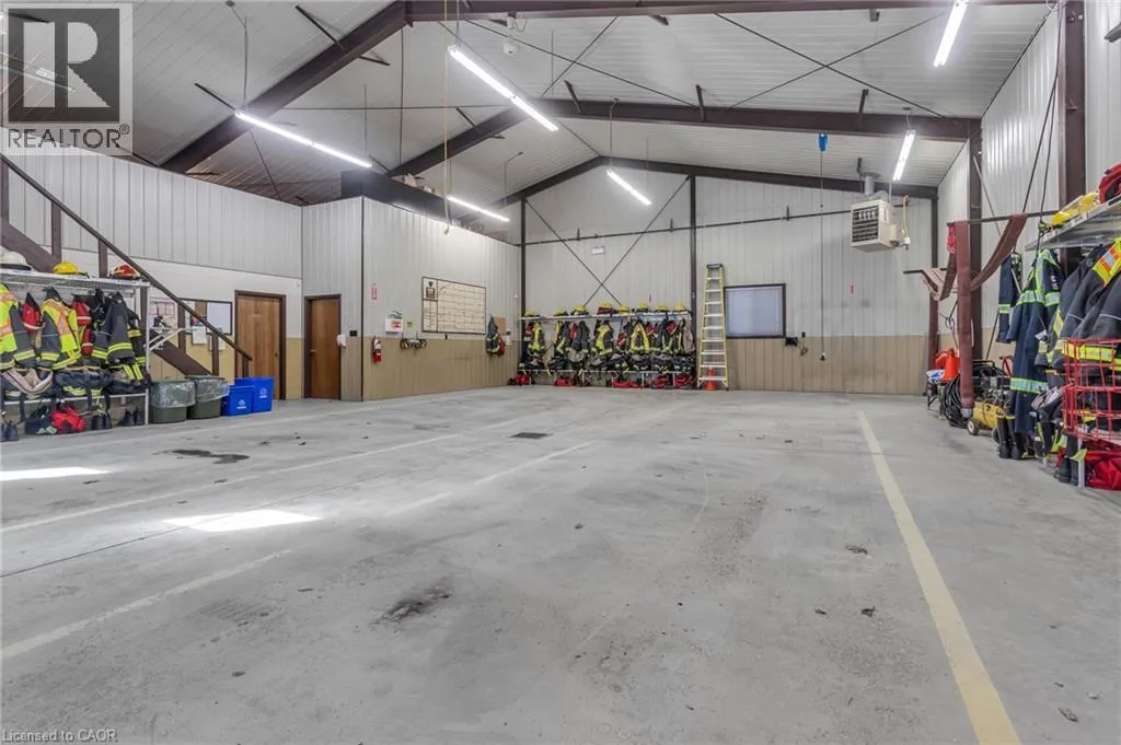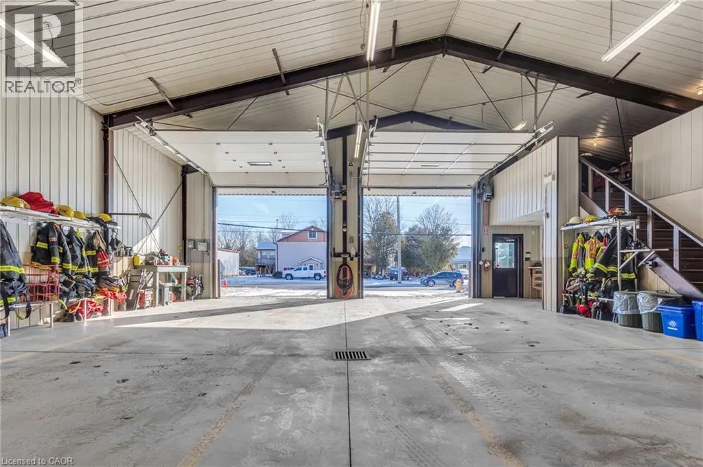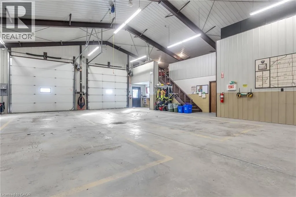 Versatile Former Firehall Offering Exceptional Potential. Rare opportunity to acquire a highly functional former firehall with flexible space suited to a wide range of potential commercial, service, or redevelopment uses, subject to required approvals. The property features a substantial 48' x 48' open bay area with two full bay doors, offering excellent utility for storage, workshop, fleet, trades, light industrial, or specialty business operations. The interior layout is well-positioned for both operational and administrative needs, including a boardroom, private office, large bathroom, and generous overhead storage area. This combination of open-span space and supporting office components creates an efficient setup for owner-operators, contractors, service-based businesses, or investors seeking adaptable square footage. Externally, the property is improved with a concrete driveway and large concrete parking area, allowing for convenient access, vehicle circulation, and on-site parking. With strong existing infrastructure, a recognizable building profile, and broad future-use potential, this property represents an excellent opportunity for purchasers seeking a distinctive asset with flexibility and upside. (id:27476)