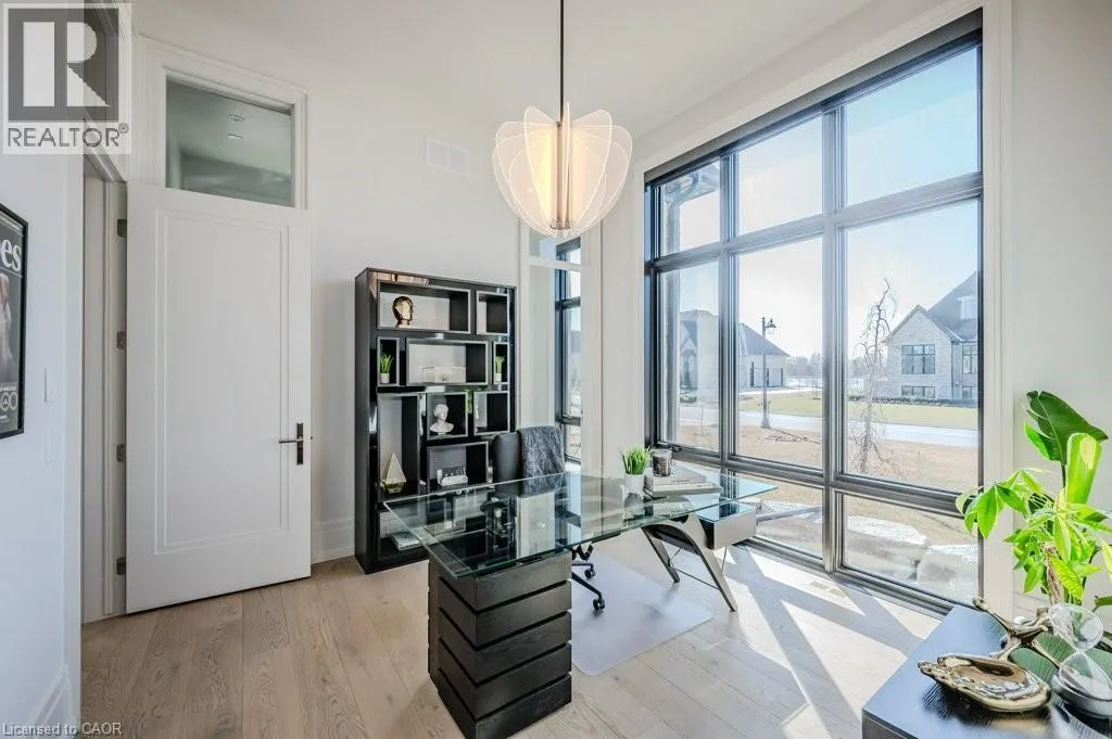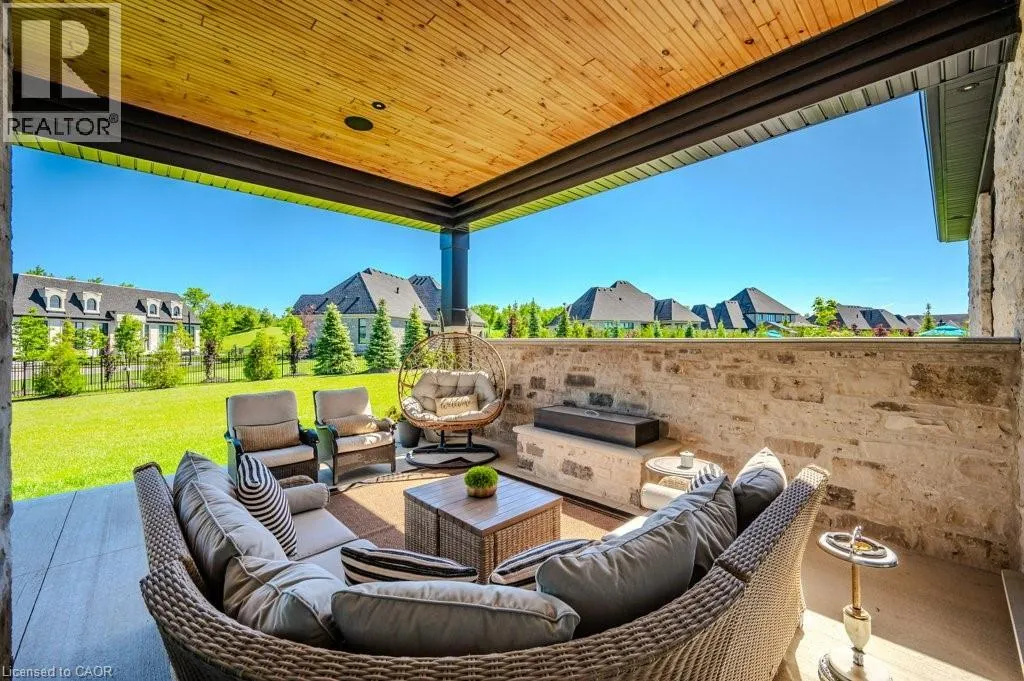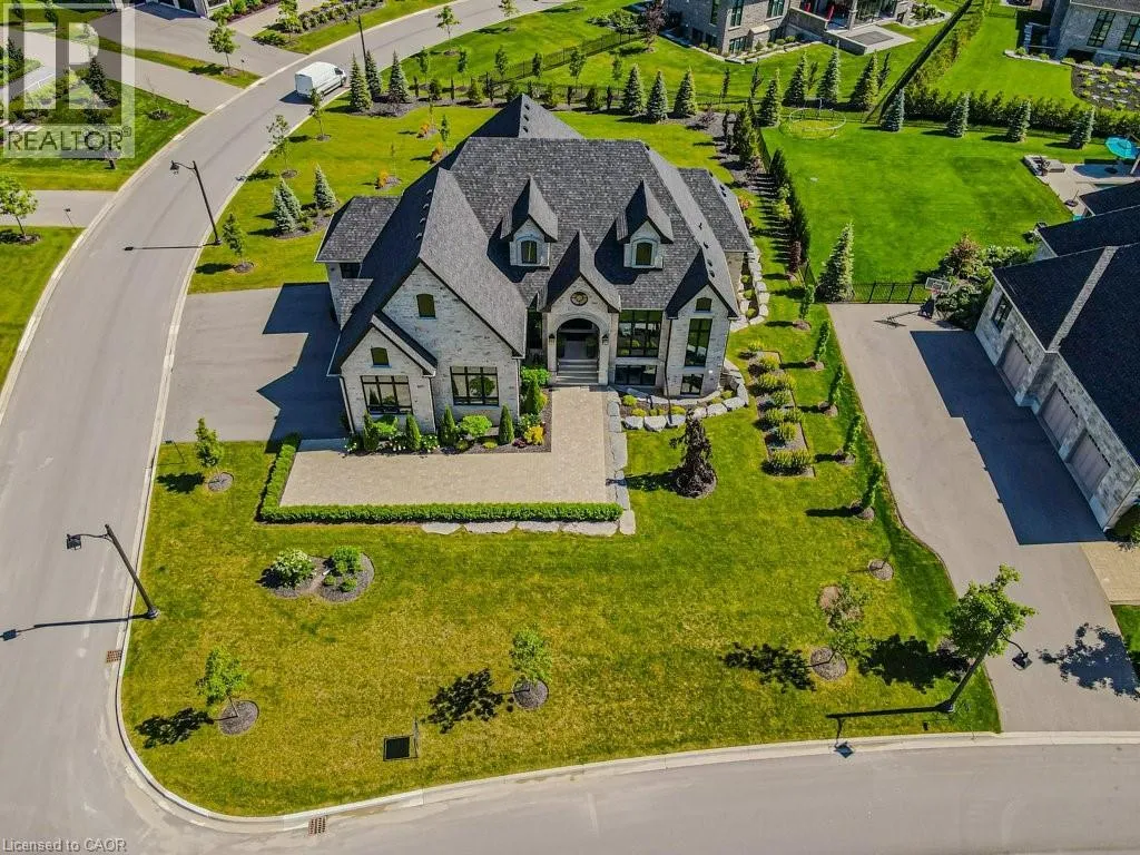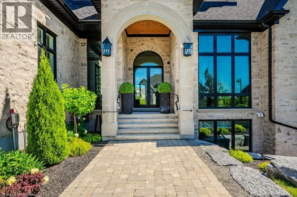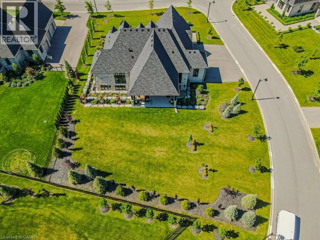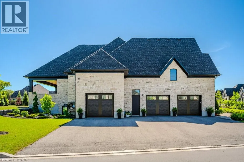 Exit 295 off 401 - North to Wellington Rd. 34 - Right on Wellington Rd. 34, Right on Heritage Lake Dr. at gated community Custom built all natural stone bungalow on a half acre in the prestigious gated community of Heritage Lake Estates. Located steps from a private lake, within 1 min to the 401 and close to schools and amenities this jaw dropping design features 12 foot ceilings, chevron flooring, custom lighting and F/P, incredible floor to ceiling windows, heated floors, 4 beds, 5 baths and over 4200 sq ft of living space. Net zero ready and fully smart wired with fibre optics and natural gas this home is future ready. Bold kitchen design tailored for entertaining features built in appliances, walk in pantry and a 20 foot island with granite counters that offers seating for up to 15! Large master suite with impressive luxury ensuite and WIC with built in's. Enjoy the comfort of warmed radiant hardwood floors in the fully finished lower level with oversized windows throughout, nearly 10' ceiling height and gas F/P. Oversized covered patio and 3 car garage, fully landscaped and irrigated with driveway parking for an additional 6-8. This builders quality is evident in every detail and is truly a must see home. (id:27476)