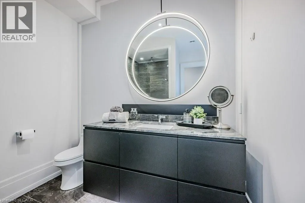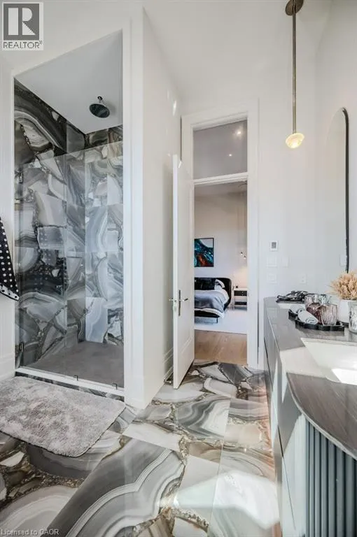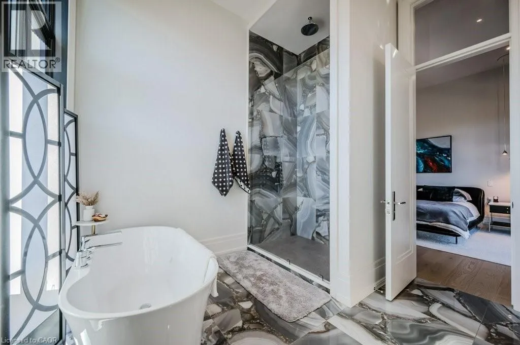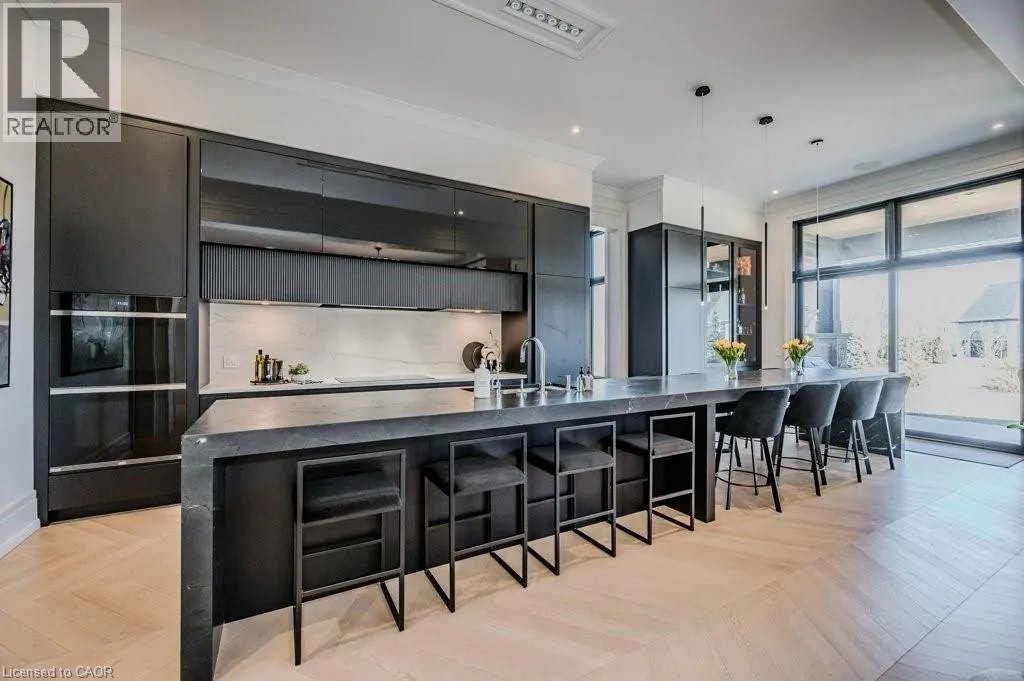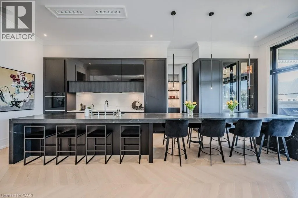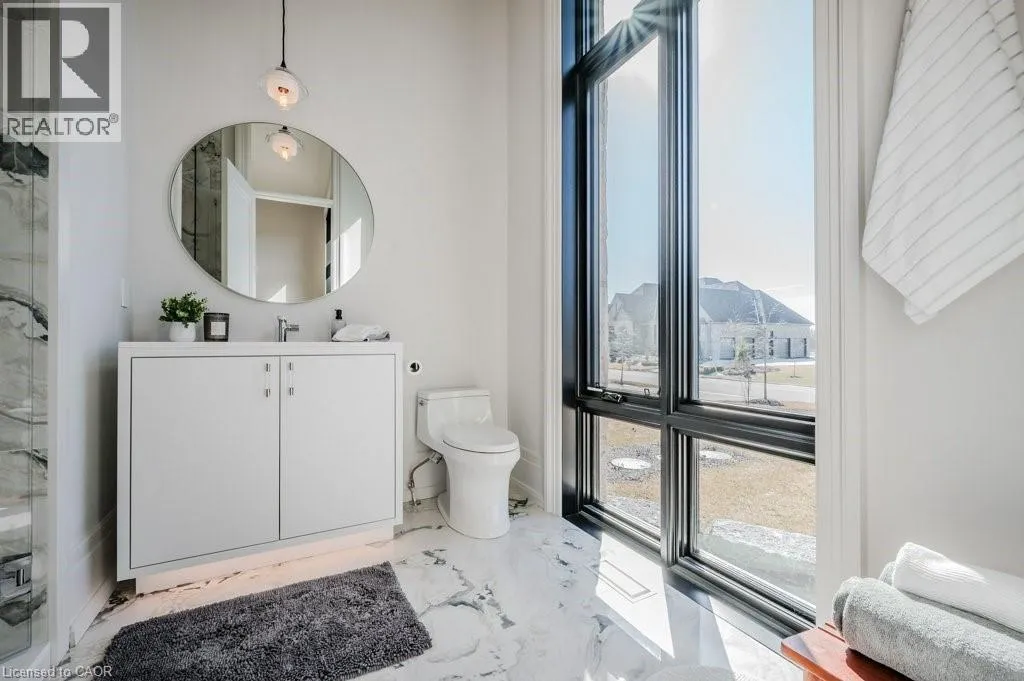 Exit 295 off 401 - North to Wellington Rd. 34 - Right on Wellington Rd. 34, Right on Heritage Lake Dr. at gated community Custom built all natural stone bungalow on a half acre in the prestigious gated community of Heritage Lake Estates. Located steps from a private lake, within 1 min to the 401 and close to schools and amenities this jaw dropping design features 12 foot ceilings, chevron flooring, custom lighting and F/P, incredible floor to ceiling windows, heated floors, 4 beds, 5 baths and over 4200 sq ft of living space. Net zero ready and fully smart wired with fibre optics and natural gas this home is future ready. Bold kitchen design tailored for entertaining features built in appliances, walk in pantry and a 20 foot island with granite counters that offers seating for up to 15! Large master suite with impressive luxury ensuite and WIC with built in's. Enjoy the comfort of warmed radiant hardwood floors in the fully finished lower level with oversized windows throughout, nearly 10' ceiling height and gas F/P. Oversized covered patio and 3 car garage, fully landscaped and irrigated with driveway parking for an additional 6-8. This builders quality is evident in every detail and is truly a must see home. (id:27476)