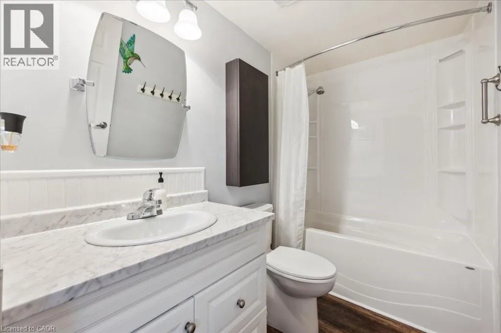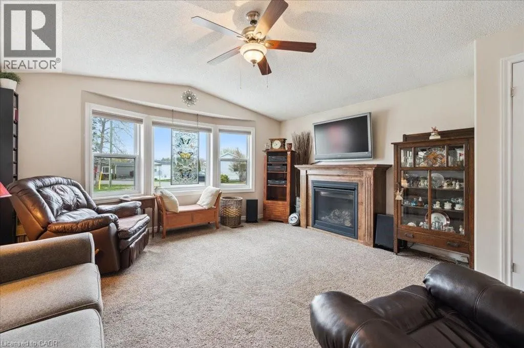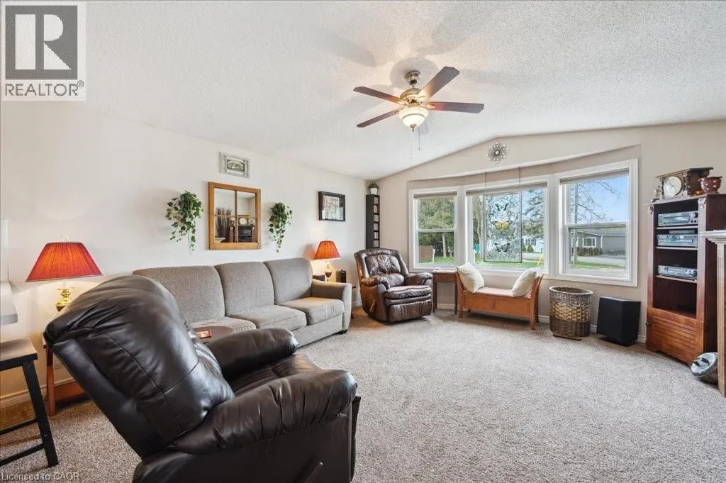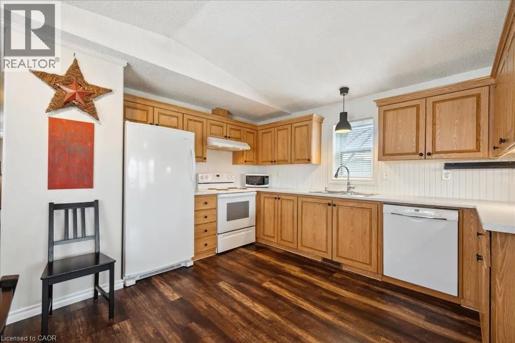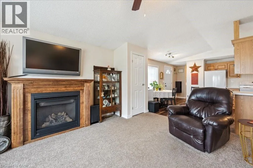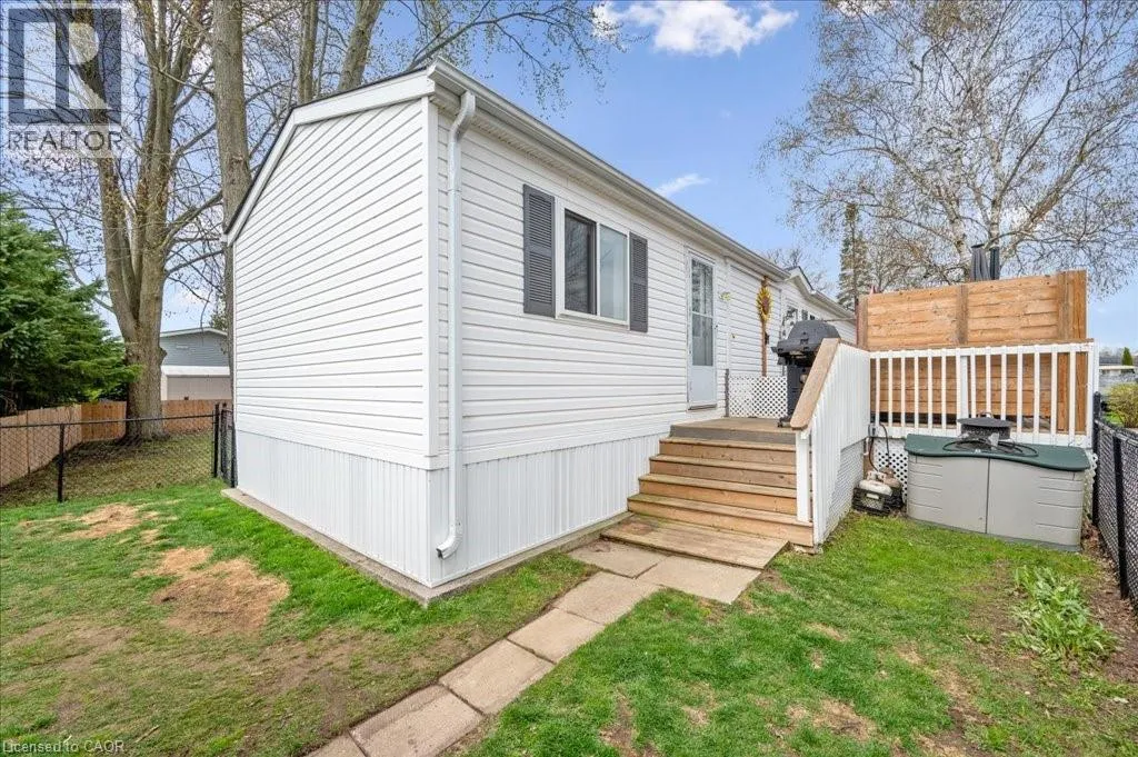 Wellington Road 34 to Mini Lakes Gate #1 Move-In Ready, Newly Renovated Gem! Welcome to 22 Olympia Avenue in the sought-after Mini Lakes communityâwhere comfort, style, and modern upgrades meet tranquil living just minutes from Guelph. This fully updated 2-bedroom bungalow is perfect for downsizers, first-time buyers, or anyone seeking a serene lifestyle with all the modern comforts. Inside, you'll find a beautifully remodeled interior featuring brand-new flooring throughout, drywall with bullnose corners, and a cozy new gas fireplace as a central focal point. The kitchen has been stylishly refreshed with a new countertop and all-new appliances, while the completely remodeled bathroom adds a touch of spa-like luxury. Enjoy peace of mind with new triple-pane windows, a new washer and dryer, and a new water heater. Step out onto the large, hot tubâready deck, perfect for entertaining, and fenced-in yardâideal for pets. The double-wide driveway offers ample parking, and new shingles complete the homeâs long list of recent improvements. The Mini Lakes community offers a unique lifestyle with a private lake for kayaking and swimming, an outdoor heated pool, clubhouse, and a welcoming calendar of social events from bocce to potlucks. Donât miss this rare chance to own a turn-key home in one of the area's most desirable lifestyle communities! (id:27476)