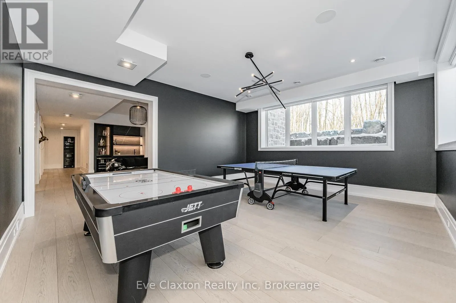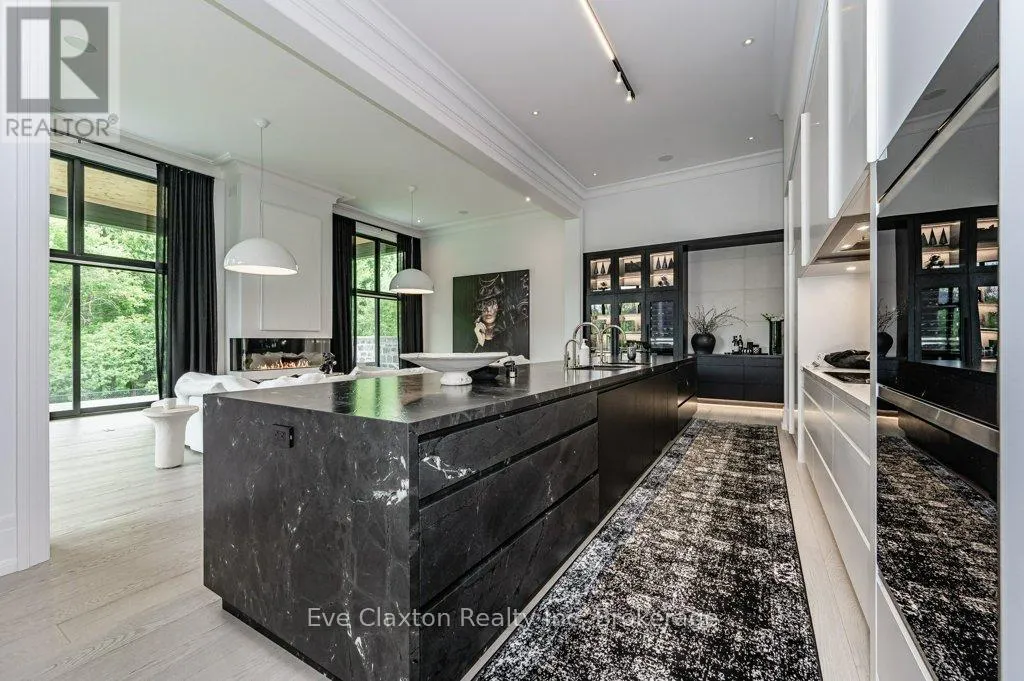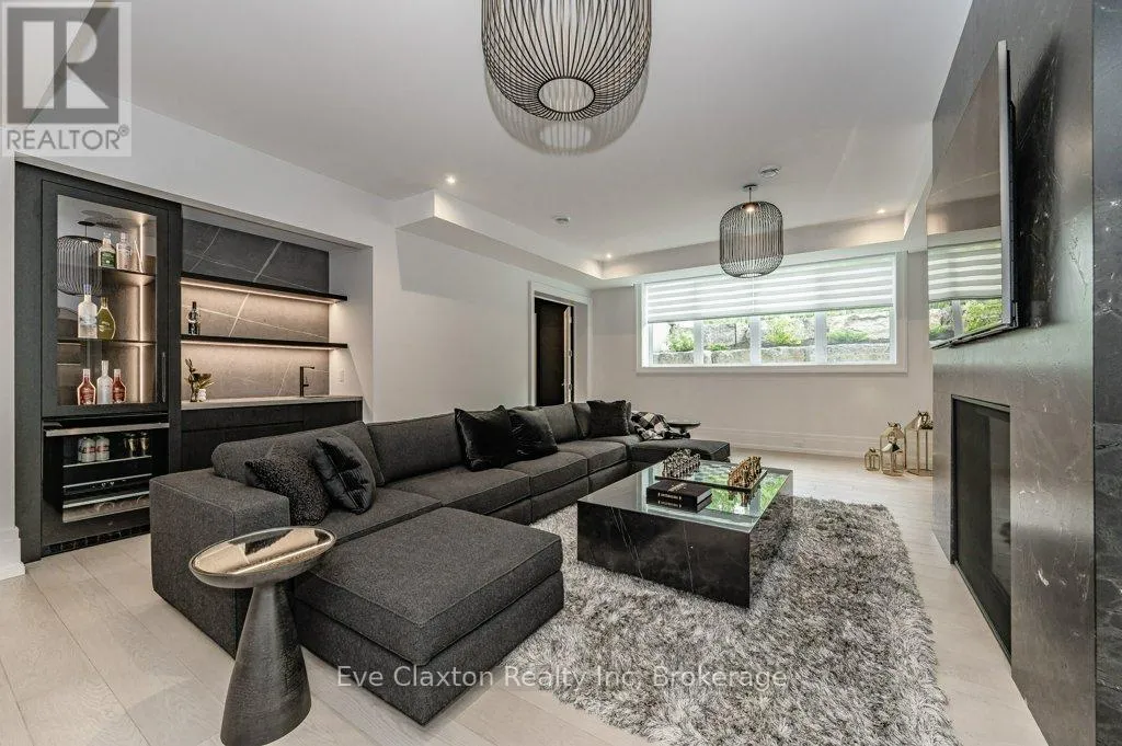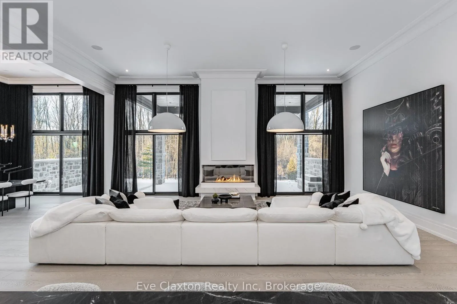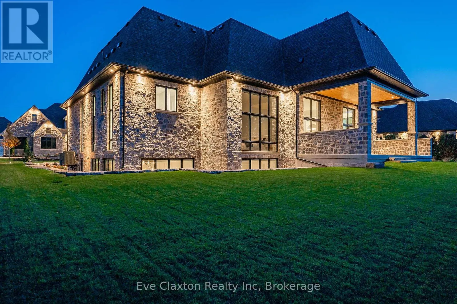 Cross Streets: Wellington 34 and Hanlon Hwy 6. ** Directions: Wellington Rd 34 (East of Hanlon Pkwy - West of Brock Rd. Exclusive Custom-Built Bungalow in Prestigious Heritage Lake Estates . Welcome to a truly one-of-a-kind residence, meticulously crafted for those who demand elegance, innovation, and comfort. Located in the coveted gated community of Heritage Lake Estates, this Net Zero Ready custom bungalow is a masterclass in design and sophistication. Set on a beautifully landscaped half acre lot, it offers the perfect blend of luxury, space, and modern efficiency. Spanning 7,400 sq. ft. of living space plus over 600 sq. ft. of additional storage, this home features 5 spacious bedrooms each with private ensuites, and 2 stylish powder rooms, ideal for family living and entertaining.Inside, 14-foot ceilings and floor-to-ceiling windows flood the space with light. The open-concept layout connects living, dining, and kitchen areas with access to the oversized covered patio. Elegant finishes include engineered hardwood flooring, 9-foot solid core doors, custom plaster moldings, and heated floors.The gourmet kitchen is an entertainers dream with top of the line built-in appliances, custom cabinetry, stone-clad island, and a walk-in pantry offering excellent storage.The fully finished lower level includes a recreation room, wet bar, games room, home gym, and multimedia theatre for relaxation and entertainment.Outside, the heated 3-car garage fits 6+ vehicles with lift options and includes a Tesla charging station, perfect for car enthusiasts and eco-conscious owners.Nestled within a lakeside community offering private lake access, walking trails, and a peaceful setting just 2 minutes from Highway 401 and nearby amenities, schools, and shopping.This is more than a home its a rare opportunity to own a landmark combining architectural excellence, energy-conscious living, and luxury in one of the regions most sought-after neighbourhoods. (id:27476)