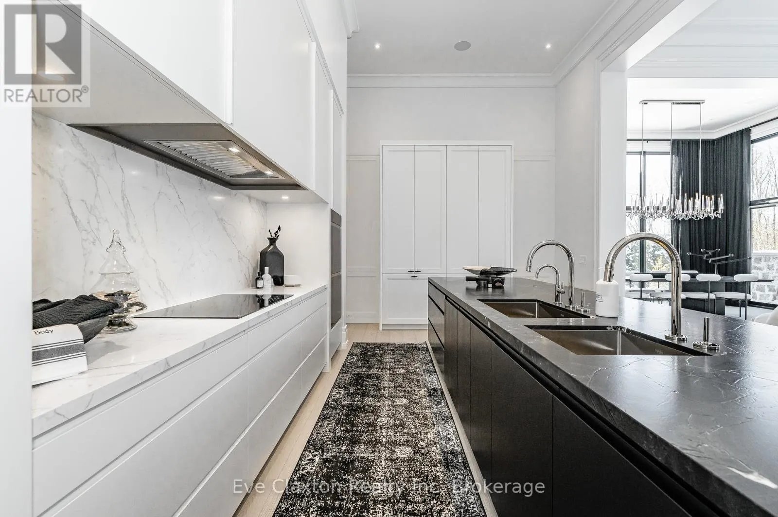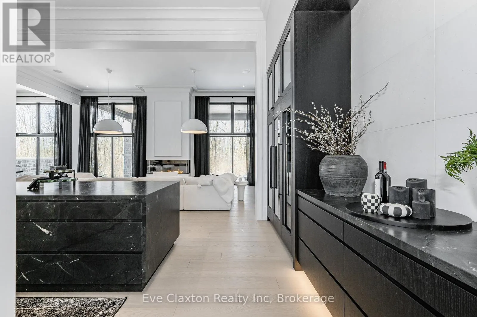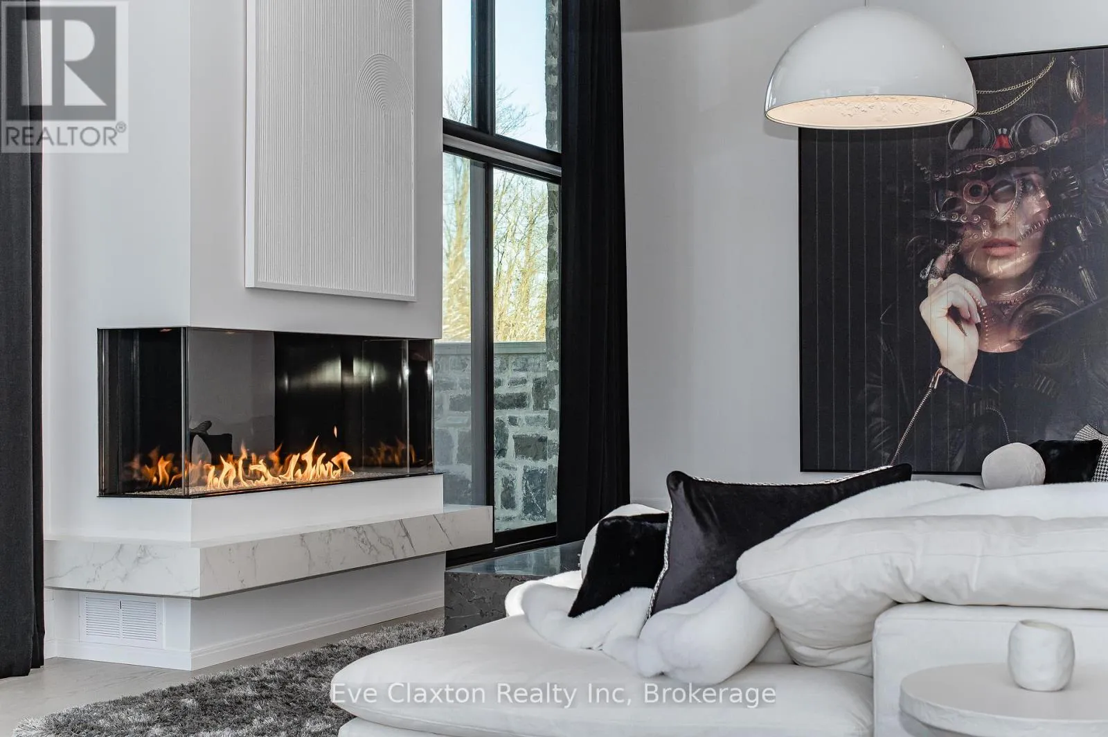 Cross Streets: Wellington 34 and Hanlon Hwy 6. ** Directions: Wellington Rd 34 (East of Hanlon Pkwy - West of Brock Rd. Exclusive Custom-Built Bungalow in Prestigious Heritage Lake Estates . Welcome to a truly one-of-a-kind residence, meticulously crafted for those who demand elegance, innovation, and comfort. Located in the coveted gated community of Heritage Lake Estates, this Net Zero Ready custom bungalow is a masterclass in design and sophistication. Set on a beautifully landscaped half acre lot, it offers the perfect blend of luxury, space, and modern efficiency. Spanning 7,400 sq. ft. of living space plus over 600 sq. ft. of additional storage, this home features 5 spacious bedrooms each with private ensuites, and 2 stylish powder rooms, ideal for family living and entertaining.Inside, 14-foot ceilings and floor-to-ceiling windows flood the space with light. The open-concept layout connects living, dining, and kitchen areas with access to the oversized covered patio. Elegant finishes include engineered hardwood flooring, 9-foot solid core doors, custom plaster moldings, and heated floors.The gourmet kitchen is an entertainers dream with top of the line built-in appliances, custom cabinetry, stone-clad island, and a walk-in pantry offering excellent storage.The fully finished lower level includes a recreation room, wet bar, games room, home gym, and multimedia theatre for relaxation and entertainment.Outside, the heated 3-car garage fits 6+ vehicles with lift options and includes a Tesla charging station, perfect for car enthusiasts and eco-conscious owners.Nestled within a lakeside community offering private lake access, walking trails, and a peaceful setting just 2 minutes from Highway 401 and nearby amenities, schools, and shopping.This is more than a home its a rare opportunity to own a landmark combining architectural excellence, energy-conscious living, and luxury in one of the regions most sought-after neighbourhoods. (id:27476)
