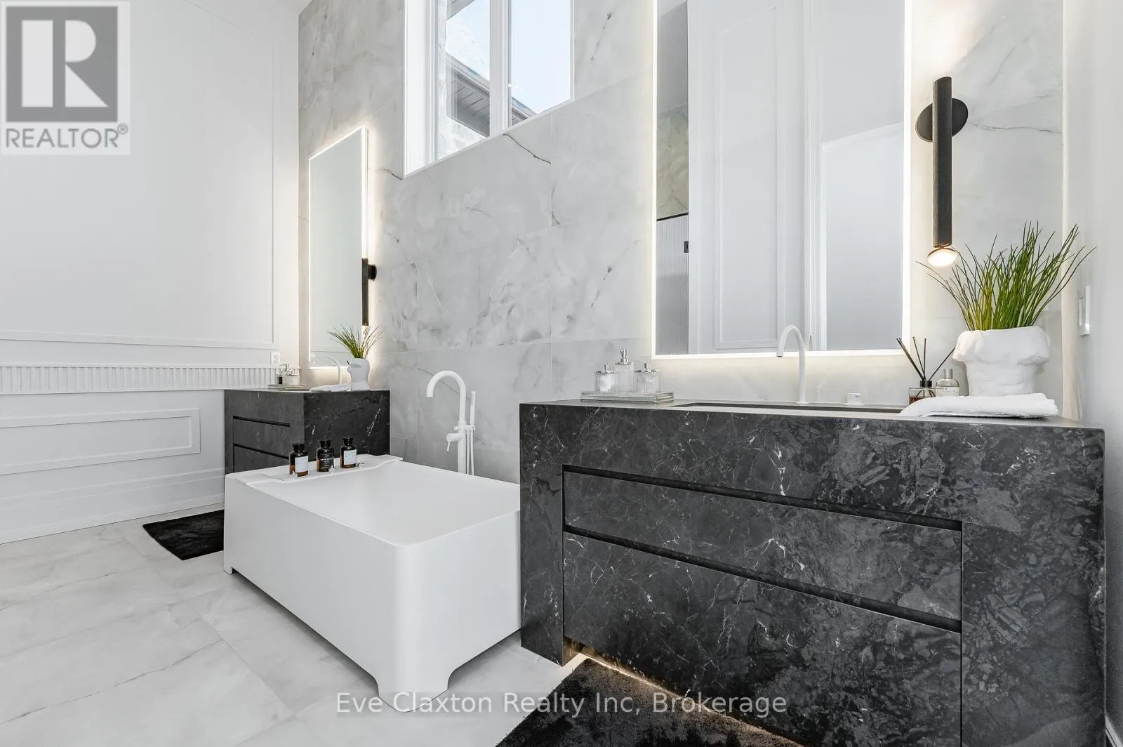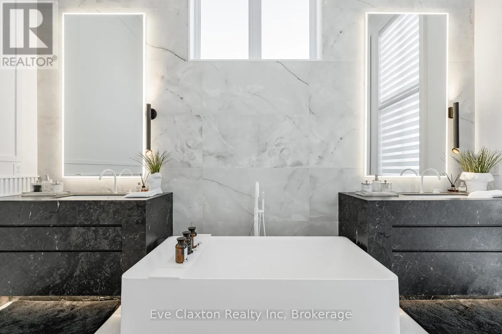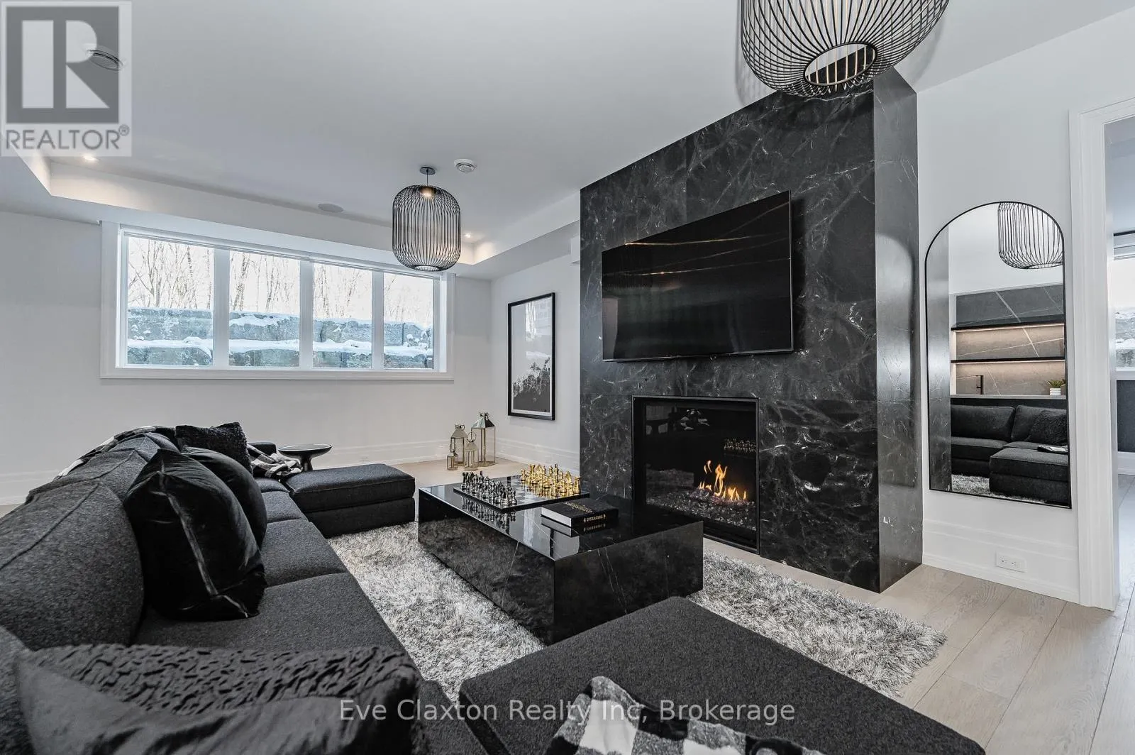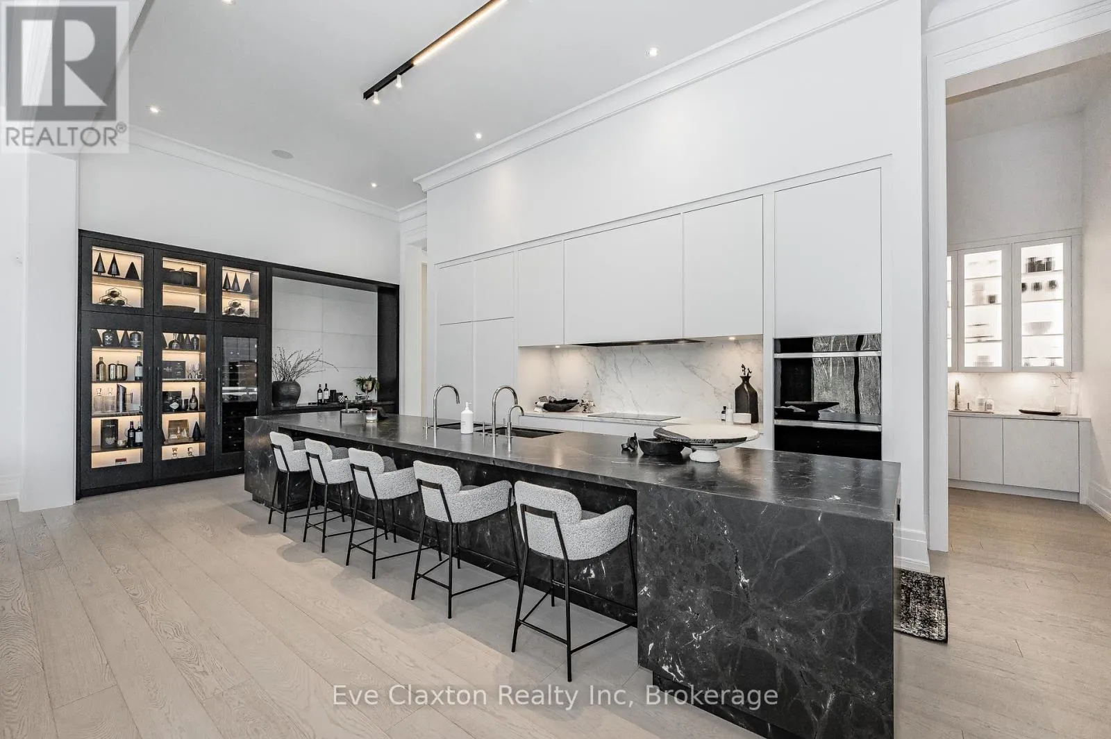 Cross Streets: Wellington 34 and Hanlon Hwy 6. ** Directions: Wellington Rd 34 (East of Hanlon Pkwy - West of Brock Rd. Exclusive Custom-Built Bungalow in Prestigious Heritage Lake Estates . Welcome to a truly one-of-a-kind residence, meticulously crafted for those who demand elegance, innovation, and comfort. Located in the coveted gated community of Heritage Lake Estates, this Net Zero Ready custom bungalow is a masterclass in design and sophistication. Set on a beautifully landscaped half acre lot, it offers the perfect blend of luxury, space, and modern efficiency. Spanning 7,400 sq. ft. of living space plus over 600 sq. ft. of additional storage, this home features 5 spacious bedrooms each with private ensuites, and 2 stylish powder rooms, ideal for family living and entertaining.Inside, 14-foot ceilings and floor-to-ceiling windows flood the space with light. The open-concept layout connects living, dining, and kitchen areas with access to the oversized covered patio. Elegant finishes include engineered hardwood flooring, 9-foot solid core doors, custom plaster moldings, and heated floors.The gourmet kitchen is an entertainers dream with top of the line built-in appliances, custom cabinetry, stone-clad island, and a walk-in pantry offering excellent storage.The fully finished lower level includes a recreation room, wet bar, games room, home gym, and multimedia theatre for relaxation and entertainment.Outside, the heated 3-car garage fits 6+ vehicles with lift options and includes a Tesla charging station, perfect for car enthusiasts and eco-conscious owners.Nestled within a lakeside community offering private lake access, walking trails, and a peaceful setting just 2 minutes from Highway 401 and nearby amenities, schools, and shopping.This is more than a home its a rare opportunity to own a landmark combining architectural excellence, energy-conscious living, and luxury in one of the regions most sought-after neighbourhoods. (id:27476)