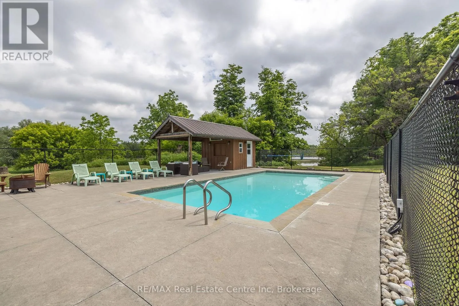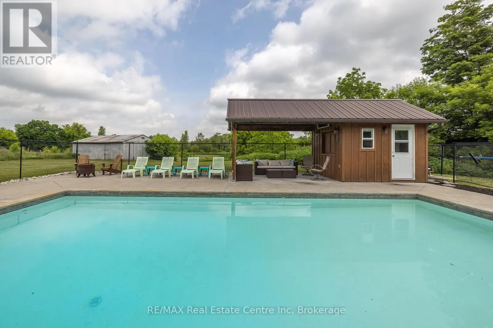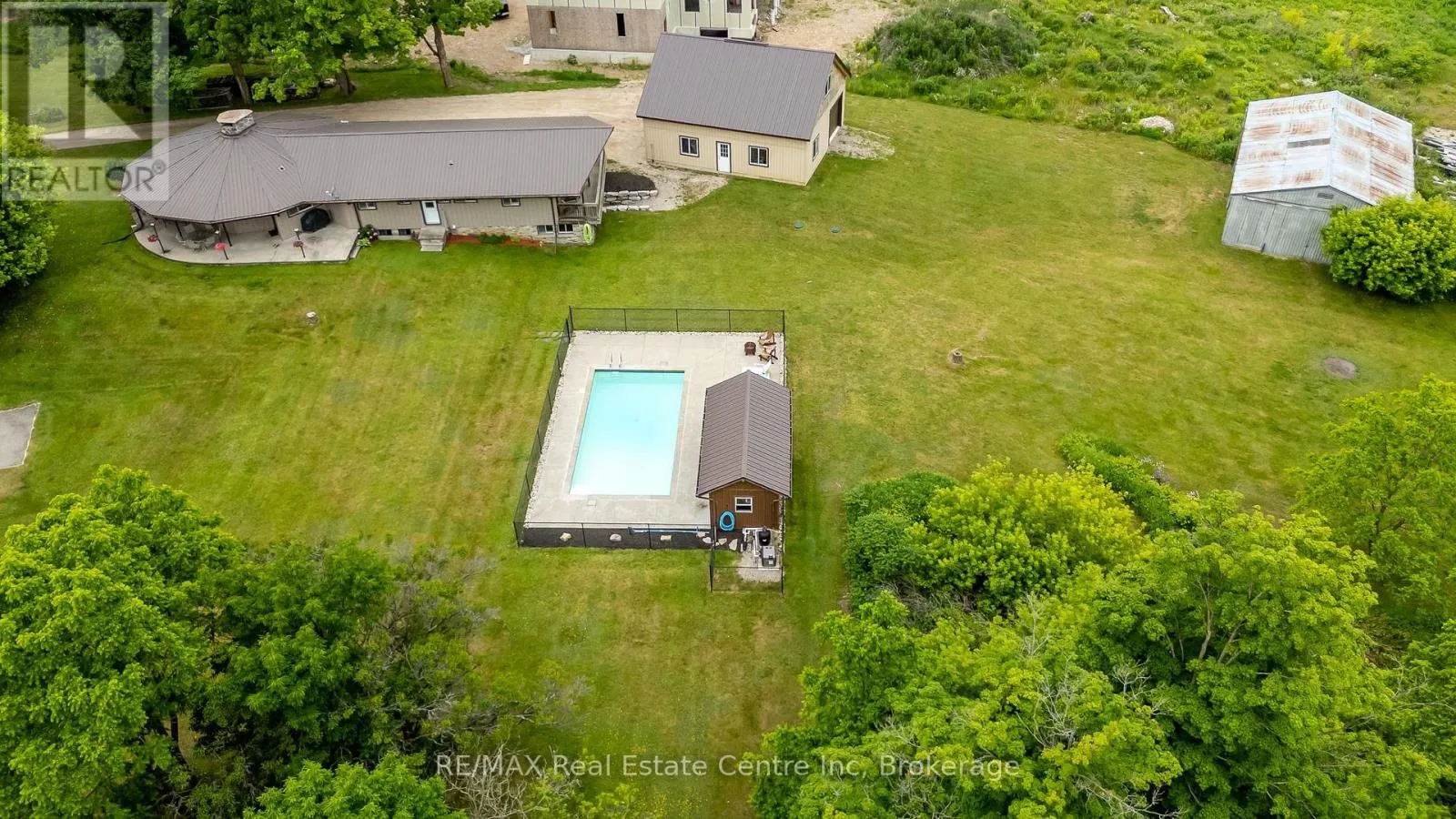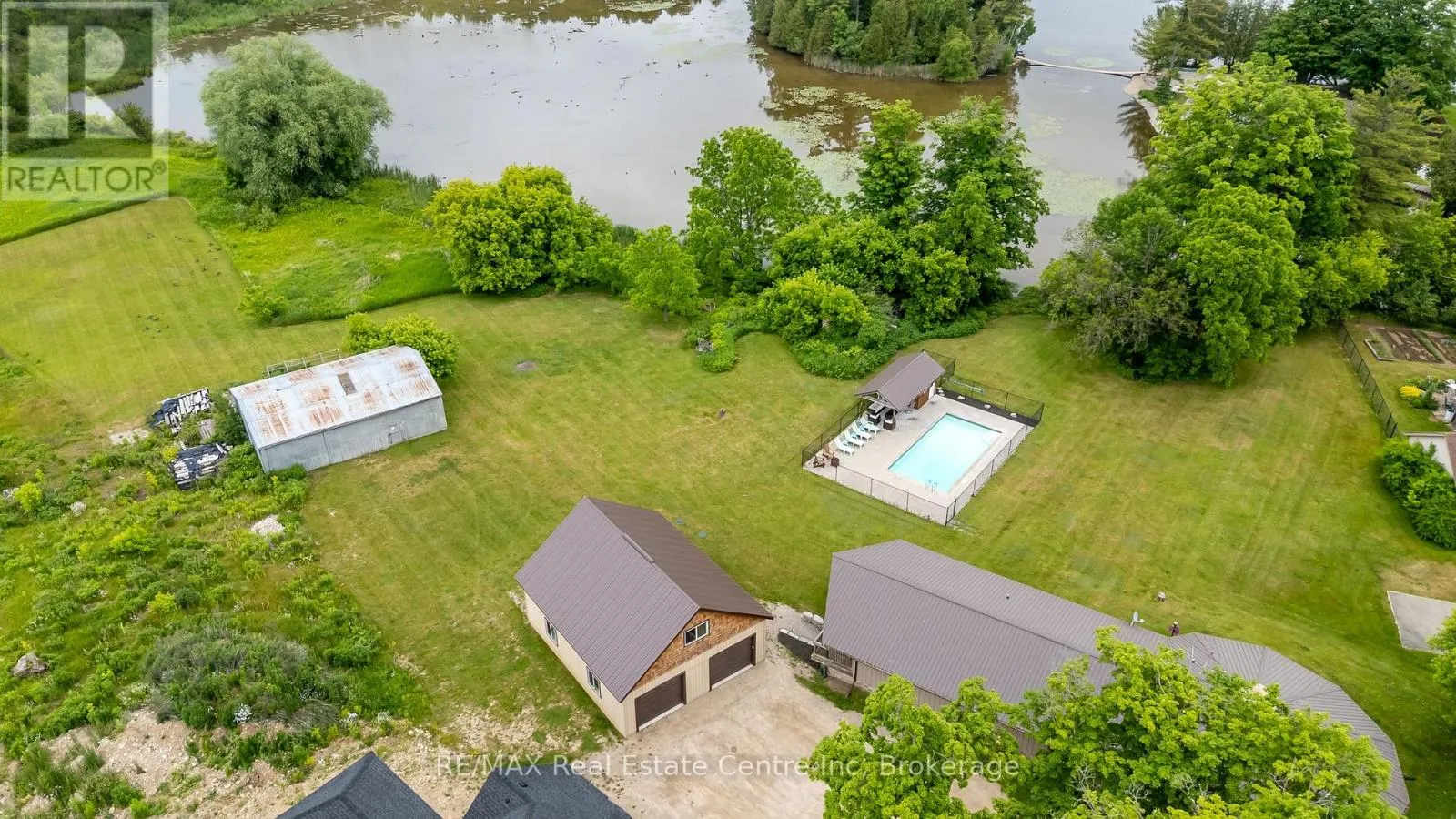 Brock Rd and Old Brock Rd Discover the perfect blend of comfort, space, and functionality in this stunning 5-bedroom, 3.5-bathroom country home, ideally located just minutes from Highway 401. Set on a beautiful, private lot, this property offers the peace of rural living with unbeatable convenience for commuters. Step inside to a bright, open-concept layout designed for both relaxation and entertaining. At the heart of the home, a stunning central fireplace anchors the main living area, creating a cozy focal point that flows seamlessly into the kitchen and dining spaces. Large windows bring in natural light and frame picturesque views of the surrounding countryside. Each of the five bedrooms is generously sized, with the primary suite boasting a private ensuite, walk-in closet and large balcony looking over your backyard oasis backing onto Mill Pond. The in-ground pool and cabana are ideal for summer entertaining, relaxing, or making family memories. A separate lofted garage workshop offers ample room for hobbies, storage, or a home business set up perfect for tradespeople, car enthusiasts, or anyone in need of extra space. This property delivers the best of country living with quick access to schools, shopping, and major routes. (id:27476)