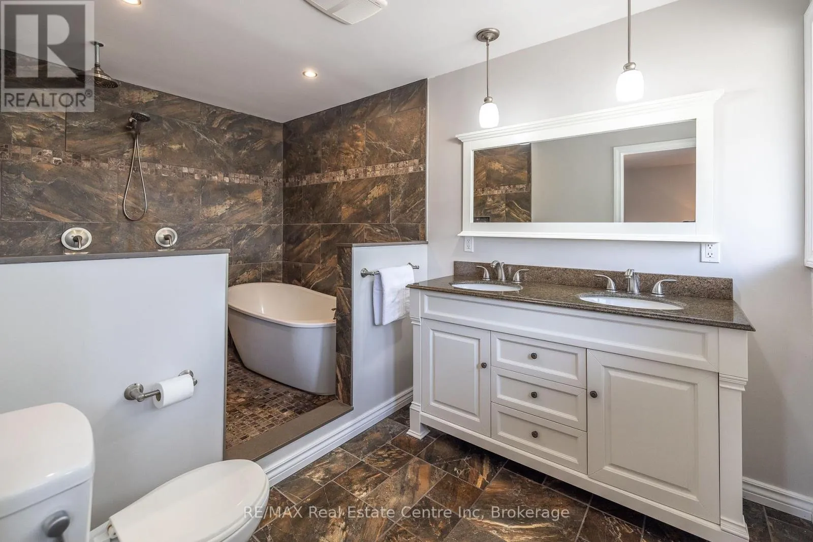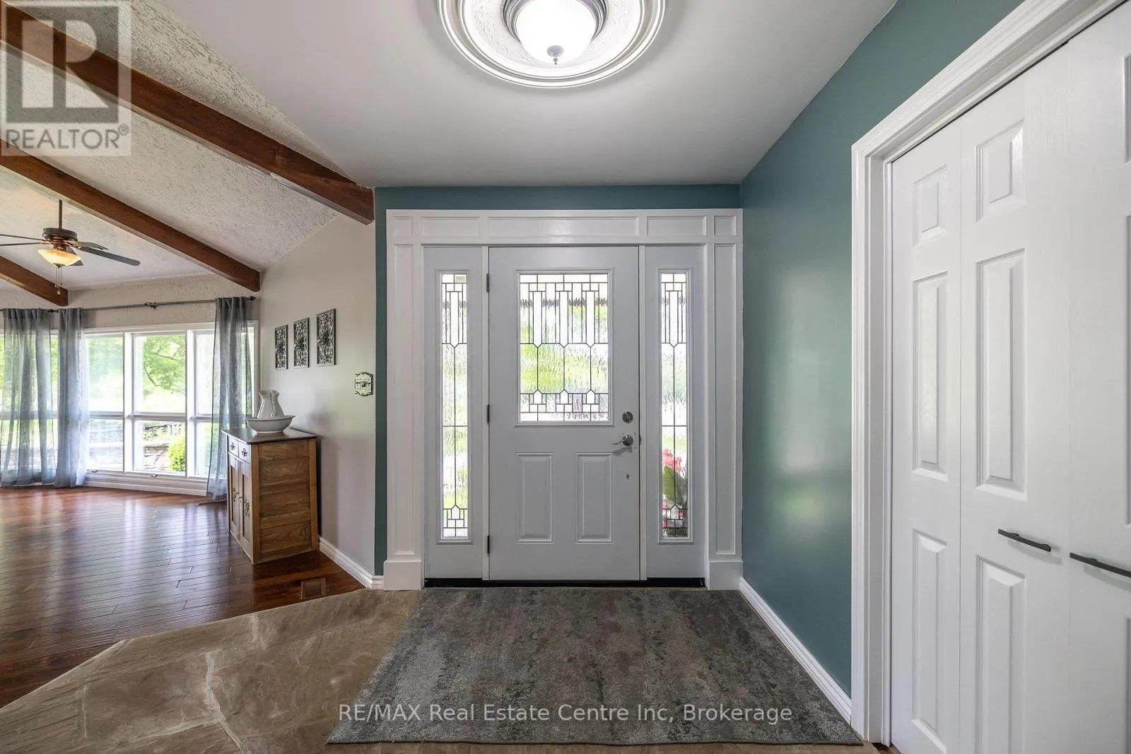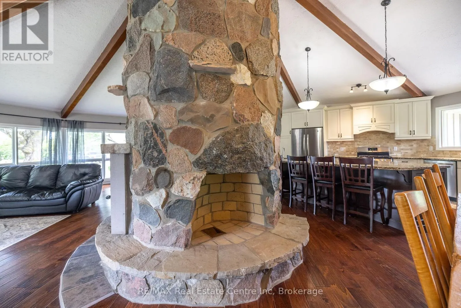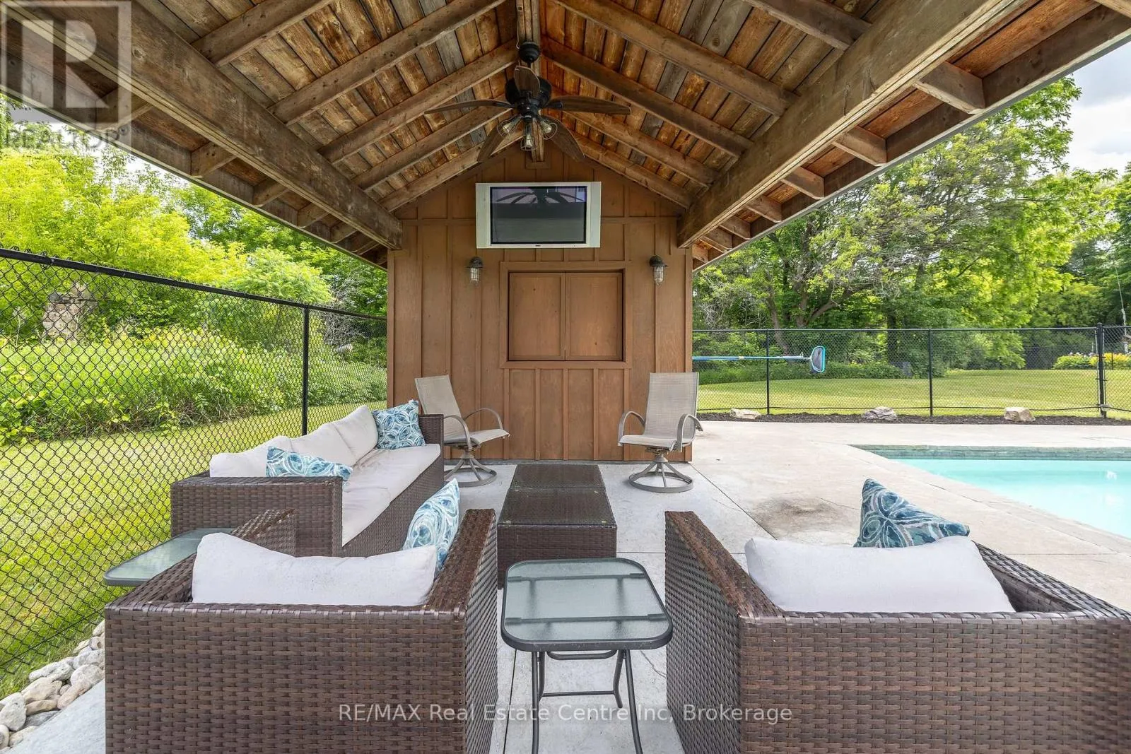 Brock Rd and Old Brock Rd Discover the perfect blend of comfort, space, and functionality in this stunning 5-bedroom, 3.5-bathroom country home, ideally located just minutes from Highway 401. Set on a beautiful, private lot, this property offers the peace of rural living with unbeatable convenience for commuters. Step inside to a bright, open-concept layout designed for both relaxation and entertaining. At the heart of the home, a stunning central fireplace anchors the main living area, creating a cozy focal point that flows seamlessly into the kitchen and dining spaces. Large windows bring in natural light and frame picturesque views of the surrounding countryside. Each of the five bedrooms is generously sized, with the primary suite boasting a private ensuite, walk-in closet and large balcony looking over your backyard oasis backing onto Mill Pond. The in-ground pool and cabana are ideal for summer entertaining, relaxing, or making family memories. A separate lofted garage workshop offers ample room for hobbies, storage, or a home business set up perfect for tradespeople, car enthusiasts, or anyone in need of extra space. This property delivers the best of country living with quick access to schools, shopping, and major routes. (id:27476)