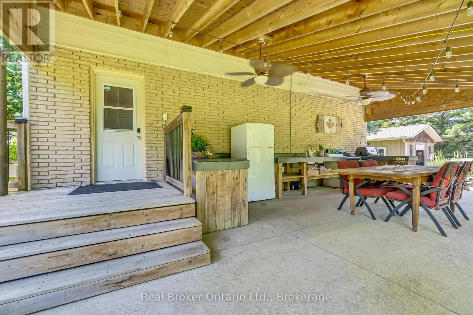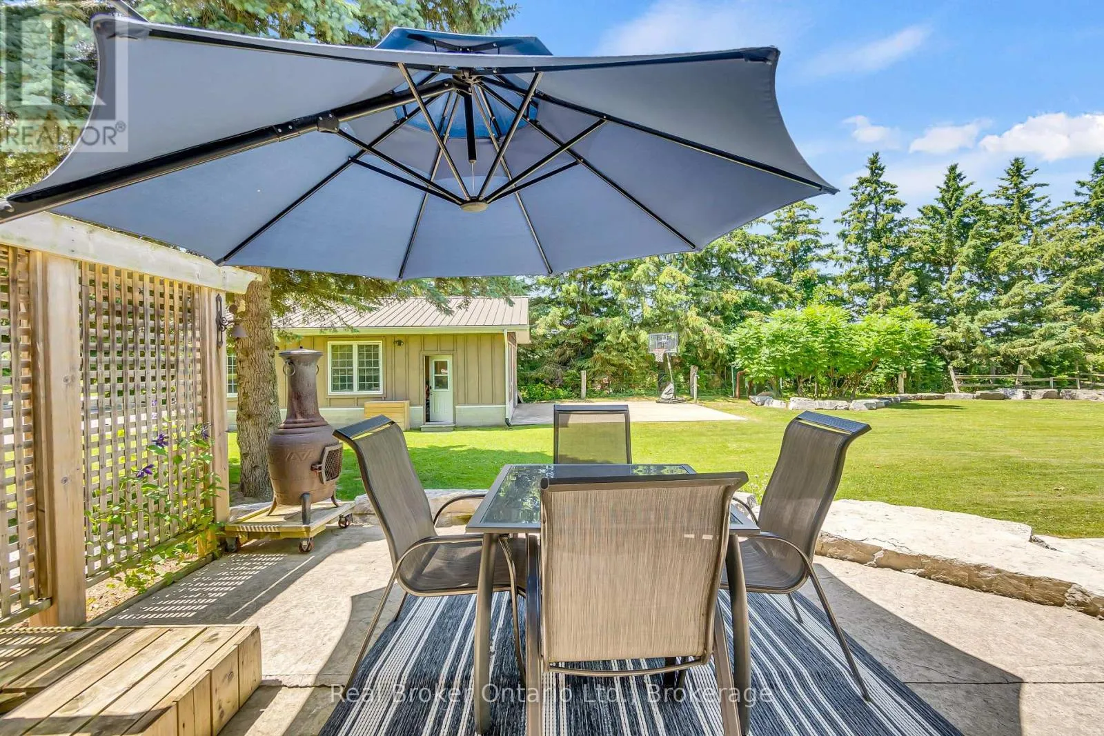 Rozell Rd & Concession Rd 4 Welcome to 6566 Concession Rd 4, a beautifully updated country retreat offering the perfect blend of modern comfort and rural charm. This 3-bedroom, 3-bathroom home sits on a private, landscaped lot in the heart of Puslinch - just 5 minutes to Guelph, less than 5 minutes to Cambridge, and with quick access to the 401 for commuters. Families will appreciate being in the Kortright Hills Public School catchment (JKGrade 8), offering excellent education within reach. Inside, the heart of the home is the bright, open-concept kitchen, featuring quartz countertops, a large island, custom cabinetry, and stainless steel appliances. The adjoining living area is equally inviting, with exposed wood beams and a cozy fireplace that makes it perfect for gathering. Extensive renovations over time include a fully finished basement, a luxurious new ensuite bathroom, and heated floors in the kitchen, basement, ensuite, and kid's bathroom - ensuring comfort throughout the seasons. Step outside to your own private oasis. The fenced, fully landscaped backyard includes a covered patio, outdoor kitchen, and hot tub - perfect for entertaining or relaxing in peace. A standout feature of the property is the detached garage with both front and rear garage doors, offering added functionality, storage, and easy access for yard equipment or recreational vehicles. Additional highlights include a drilled well (approx. 120+ ft deep with excellent water quality), a septic system installed around 2015, and the rare benefit of natural gas on a country property. With modern conveniences, scenic surroundings, and an unbeatable location close to top schools, trails, and amenities, this move-in ready home offers an exceptional lifestyle opportunity in one of Wellington County's most desirable rural communities. (id:27476)