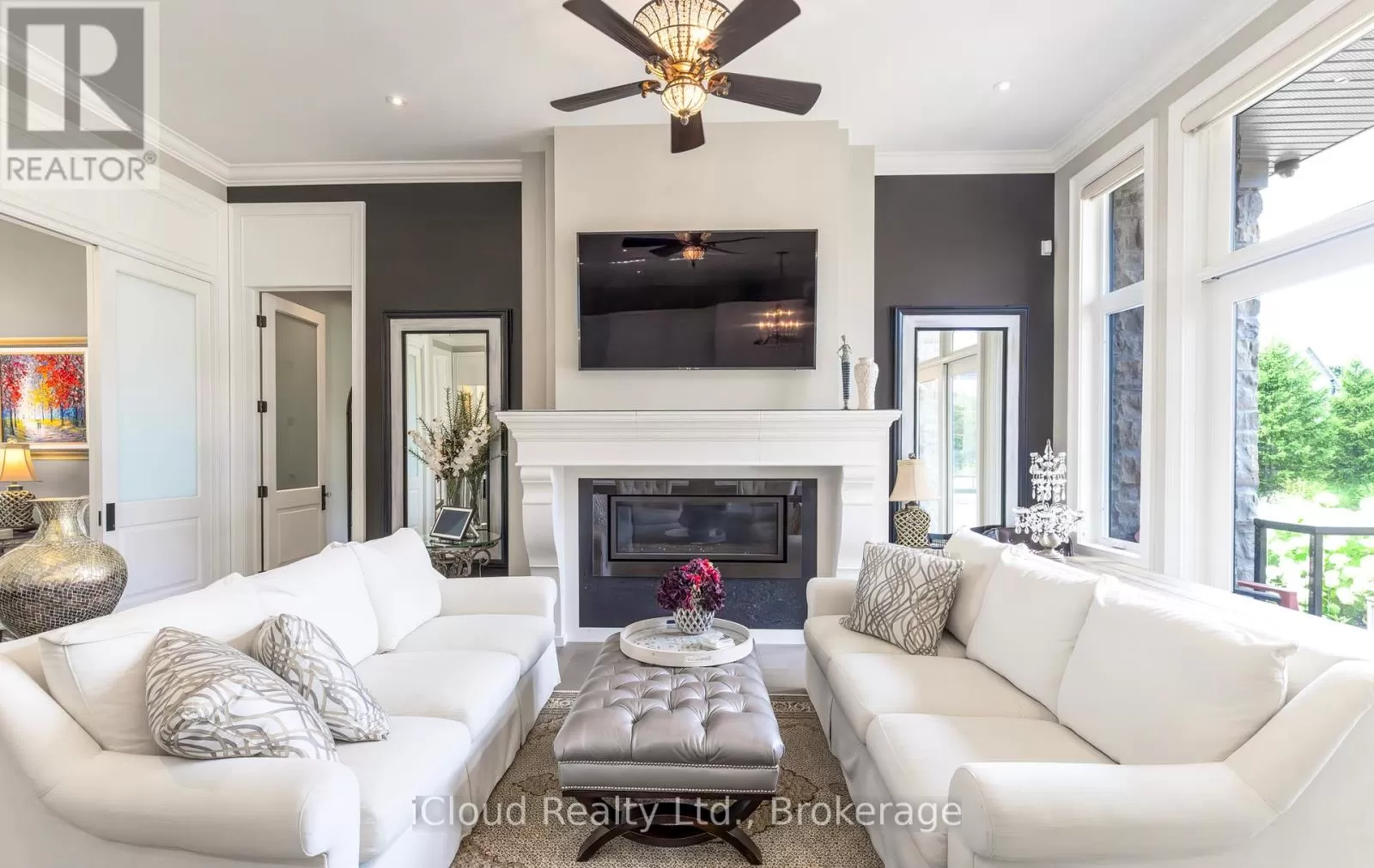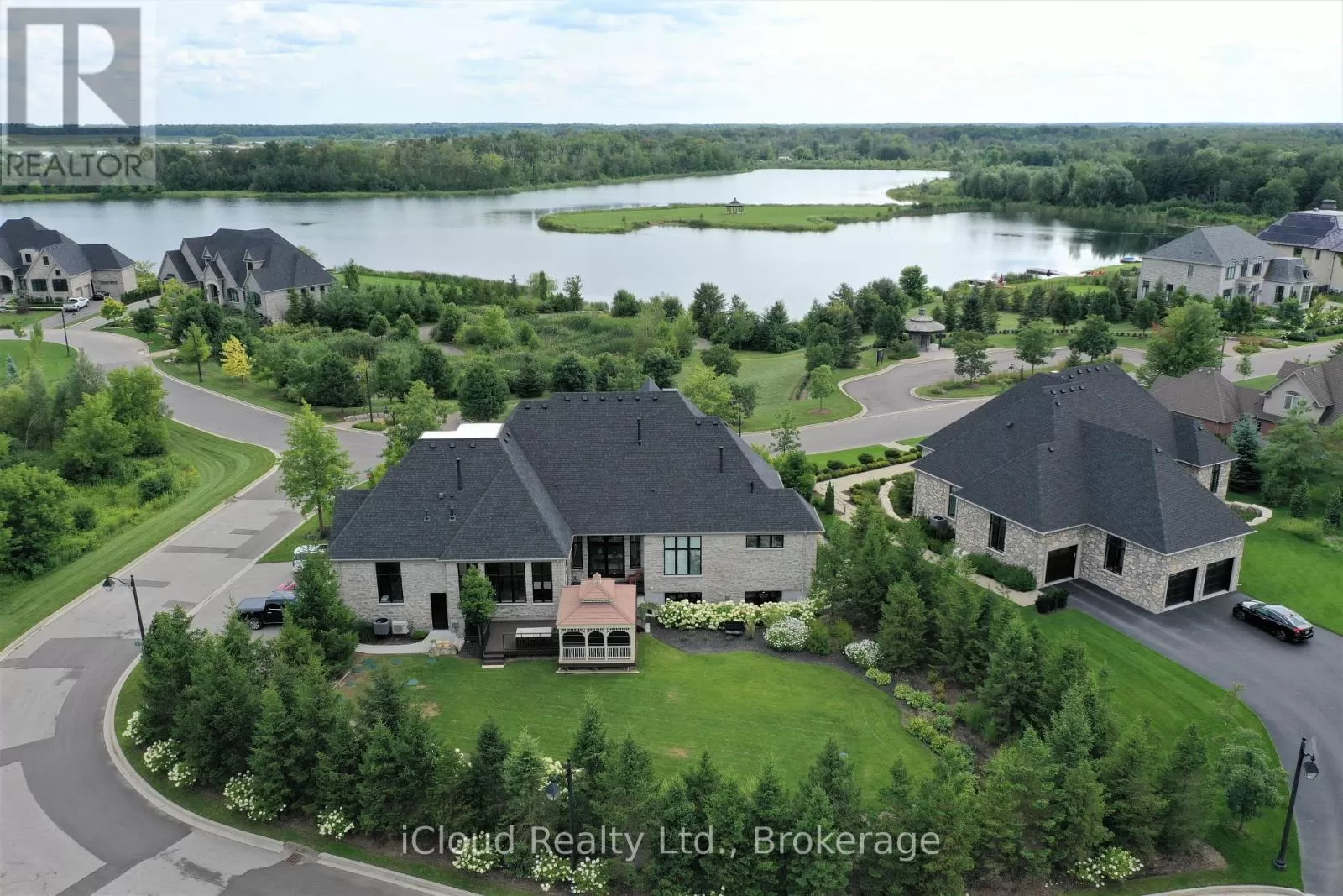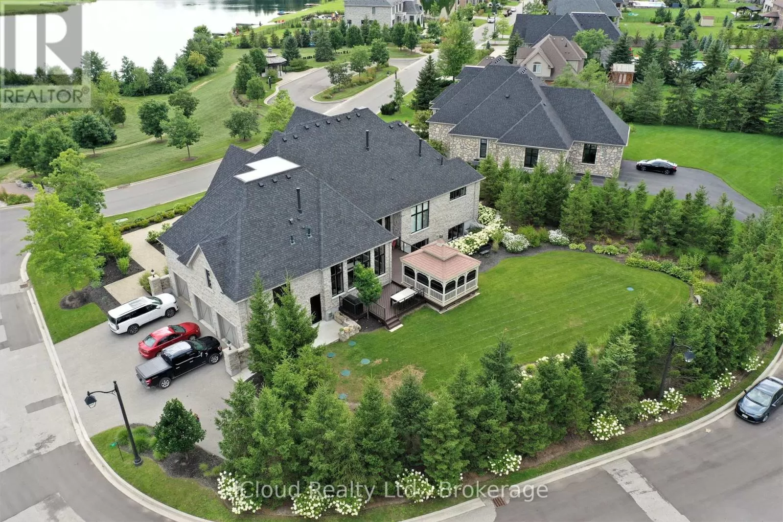Hwy 34 & Heritage lake Dr. Welcome to one of the most exceptional homes in Heritage Lake Estates! This home cannot be rebuilt for the selling price! This elegant bungalow offers over 6000 sq. ft. of beautifully designed living space on a 1/2 acre piece of property, featuring stunning natural stone exterior finishes and an Armor Stone landscaping package. Nestled with serene views of the fish-stocked Heritage Lake, this home blends luxury with tranquility. Step inside to discover soaring 12 ceilings, rich European hardwood floors, and custom 9' doors adorned with crystal knobs, all contributing to a sense of grandeur, 4 gas fireplaces, and oversized windows on main floor. Crown molding and expertly placed lighting add to the refined ambiance throughout the main level. The heart of the home is a chefs dream kitchen, fully equipped with high-end Thermador appliances, including a steam oven. The expansive 23' island invites family and guests to gather, and the large butlers pantry with additional appliances makes meal prep effortless. Relax in the living room or sunroom, each featuring a cozy gas fireplace and bathed in natural light. The primary bedroom is a peaceful retreat with a spacious walk-in closet and an ensuite oasis, complete with a steam shower when after using feels like you have been to a spa, a luxurious soaker tub, dual vanity, and a double-sided fireplace for added comfort and charm. Step outside to a fully enclosed, cozy gazebo ideal for entertaining or quiet mornings with coffee. The lower level adds incredible versatility with a large family room, games area, two additional bathrooms, and a self-contained in-law suite with oversized windows, featuring a full kitchen, bathroom, laundry, bedroom, and storage. A wet bar and built-in wine cooler make this space perfect for guests or extended family. Oversized 3 car garage and lawn irrigation system. This home offers it all. Don't miss the opportunity to make it yours! (id:27476)
