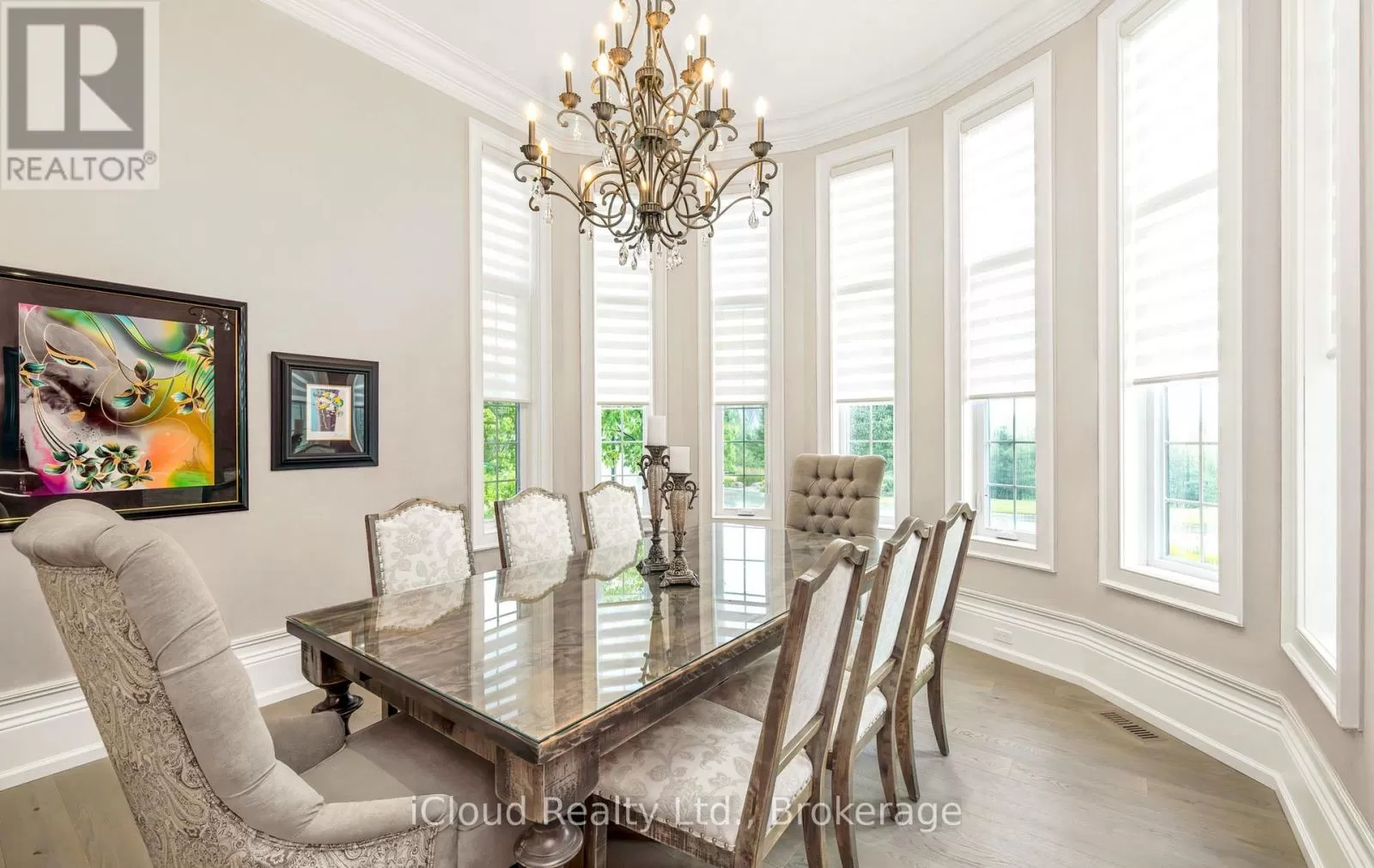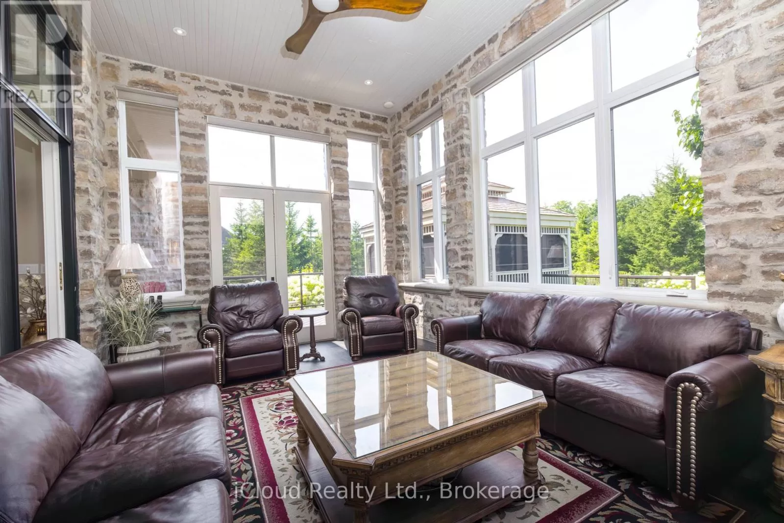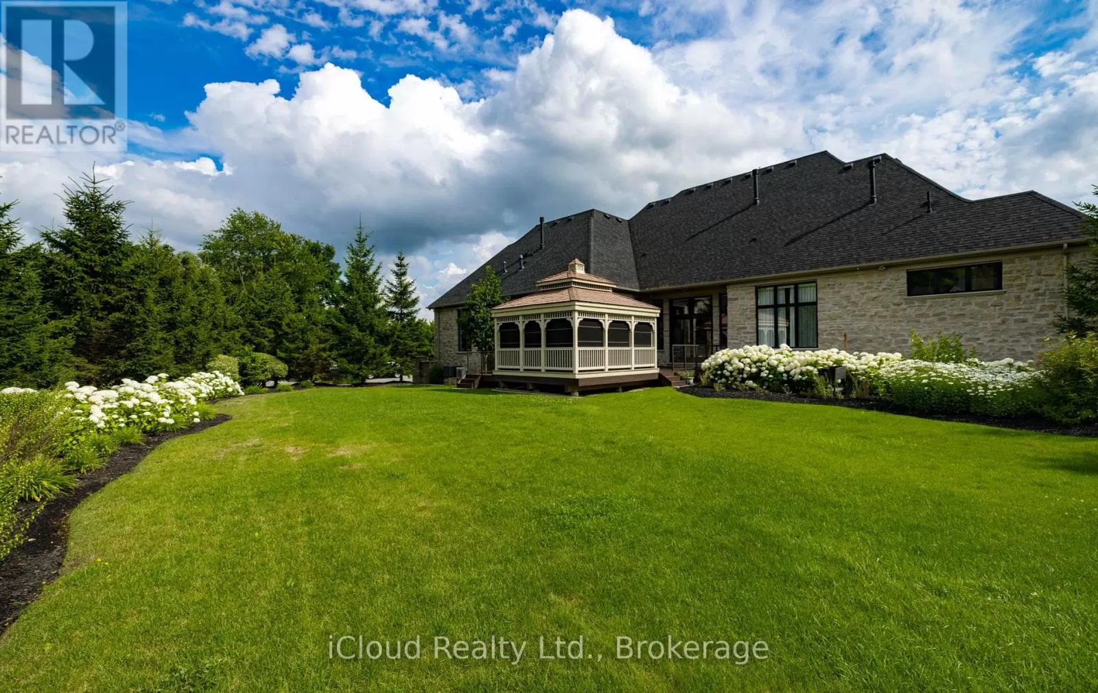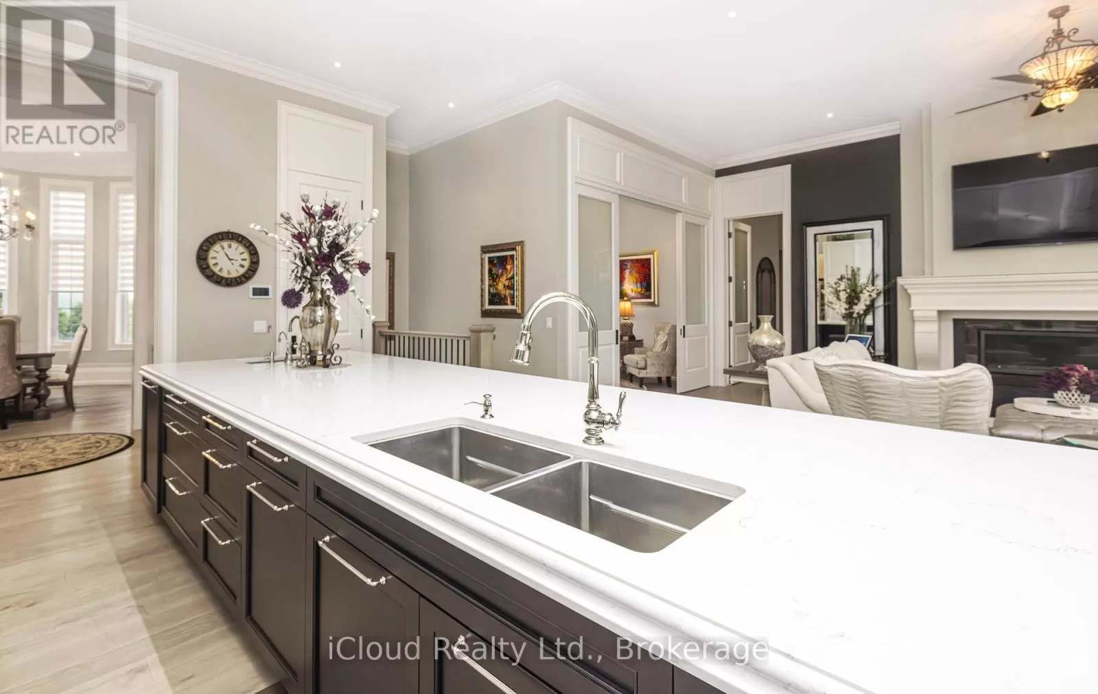 Hwy 34 & Heritage lake Dr. Welcome to one of the most exceptional homes in Heritage Lake Estates! This home cannot be rebuilt for the selling price! This elegant bungalow offers over 6000 sq. ft. of beautifully designed living space on a 1/2 acre piece of property, featuring stunning natural stone exterior finishes and an Armor Stone landscaping package. Nestled with serene views of the fish-stocked Heritage Lake, this home blends luxury with tranquility. Step inside to discover soaring 12 ceilings, rich European hardwood floors, and custom 9' doors adorned with crystal knobs, all contributing to a sense of grandeur, 4 gas fireplaces, and oversized windows on main floor. Crown molding and expertly placed lighting add to the refined ambiance throughout the main level. The heart of the home is a chefs dream kitchen, fully equipped with high-end Thermador appliances, including a steam oven. The expansive 23' island invites family and guests to gather, and the large butlers pantry with additional appliances makes meal prep effortless. Relax in the living room or sunroom, each featuring a cozy gas fireplace and bathed in natural light. The primary bedroom is a peaceful retreat with a spacious walk-in closet and an ensuite oasis, complete with a steam shower when after using feels like you have been to a spa, a luxurious soaker tub, dual vanity, and a double-sided fireplace for added comfort and charm. Step outside to a fully enclosed, cozy gazebo ideal for entertaining or quiet mornings with coffee. The lower level adds incredible versatility with a large family room, games area, two additional bathrooms, and a self-contained in-law suite with oversized windows, featuring a full kitchen, bathroom, laundry, bedroom, and storage. A wet bar and built-in wine cooler make this space perfect for guests or extended family. Oversized 3 car garage and lawn irrigation system. This home offers it all. Don't miss the opportunity to make it yours! (id:27476)