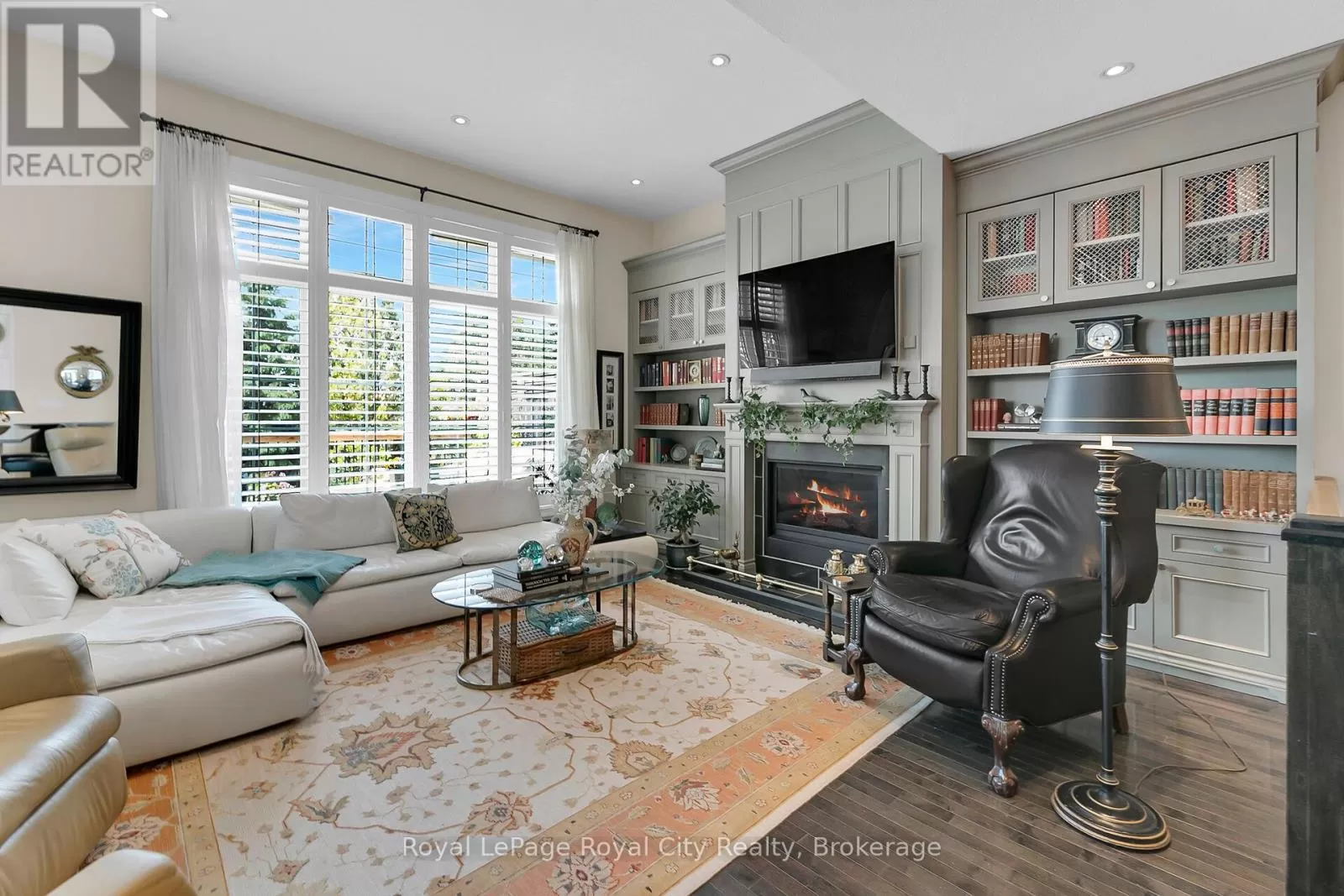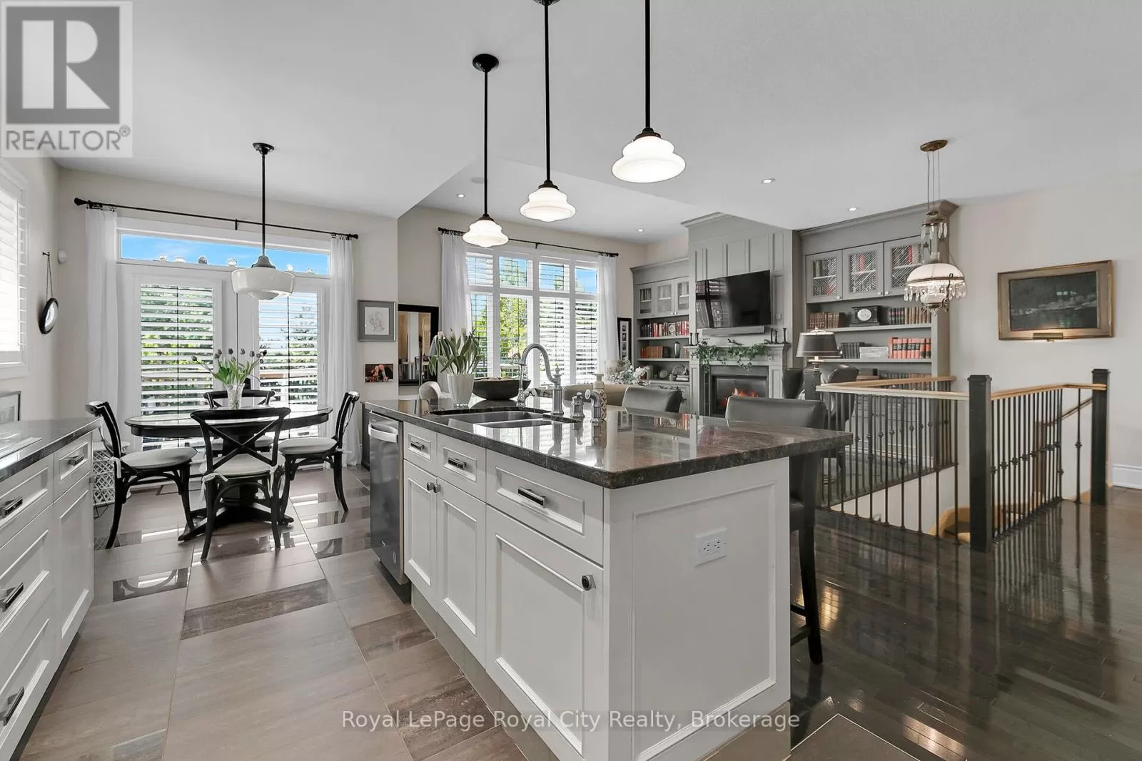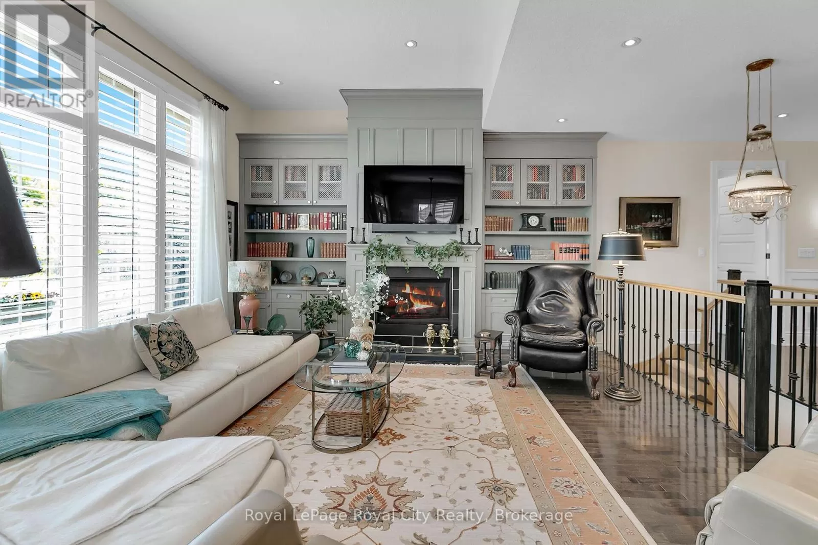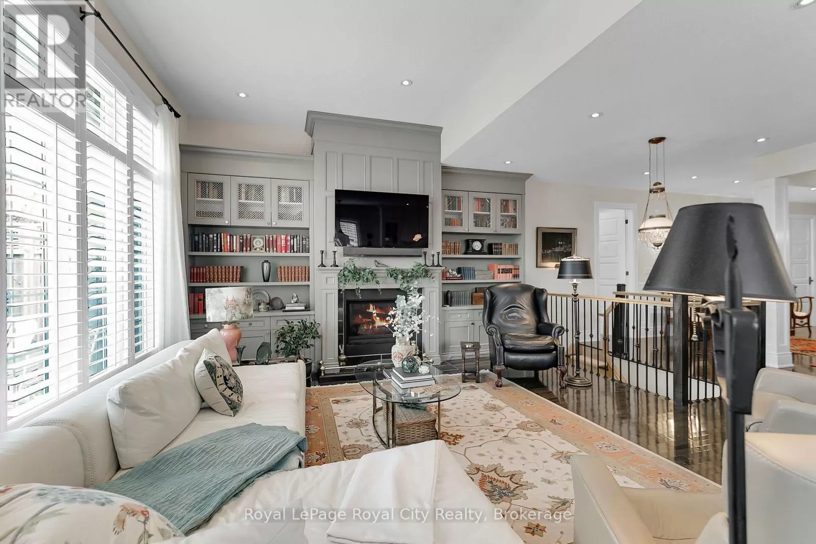 Cross Streets: Gilmour Road. ** Directions: Brock Road to Gilmour, left on Aberfoyle Mill Crescent. Exquisite Former Model Home in the Prestigious Meadows of Aberfoyle. Fox Hollow Model with 1954+ Sq. Ft. 2+1 bedroom, 3 baths and a walkout Basement Welcome to luxury living in the sought-after private community of the Meadows of Aberfoyle, where tranquility meets convenience just minutes from major transportation routes and everyday amenities. Tucked away on over 20 acres of private, beautifully landscaped grounds, this exclusive enclave of just 55 executive bungalows offers an unmatched lifestyle with walking trails, a putting green, scenic forest views, and a charming gazebo. This spectacular bungalow, originally showcased as the builders model home, boasts superior craftsmanship, premium upgrades, and timeless design throughout. No detail was overlooked from 9-foot ceilings, 8-foot solid-core doors, and designer hardware, to a gourmet kitchen with high-end appliances, custom cabinetry, and a large center island that flows effortlessly into a sun-drenched family room featuring a bespoke fireplace and stunning built-ins. The main level offers a thoughtfully designed layout, anchored by the Fox Hollow models signature open-concept elegance. Highlights include a spacious primary suite with a beautifully appointed spa-inspired ensuite, second bedroom and versatile den (ideal for home office or guest space), additional full 3pc bath and a formal dining room with coffered ceiling and a seamless view into the heart of the home. The bright walkout basement expands your living space with an additional ~600 sq. ft. finished area, including a large recreation room, 3pc bath, and ample storage with endless possibilities for customization. AC and furnace replaced 2024. Enjoy a worry-free lifestyle with a monthly condo fee that covers your water usage, annual septic inspection, and the meticulous maintenance of all common grounds. Don't miss your chance to own this exceptional home in one of the areas most desirable communities. (id:27476)