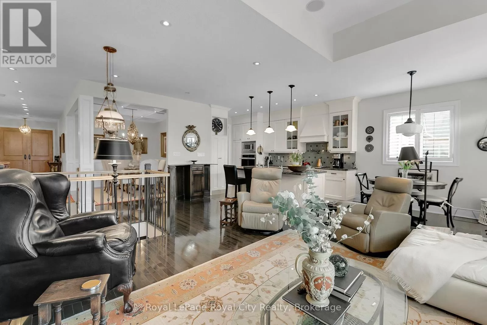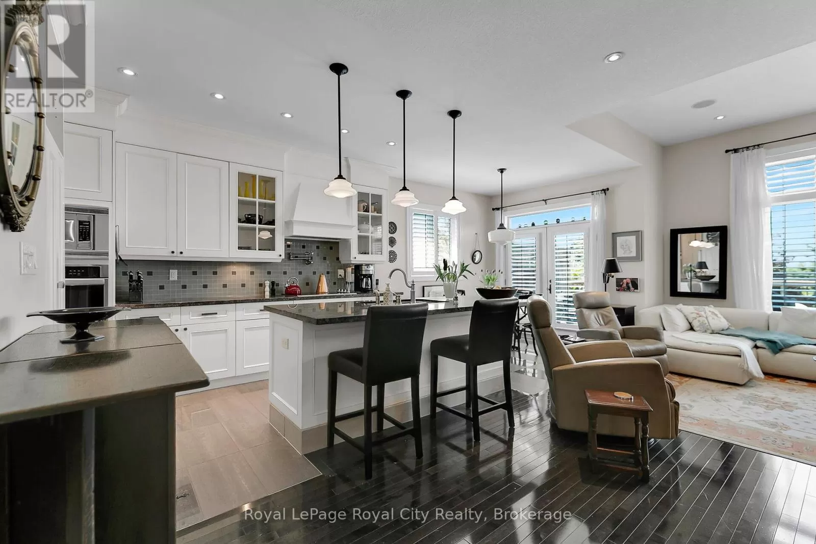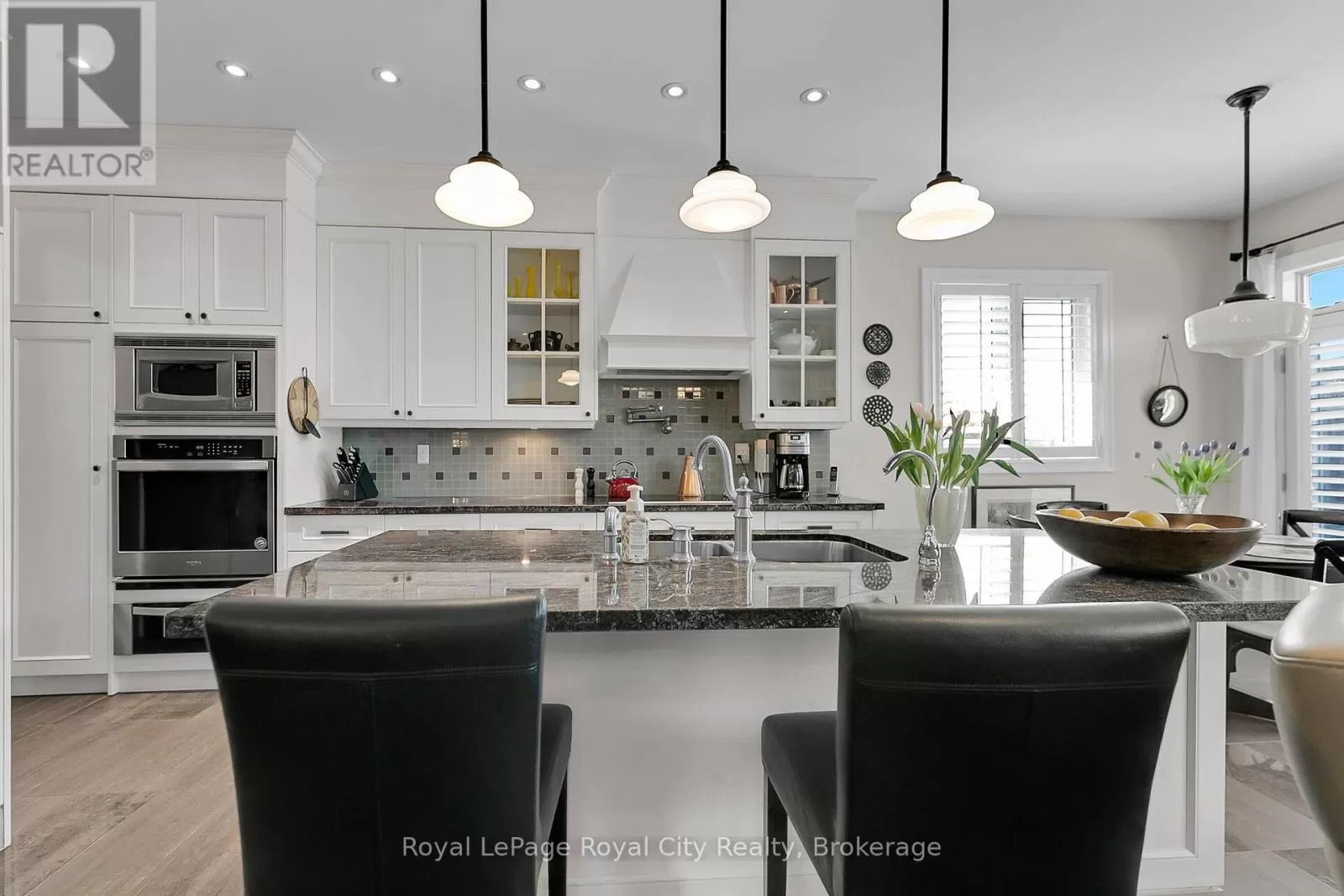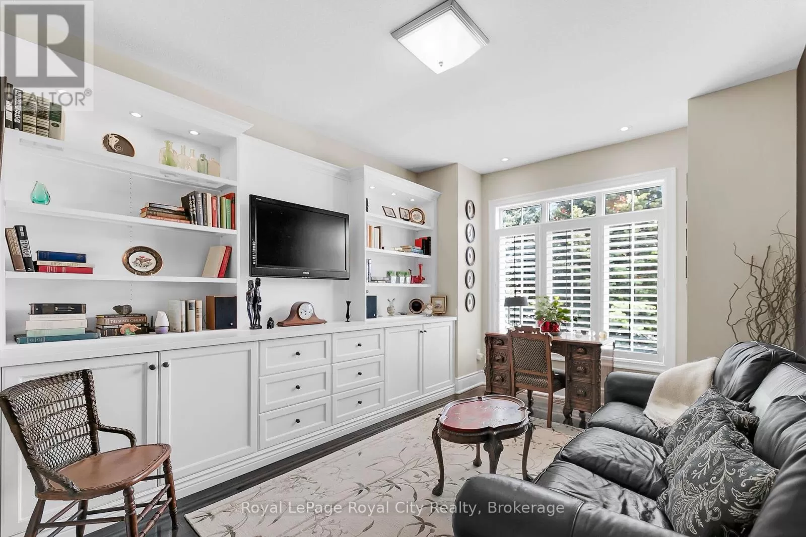 Cross Streets: Gilmour Road. ** Directions: Brock Road to Gilmour, left on Aberfoyle Mill Crescent. Exquisite Former Model Home in the Prestigious Meadows of Aberfoyle. Fox Hollow Model with 1954+ Sq. Ft. 2+1 bedroom, 3 baths and a walkout Basement Welcome to luxury living in the sought-after private community of the Meadows of Aberfoyle, where tranquility meets convenience just minutes from major transportation routes and everyday amenities. Tucked away on over 20 acres of private, beautifully landscaped grounds, this exclusive enclave of just 55 executive bungalows offers an unmatched lifestyle with walking trails, a putting green, scenic forest views, and a charming gazebo. This spectacular bungalow, originally showcased as the builders model home, boasts superior craftsmanship, premium upgrades, and timeless design throughout. No detail was overlooked from 9-foot ceilings, 8-foot solid-core doors, and designer hardware, to a gourmet kitchen with high-end appliances, custom cabinetry, and a large center island that flows effortlessly into a sun-drenched family room featuring a bespoke fireplace and stunning built-ins. The main level offers a thoughtfully designed layout, anchored by the Fox Hollow models signature open-concept elegance. Highlights include a spacious primary suite with a beautifully appointed spa-inspired ensuite, second bedroom and versatile den (ideal for home office or guest space), additional full 3pc bath and a formal dining room with coffered ceiling and a seamless view into the heart of the home. The bright walkout basement expands your living space with an additional ~600 sq. ft. finished area, including a large recreation room, 3pc bath, and ample storage with endless possibilities for customization. AC and furnace replaced 2024. Enjoy a worry-free lifestyle with a monthly condo fee that covers your water usage, annual septic inspection, and the meticulous maintenance of all common grounds. Don't miss your chance to own this exceptional home in one of the areas most desirable communities. (id:27476)