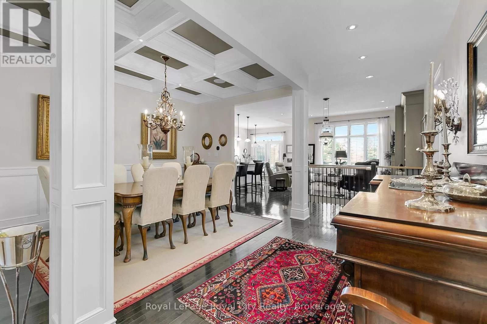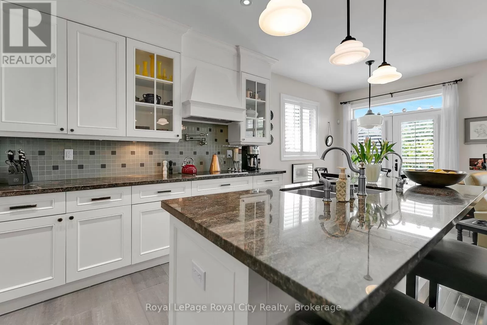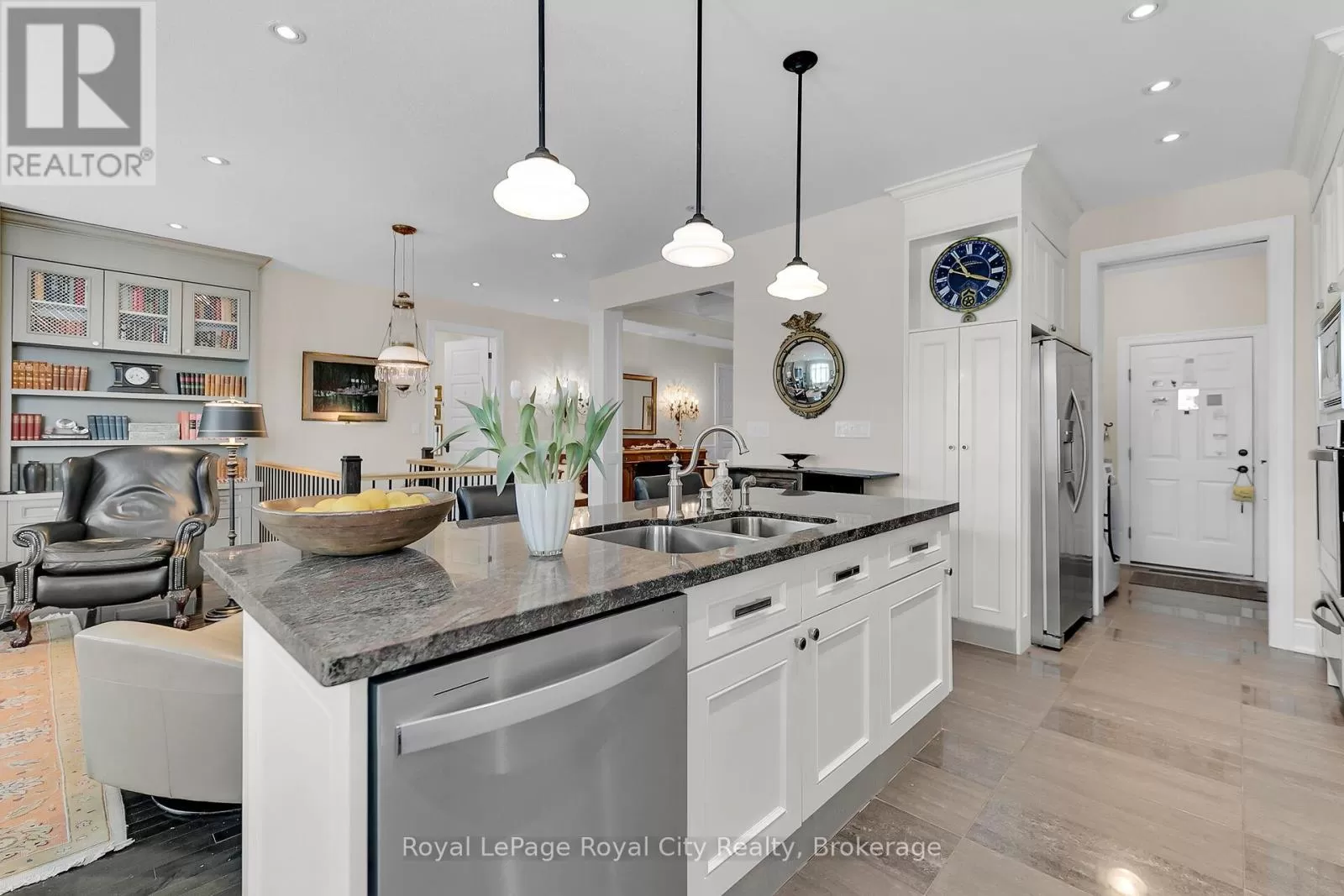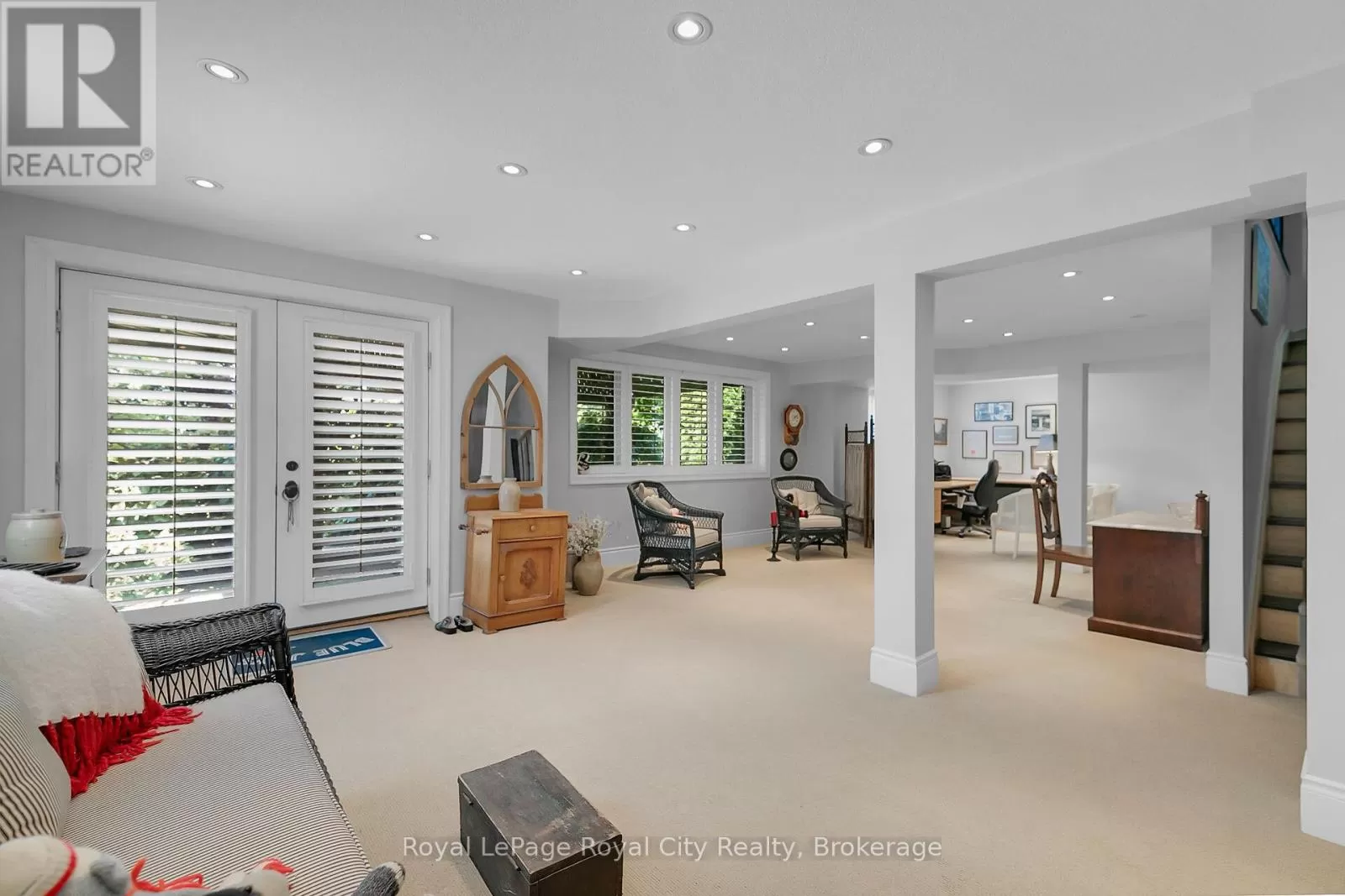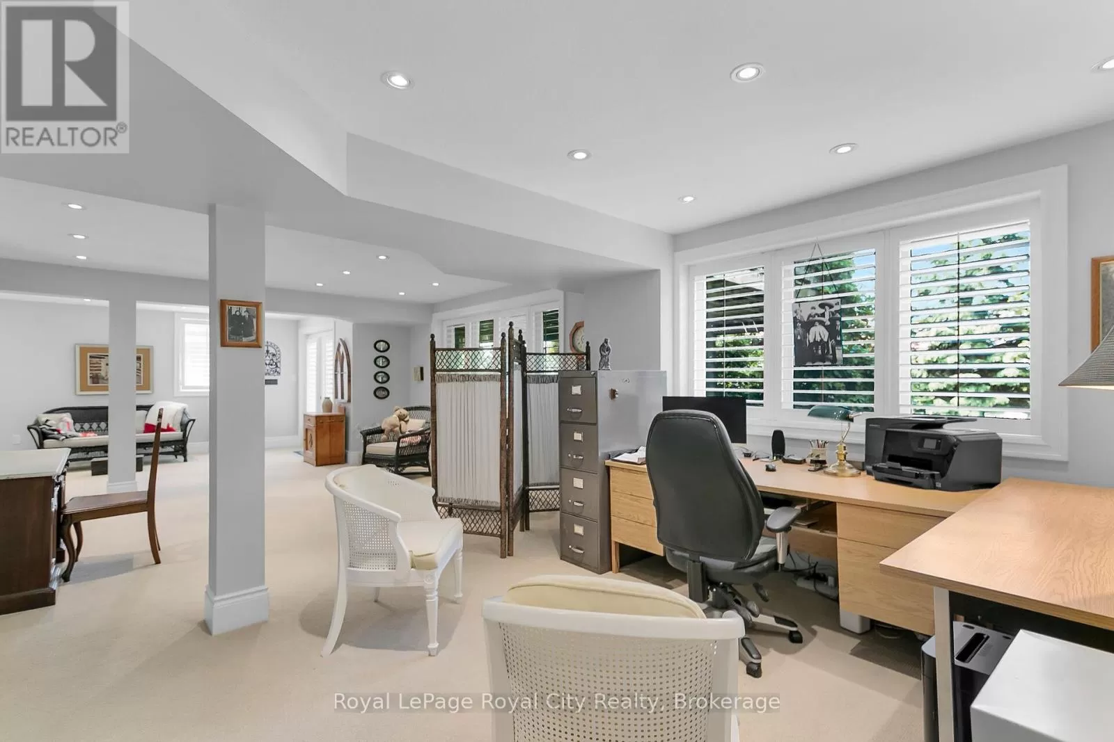 Cross Streets: Gilmour Road. ** Directions: Brock Road to Gilmour, left on Aberfoyle Mill Crescent. Exquisite Former Model Home in the Prestigious Meadows of Aberfoyle. Fox Hollow Model with 1954+ Sq. Ft. 2+1 bedroom, 3 baths and a walkout Basement Welcome to luxury living in the sought-after private community of the Meadows of Aberfoyle, where tranquility meets convenience just minutes from major transportation routes and everyday amenities. Tucked away on over 20 acres of private, beautifully landscaped grounds, this exclusive enclave of just 55 executive bungalows offers an unmatched lifestyle with walking trails, a putting green, scenic forest views, and a charming gazebo. This spectacular bungalow, originally showcased as the builders model home, boasts superior craftsmanship, premium upgrades, and timeless design throughout. No detail was overlooked from 9-foot ceilings, 8-foot solid-core doors, and designer hardware, to a gourmet kitchen with high-end appliances, custom cabinetry, and a large center island that flows effortlessly into a sun-drenched family room featuring a bespoke fireplace and stunning built-ins. The main level offers a thoughtfully designed layout, anchored by the Fox Hollow models signature open-concept elegance. Highlights include a spacious primary suite with a beautifully appointed spa-inspired ensuite, second bedroom and versatile den (ideal for home office or guest space), additional full 3pc bath and a formal dining room with coffered ceiling and a seamless view into the heart of the home. The bright walkout basement expands your living space with an additional ~600 sq. ft. finished area, including a large recreation room, 3pc bath, and ample storage with endless possibilities for customization. AC and furnace replaced 2024. Enjoy a worry-free lifestyle with a monthly condo fee that covers your water usage, annual septic inspection, and the meticulous maintenance of all common grounds. Don't miss your chance to own this exceptional home in one of the areas most desirable communities. (id:27476)