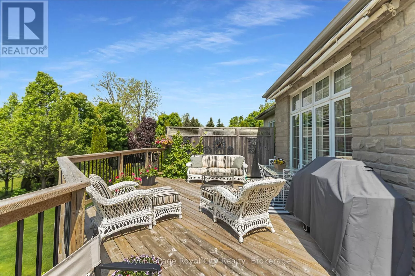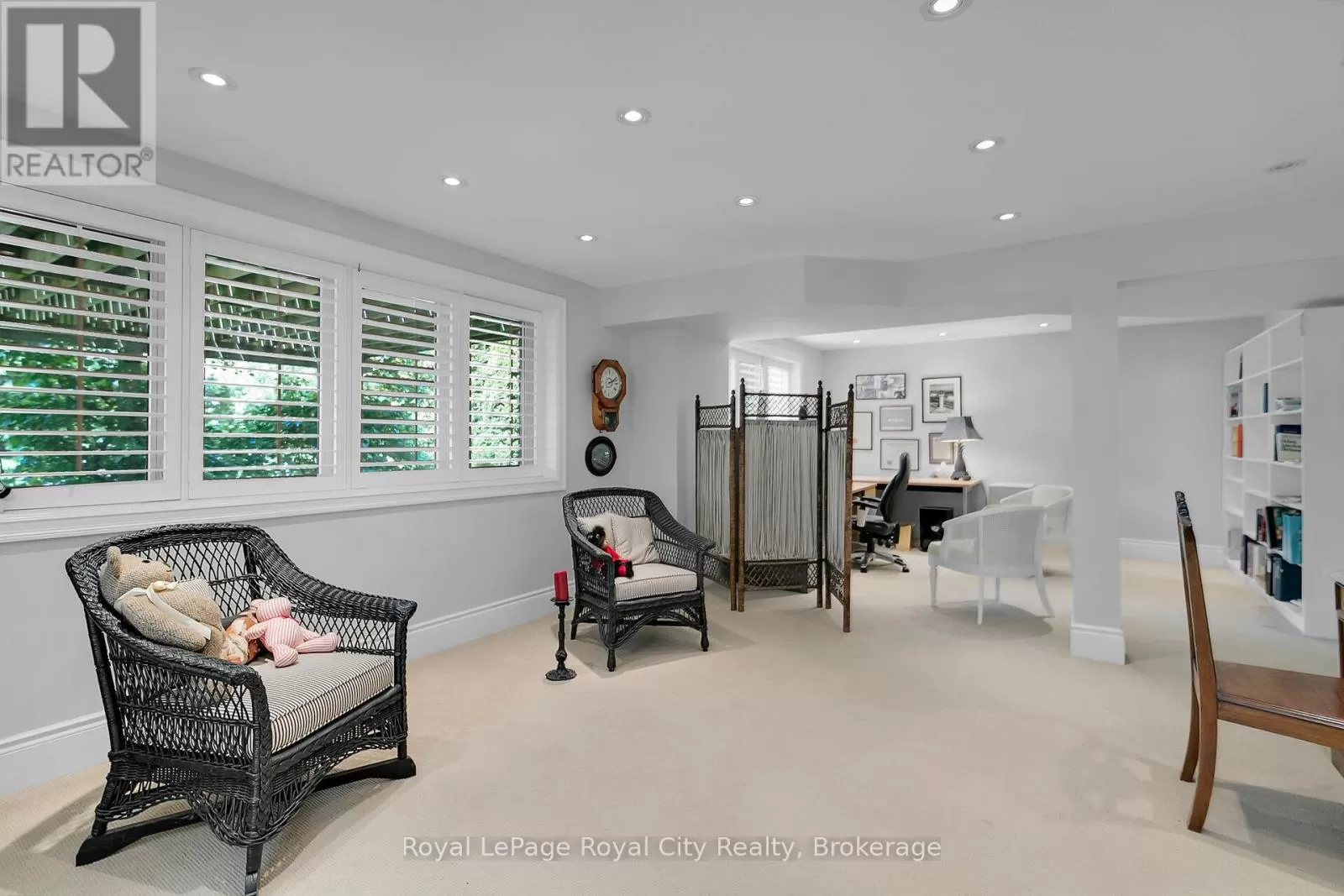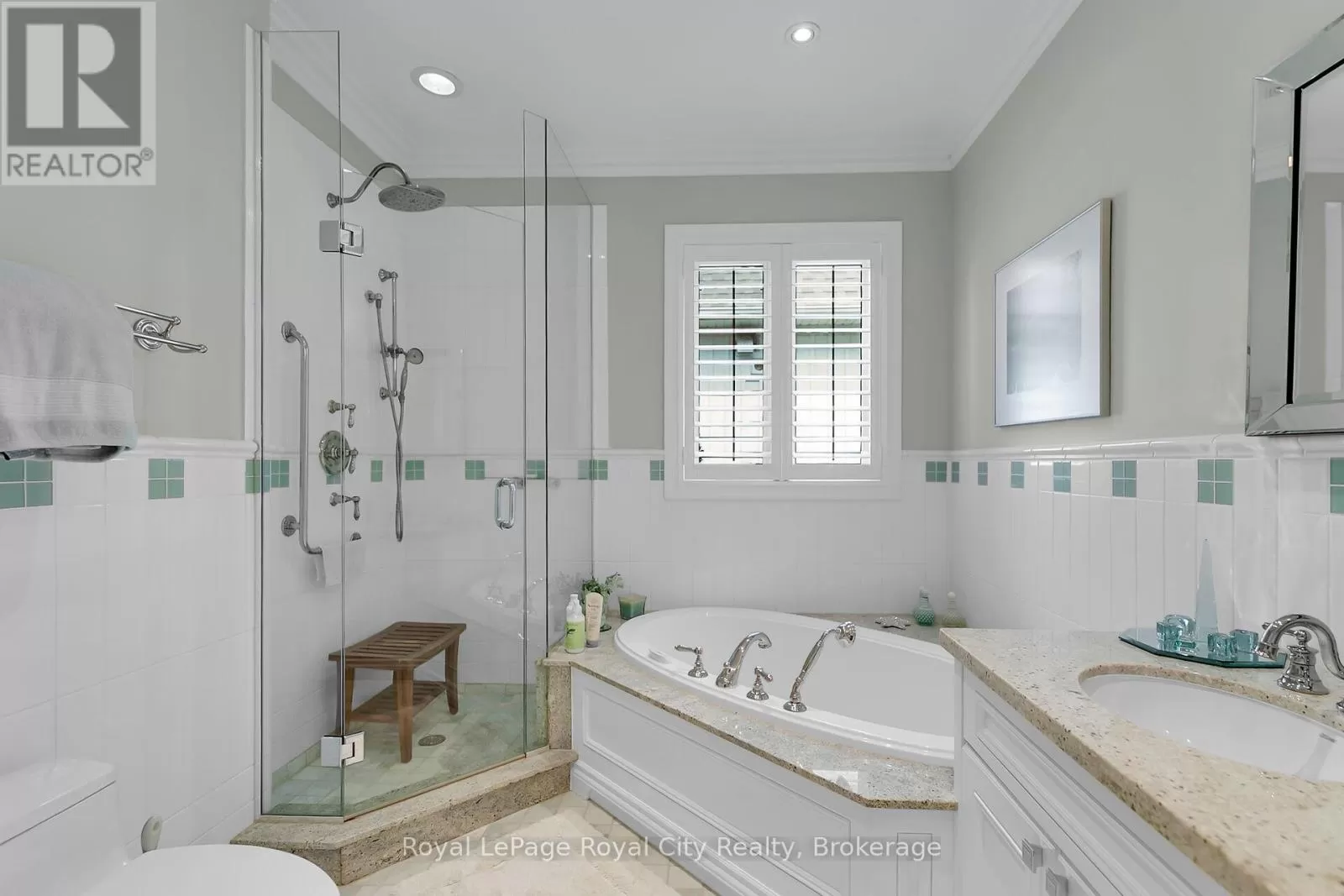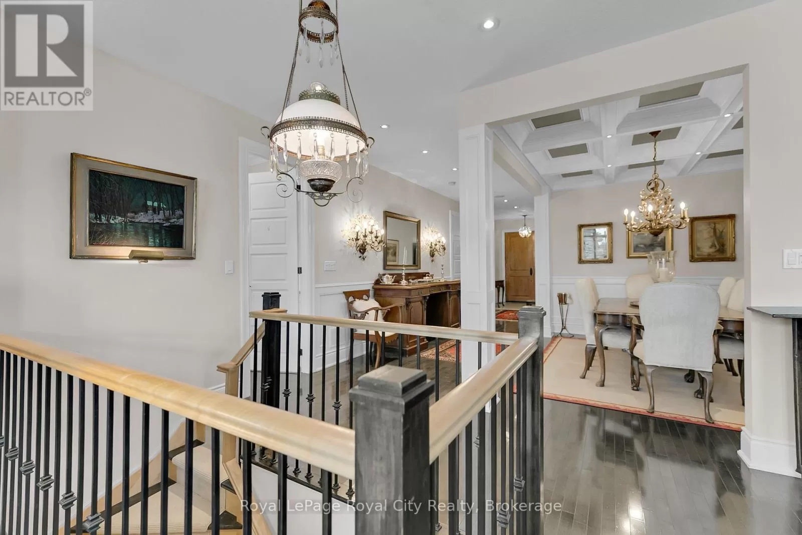 Cross Streets: Gilmour Road. ** Directions: Brock Road to Gilmour, left on Aberfoyle Mill Crescent. Exquisite Former Model Home in the Prestigious Meadows of Aberfoyle. Fox Hollow Model with 1954+ Sq. Ft. 2+1 bedroom, 3 baths and a walkout Basement Welcome to luxury living in the sought-after private community of the Meadows of Aberfoyle, where tranquility meets convenience just minutes from major transportation routes and everyday amenities. Tucked away on over 20 acres of private, beautifully landscaped grounds, this exclusive enclave of just 55 executive bungalows offers an unmatched lifestyle with walking trails, a putting green, scenic forest views, and a charming gazebo. This spectacular bungalow, originally showcased as the builders model home, boasts superior craftsmanship, premium upgrades, and timeless design throughout. No detail was overlooked from 9-foot ceilings, 8-foot solid-core doors, and designer hardware, to a gourmet kitchen with high-end appliances, custom cabinetry, and a large center island that flows effortlessly into a sun-drenched family room featuring a bespoke fireplace and stunning built-ins. The main level offers a thoughtfully designed layout, anchored by the Fox Hollow models signature open-concept elegance. Highlights include a spacious primary suite with a beautifully appointed spa-inspired ensuite, second bedroom and versatile den (ideal for home office or guest space), additional full 3pc bath and a formal dining room with coffered ceiling and a seamless view into the heart of the home. The bright walkout basement expands your living space with an additional ~600 sq. ft. finished area, including a large recreation room, 3pc bath, and ample storage with endless possibilities for customization. AC and furnace replaced 2024. Enjoy a worry-free lifestyle with a monthly condo fee that covers your water usage, annual septic inspection, and the meticulous maintenance of all common grounds. Don't miss your chance to own this exceptional home in one of the areas most desirable communities. (id:27476)