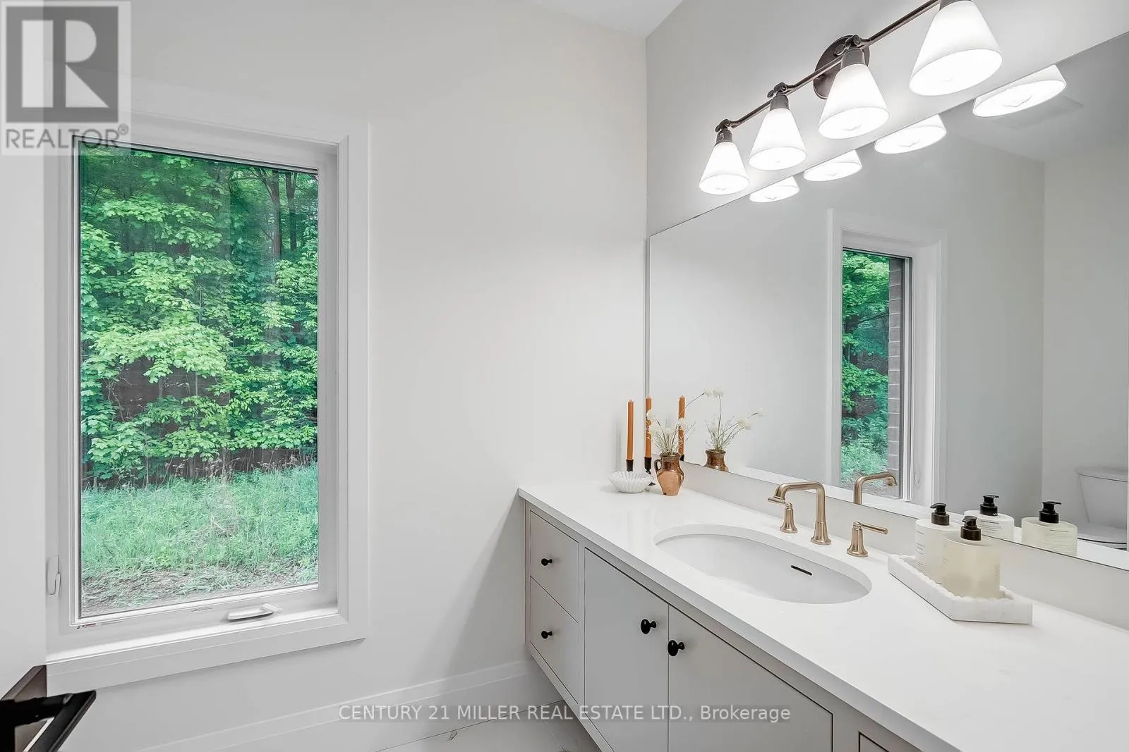 HWY 34/Concession Rd 11 Nestled in the picturesque Puslinch community on a pristine country road, this immaculate custom home offers refined traditional elegance with contemporary convenience. Ideally located southeast of Guelph and northeast of Aberfoyle, this location combines the serenity of country living with easy access to city amenities just 10 min away. Meticulously crafted by renowned Charleston Homes, this 3600 square foot (plus 500 sf of finished lower level space)showcases exceptional craftsmanship, expansive glazing, cathedral ceilings + unique designer details on a 1-acre lot.The aesthetic is classic yet sophisticated, perfectly blending traditional charm with modern comforts. The clever floor plan connects principal living spaces while ensuring privacy when desired. The heart of the home is the stunning Barzotti kitchen, complete with a walk-in pantry + ample cabinetry. Connected to the informal dining area and family room with soaring cathedral ceiling, this central hub features full-wall glazing framing lush, treed views. The mudroom is highly functional w/built-ins + interior access to the triple garage, complemented by a well-placed three-piece bath + coat closet. The primary suite is a sanctuary w/double-door entry, vaulted ceiling, expansive glazing, generous walk-in closet + a luxurious ensuite featuring a deep soaker tub, oversized glass shower +water closet. Two additional bedrooms are generously sized, each with ample storage, extensive glazing+private ensuites. A convenient laundry area completes this level. The partially finished lower level adds a fourth bedroom with walk-in + private ensuite, plus additional space with large windows, a rough-in for a two-piece bath + high ceilings. Charleston Homes has been building exceptional custom homes for over 30 years, known for quality craftsmanship and timeless style. This exquisite home offers the perfect blend of sophisticated living, natural beauty + proximity to major highways and urban amenities. (id:27476)