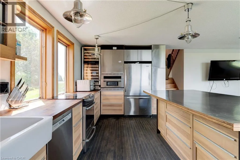 Campbellville Rd/Milburough Line/Watson Rd S UNINTERRUPTED WATER VIEWS AWAIT YOU! Nestled atop one of the highest points in Puslinch and just minutes from the charming Campbellville equestrian community, this unique opportunity invites you to either build your dream home (initial drawings and survey available) or reimagine the existing structure on a generous 1-acre lot (225 x 194 feet). Experience a beautiful nature sanctuary with stunning views of Mountsberg Reservoir, which spans 472 acres outside your door. Each morning, wake up to vibrant sunrises illuminating your backyard. The recently constructed garage measures 24x28 ft and is fully insulated, featuring three layers of high-density foam beneath engineered wood siding. It is framed with sturdy 2x6 lumber, topped with a durable steel roof, and equipped with a 100 Amp electrical panel and an EV charger. With buried water and sewer lines running to the garage foundation, the upper level can easily be transformed into a workshop or studio apartment, enhancing the investment! This incredible setting isnât just a building lot; itâs also the perfect starter home for those dreaming of a country lifestyle that could become your family retreat. Currently, the property boasts a loft bungalow with an abundance of windows, a spacious great room, a luxurious kitchen ready for culinary adventures, and sleeping quarters with both a main floor bedroom and a whimsical loft bedroom. Thereâs also a wood stove, heat pumps, and AC. You'll also love the charming cordwood garden shed. Conveniently located close to Highway 401, commuting to Guelph, Burlington, Hamilton, and the GTA is easy. Experiences awaits nearby, including a boat launch where you can fish or paddle in your kayak or non-motorized boats. Additionally, you'll discover a variety of beautiful hiking trails and excellent fishing opportunities in the area, all surrounded by breathtaking scenery. Start planning your visit and be first in line for your new lifestyle and investment today! (id:27476)