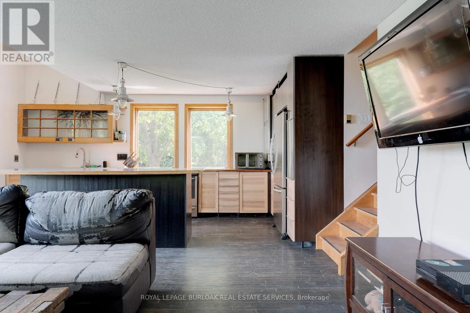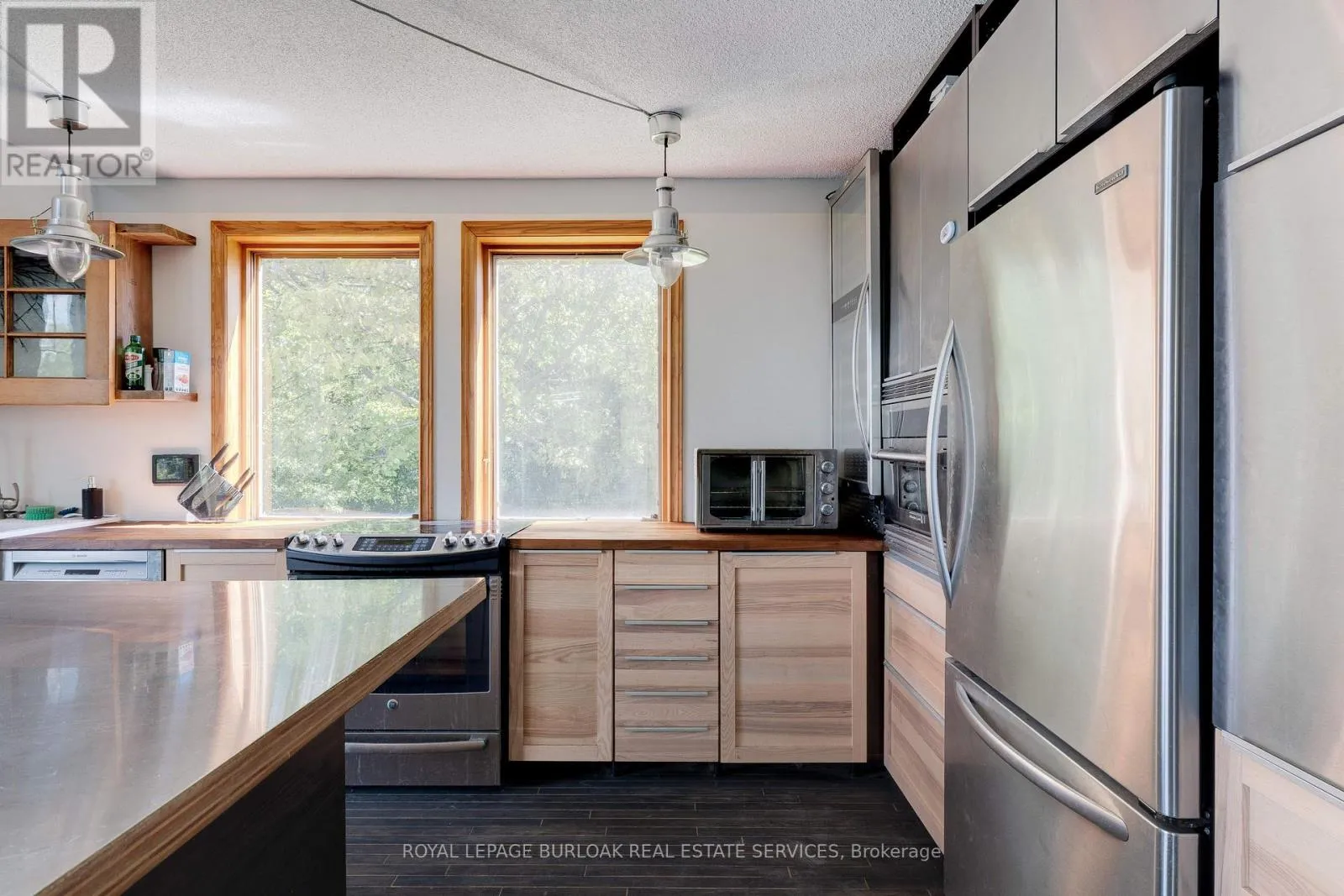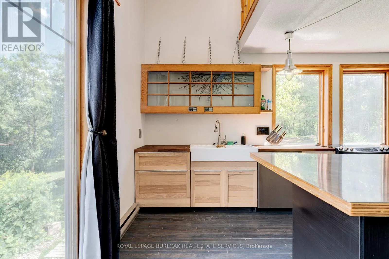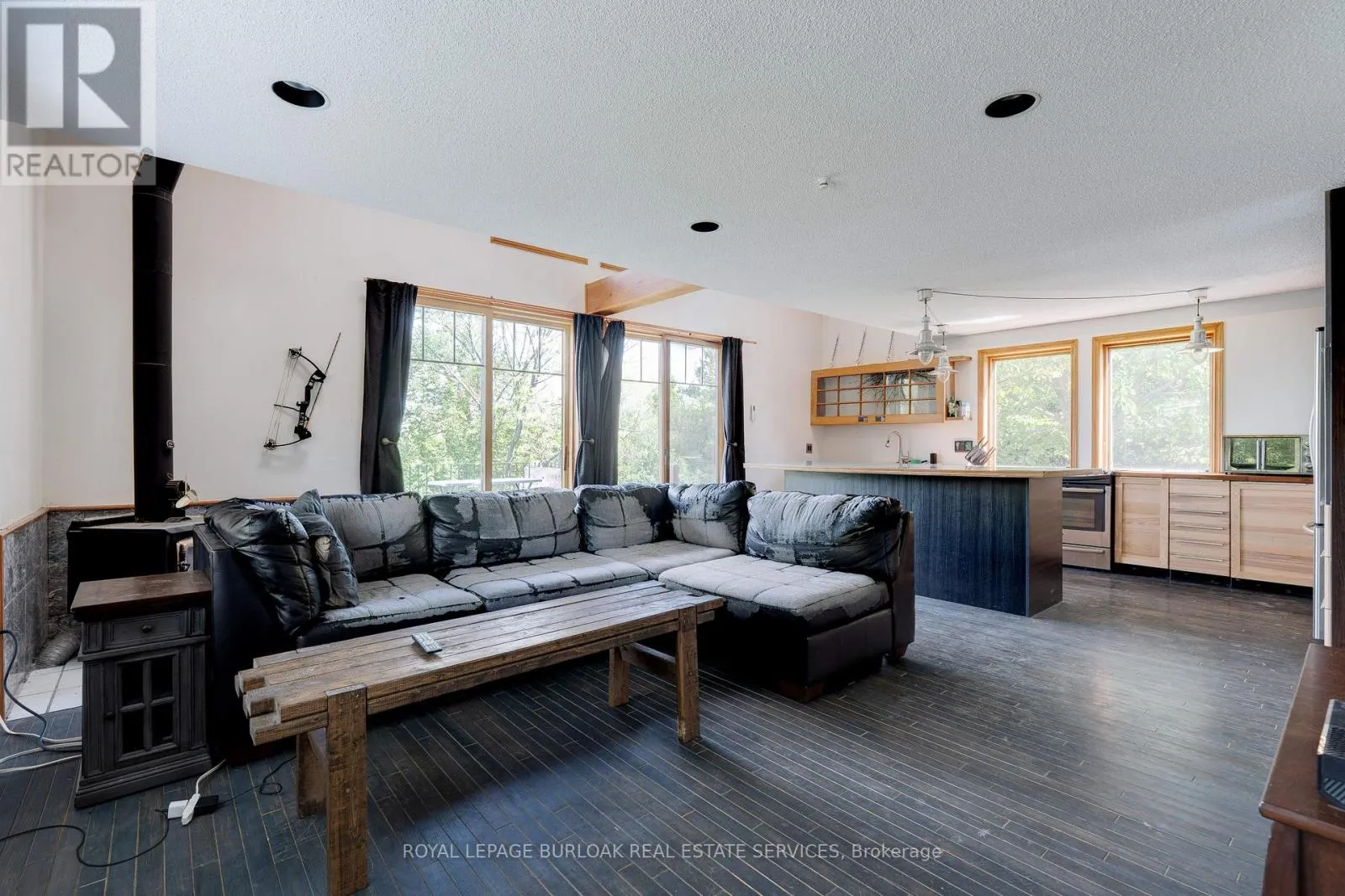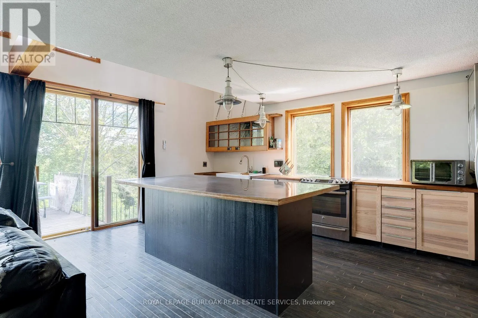Campbellville Rd/Milburough Line/Watson Rd S UNINTERRUPTED WATER VIEWS AWAIT YOU! Nestled atop one of the highest points in Puslinch and just minutes from the charming Campbellville equestrian community, this unique opportunity invites you to either build your dream home (initial drawings and survey available)or reimagine the existing structure on a generous 1-acre lot (225 x 194 feet). Experience a beautiful nature sanctuary with stunning views of Mountsberg Reservoir, which spans 472 acres outside your door. Each morning, wake up to vibrant sunrises illuminating your backyard. The recently constructed garage measures 24x28 ft and is fully insulated, featuring three layers of high-density foam beneath engineered wood siding. It is framed with sturdy 2x6 lumber, topped with a durable steel roof, and equipped with a 100 Amp electrical panel and an EV charger.With buried water and sewer lines running to the garage foundation, the upper level can easily be transformed into a workshop or studio apartment, enhancing the investment! This incredible setting isn't just a building lot; its also the perfect starter home for those dreaming of a country lifestyle that could become your family retreat. Currently, the property boasts a loft bungalow with an abundance of windows, a spacious great room, a luxurious kitchen ready for culinary adventures, and sleeping quarters with both a main floor bedroom and a whimsical loft bedroom. Theres also a wood stove, heat pumps, and AC. You'll also love the charming cordwood garden shed. Conveniently located close toHighway 401, commuting to Guelph, Burlington, Hamilton, and the GTA is easy. Experiences awaits nearby, including a boat launch where you can fish or paddle in your kayak or non-motorized boats. Additionally, you'll discover a variety of beautiful hiking trails and excellent fishing opportunities in the area, all surrounded by breathtaking scenery. Start planning your visit and be first in line for your new lifestyle and investment today! (id:27476)