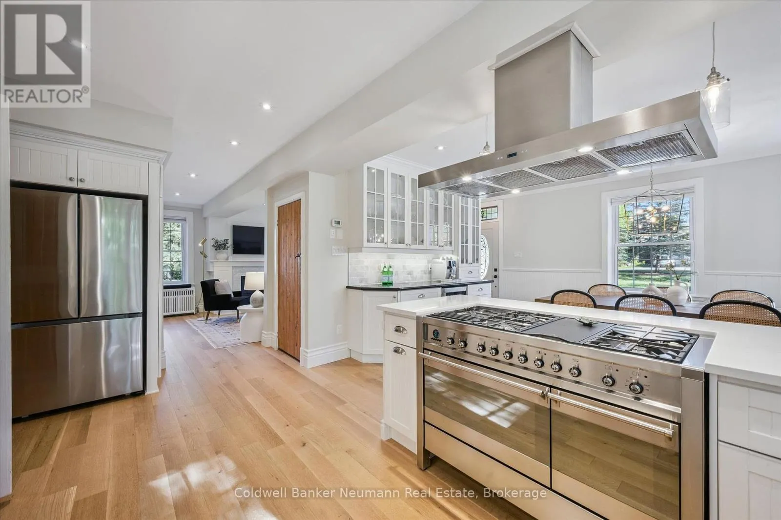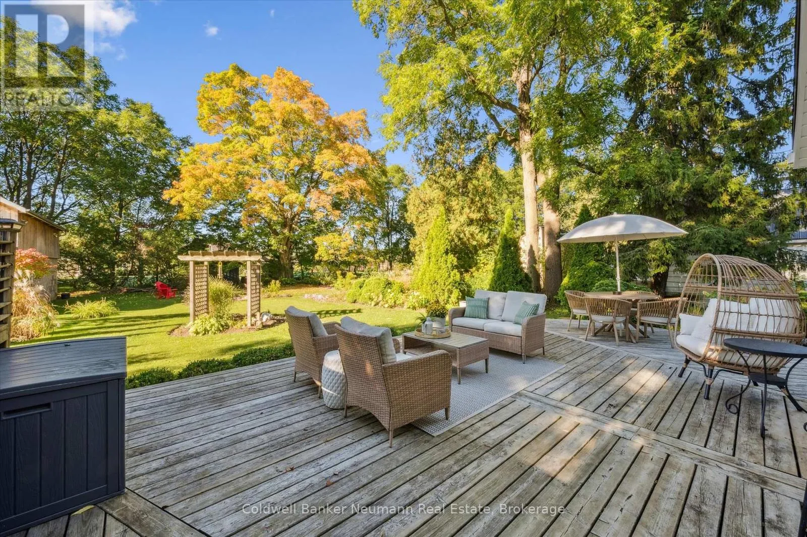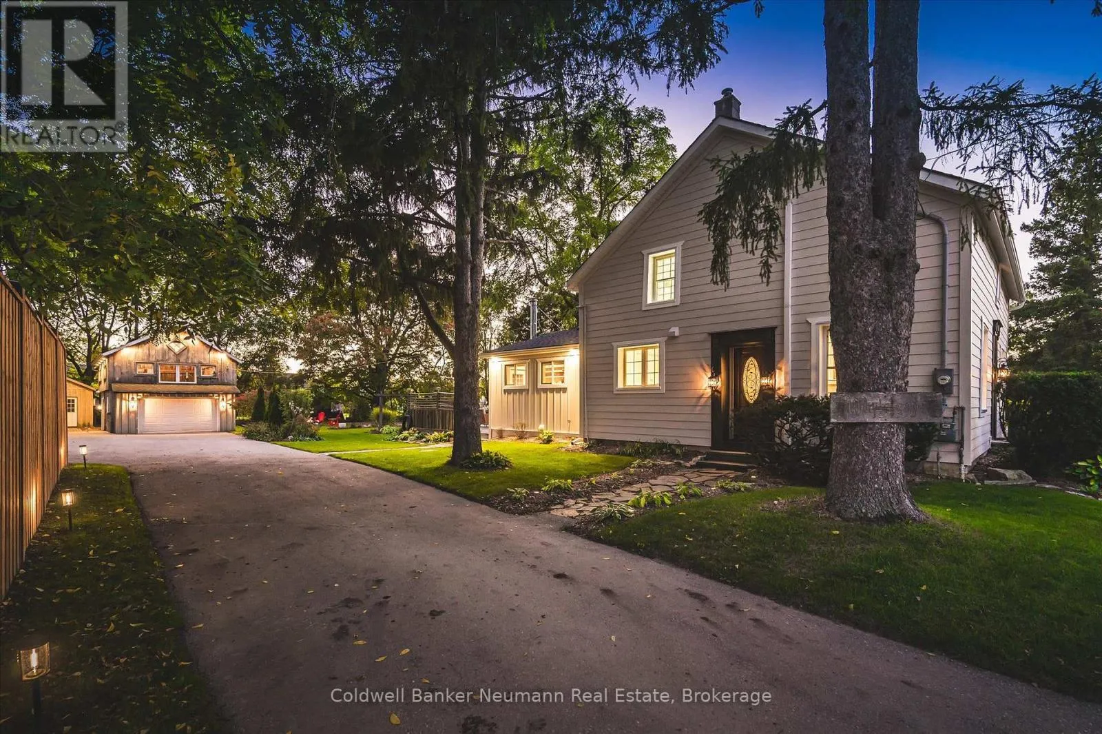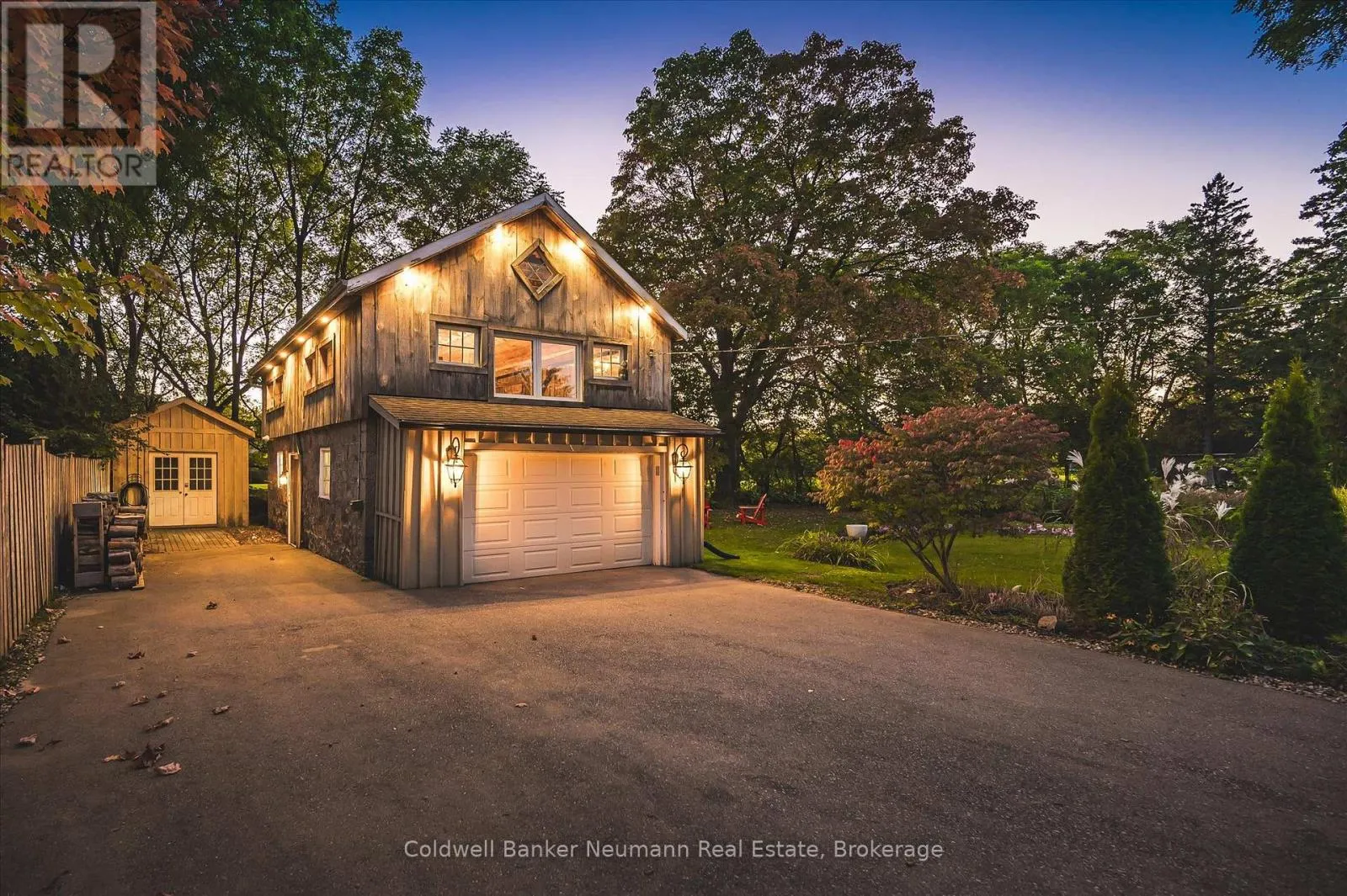 Cross Streets: Arkell. ** Directions: Watson & Arkell. Rural Setting, Urban Reach! Escape the City without leaving it behind! Originally built in 1880, this timeless beauty has been thoughtfully updated inside and out retaining its historic charm while offering all the modern touches youre looking for. From the moment you arrive, the inviting curb appeal and beautifully landscaped grounds set the tone. At the back, a versatile barn/garage provides endless opportunities whether you dream of a creative studio, workshop, yoga retreat, or simply extra storage. Step inside to discover a bright, airy interior where every detail has been carefully considered. The heart of the home is the stunning open-concept kitchen, offering a European 6 element gas burner with a double oven, a new counter depth fridge, coffee bar area with new bar fridge and featuring stunning quartz countertops. The welcoming living/dining offer oversized windows, built ins and an updated fireplace that floods the main floor with warmth on cold days! The mudroom adds both charm and function, complete with an updated stylish laundry area, wooden counters, and a refreshed two-piece bathroom. A deck off the back office, offers views of the trees, fire pit and hop in the hot tub year round to enjoy the views of this gorgeous backyard. Upstairs, the original hardwood floors have been lovingly restored to a light, natural finish giving a fresh new look to their century-old character. Set on a large lot in a peaceful rural setting, this property offers the best of both worlds: country living just steps from trails, & minutes from city amenities. With every major update already taken care of, all thats left to do is move in and enjoy. (Other improvements by professional companies include brand new septic system, RV outlet and 100 amp panel in garage, Encapsulation/Drainage and Sump Pumps in basement, added attic insulation, main floor hardwood & fireplace, all exterior composite siding/flashing and insulation, Boiler and A/C serviced to name a few!) (id:27476)