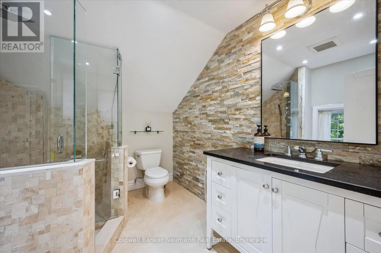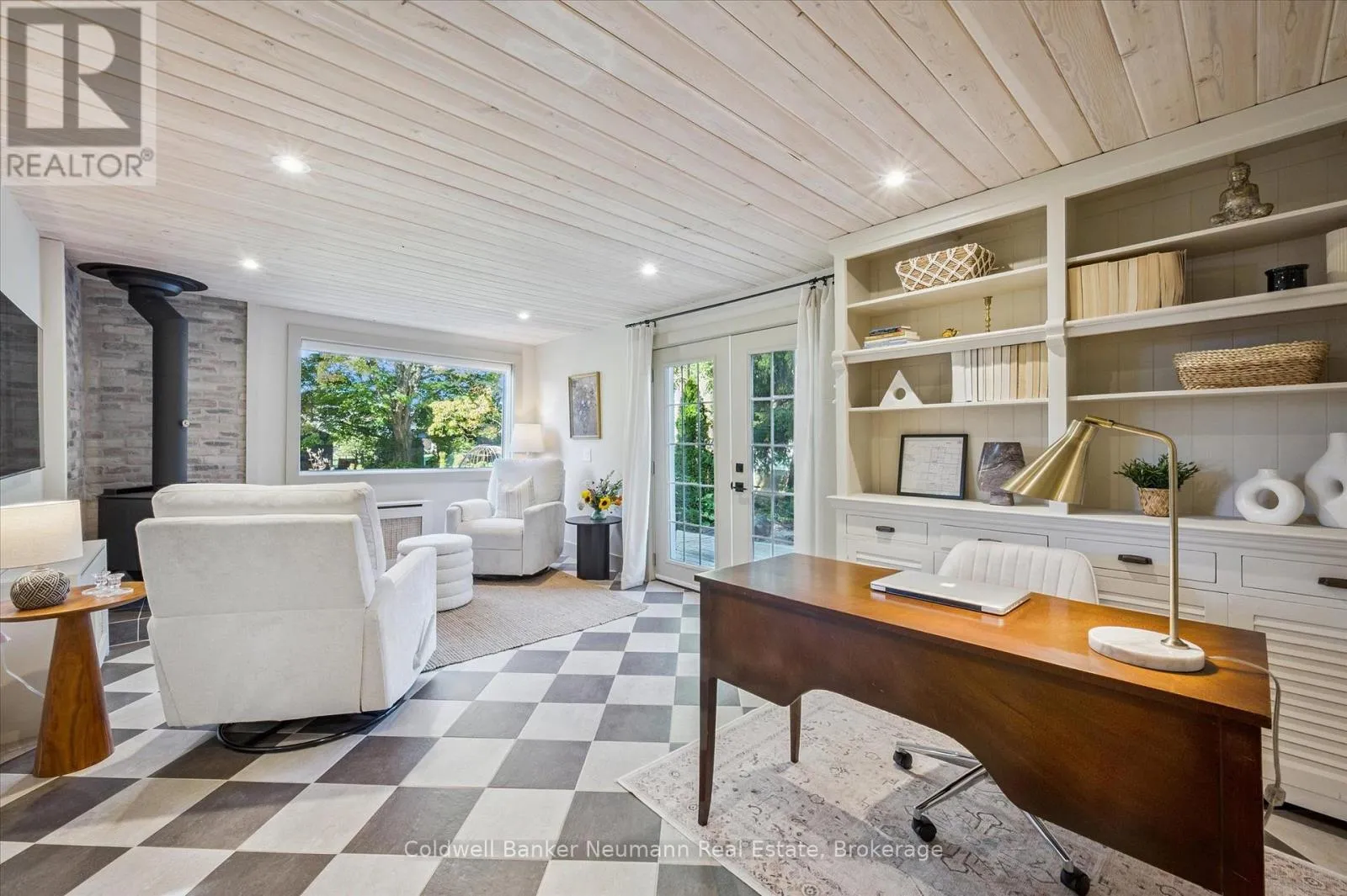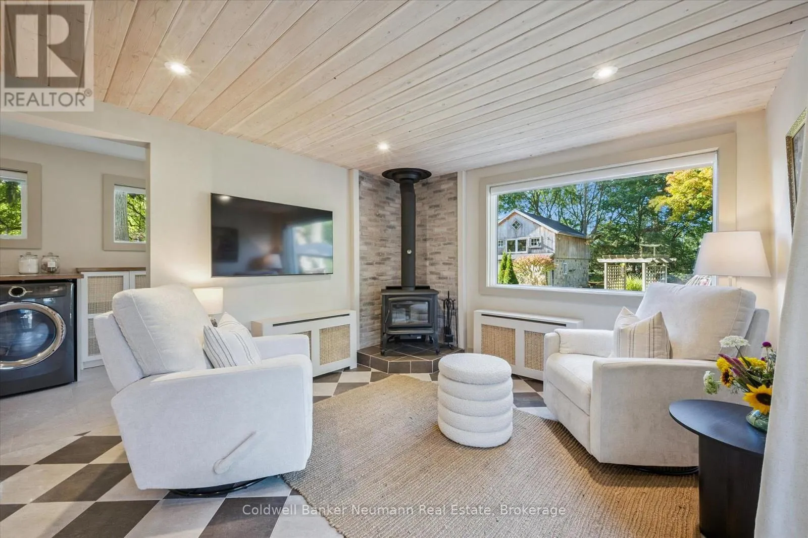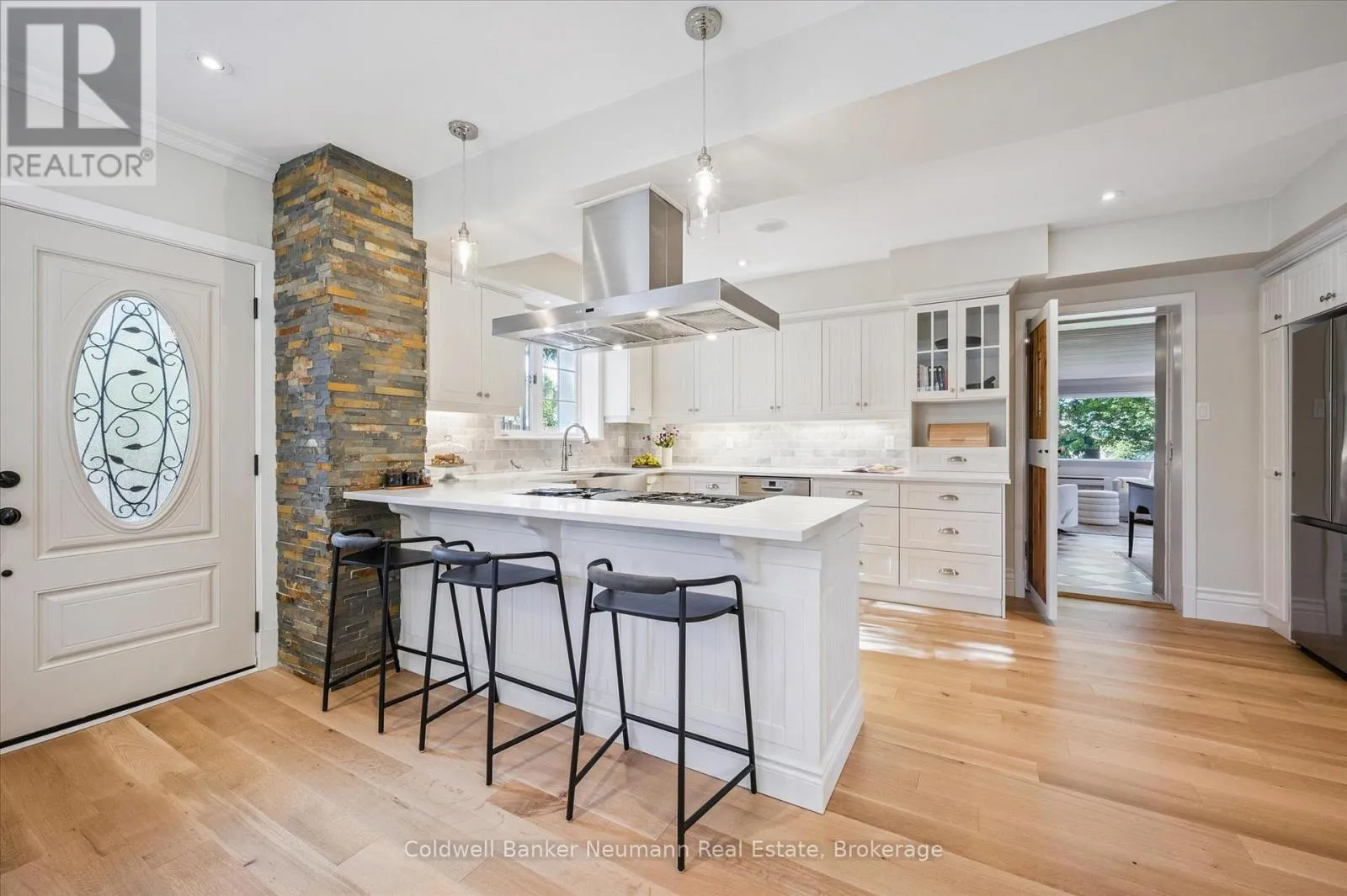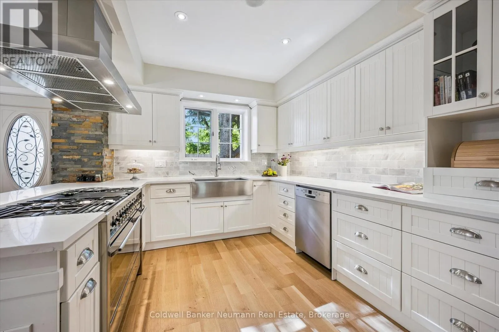 Cross Streets: Arkell. ** Directions: Watson & Arkell. Rural Setting, Urban Reach! Escape the City without leaving it behind! Originally built in 1880, this timeless beauty has been thoughtfully updated inside and out retaining its historic charm while offering all the modern touches youre looking for. From the moment you arrive, the inviting curb appeal and beautifully landscaped grounds set the tone. At the back, a versatile barn/garage provides endless opportunities whether you dream of a creative studio, workshop, yoga retreat, or simply extra storage. Step inside to discover a bright, airy interior where every detail has been carefully considered. The heart of the home is the stunning open-concept kitchen, offering a European 6 element gas burner with a double oven, a new counter depth fridge, coffee bar area with new bar fridge and featuring stunning quartz countertops. The welcoming living/dining offer oversized windows, built ins and an updated fireplace that floods the main floor with warmth on cold days! The mudroom adds both charm and function, complete with an updated stylish laundry area, wooden counters, and a refreshed two-piece bathroom. A deck off the back office, offers views of the trees, fire pit and hop in the hot tub year round to enjoy the views of this gorgeous backyard. Upstairs, the original hardwood floors have been lovingly restored to a light, natural finish giving a fresh new look to their century-old character. Set on a large lot in a peaceful rural setting, this property offers the best of both worlds: country living just steps from trails, & minutes from city amenities. With every major update already taken care of, all thats left to do is move in and enjoy. (Other improvements by professional companies include brand new septic system, RV outlet and 100 amp panel in garage, Encapsulation/Drainage and Sump Pumps in basement, added attic insulation, main floor hardwood & fireplace, all exterior composite siding/flashing and insulation, Boiler and A/C serviced to name a few!) (id:27476)