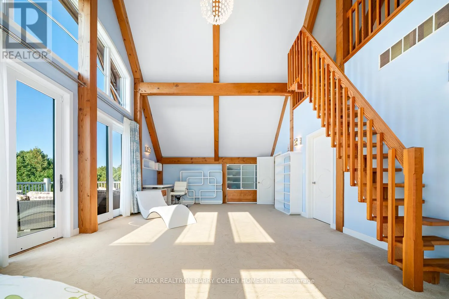 Cross Streets: Daymond Dr / Brock Rd N. ** Directions: West on Daymond Dr from Brock Rd. This One-Of-A-Kind Residence Was Custom Built By The Owners To Showcase Their Unique Vision, Blending The Chic Allure Of High-End Chalet Design With The Timeless Strength Of Canadian Timber Frame Craftsmanship. A Striking Copper Roof Crowns The Home, While A Dramatic Great Room With Soaring 35-Foot West-Facing Windows And A Circular Gas Fireplace Sets The Tone For Inspired Living. Overlooking This Impressive Space Is A Designer Snaidero Kitchen With Seating For 10, Walkout To The Wraparound Deck, And An Infinity Pool Bordered By Glass Walls.The Main Floor Is Anchored By A Private Office Or Dining Room, And A Bauhaus-Inspired Powder Room With Tile Detailing. The Primary Suite Serves As A True Sanctuary, Featuring Cathedral-Like Beamed Ceilings, Bespoke Poliform His-And-Hers Walk-In Closets, A Luxurious Spa-Like 5-Piece Ensuite. Upstairs, Two Expansive Bedroom Suites With 25-Foot Ceilings Each Enjoy Private Walk-In Closets And Share A Large 6-Piece Ensuite With Loft Areas.The Walk-Out Lower Level Offers A Family Room, Acoustic Music Studio, Private Hair Salon, And Powder Room, Along With Additional Bedrooms For Family Or Guests. Designed With Both Scale And Intimacy In Mind, This Home Balances Contemporary Elegance With Natural Warmth - An Irreplaceable Retreat Surrounded By Unmatched Privacy. (id:27476)