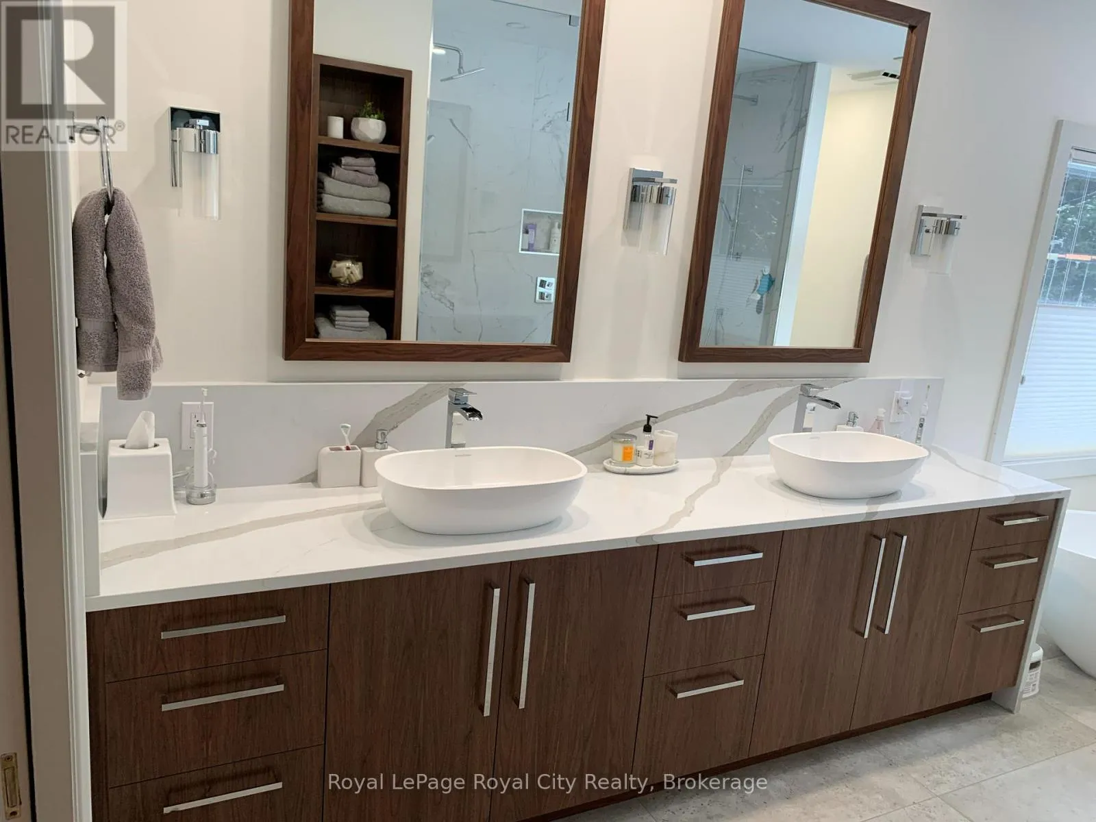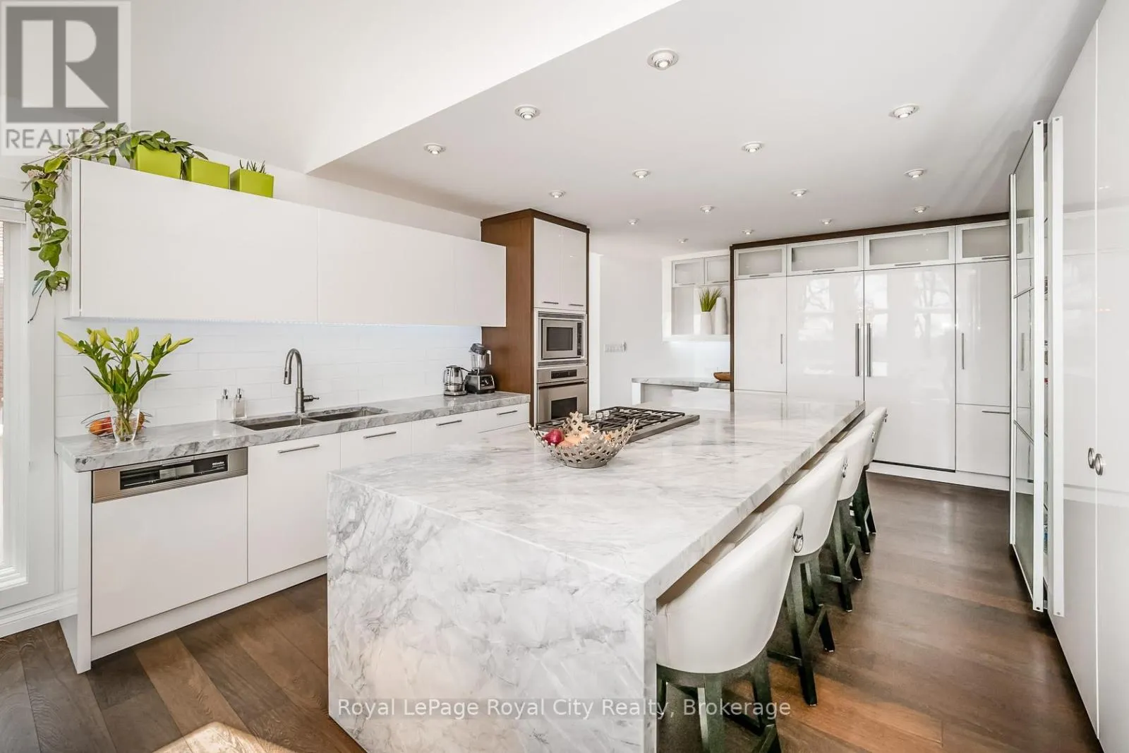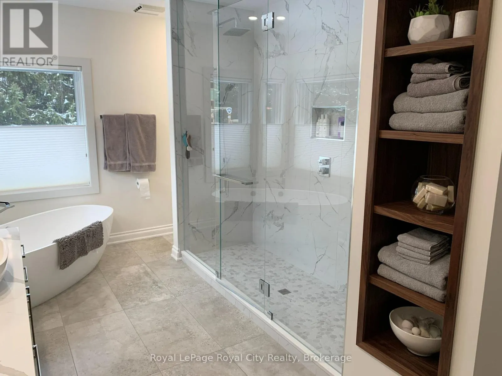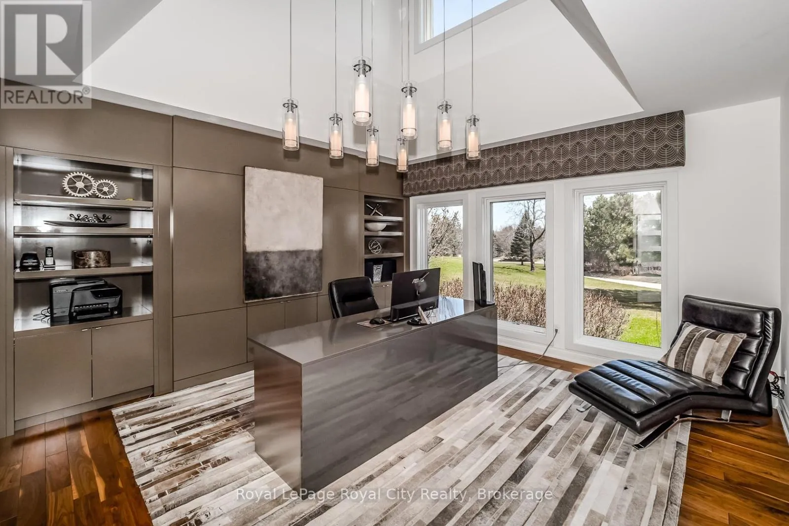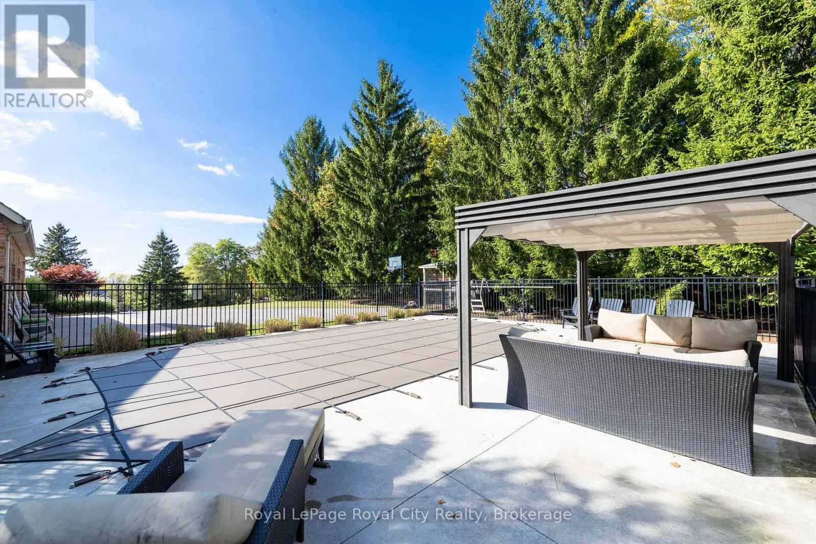 Cross Streets: Brock Road. ** Directions: Brock Road to Fox Run. Set high on a hill and surrounded by mature trees and backing onto parkland, this extraordinary residence offers the ultimate in privacy & sophistication. A classic, timeless exterior, perfectly situated in Fox Run Estates, one of the area's most coveted estate communities. Over 7300 sq ft of finished living space, it effortlessly blends elegance, comfort, design, and a touch of pizzazz. Magnificently located within minutes of all amenities as well as major transportation arteries, and yet a peaceful tranquil setting. Step inside and prepare to be impressed. The grand foyer boasting rich walnut flooring is flanked by a handsome home office on one side and an elegant formal dining room on the other - perfect for hosting special occasions. The private primary wing is a true retreat, complete with a newly renovated spa-like ensuite, a custom walk-in closet with Birdseye Maple cabinetry, and a private deck leading to a hot tub - the perfect spot to unwind at day's end. The state-of-the-art Downsview kitchen is a chef's dream, featuring an enormous granite island and abundant workspace for multiple cooks to collaborate in style. The bright breakfast area enjoys scenic countryside views, while the adjacent 2 storey sitting area offers a sunny sanctuary. This wing also provides access to a private front courtyard, a second main-floor powder room, laundry room and 3 car garage, along with convenient access to the rear yard and pool area. At the heart of the home, the family room is defined by a granite faced gas fireplace. Custom cabinetry houses an entertainment centre and French doors lead to an expansive rear deck overlooking the pool - a seamless blend of indoor and outdoor living. Upstairs, 2 bedrooms share a full Jack & Jill bath Third bedroom features its own private ensuite. Prepare to be dazzled once again on the lower level, where a recent renovation has transformed the space into an entertainer's dream. (id:27476)