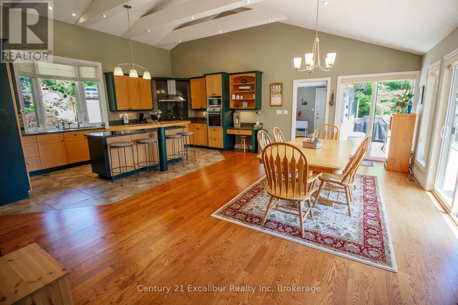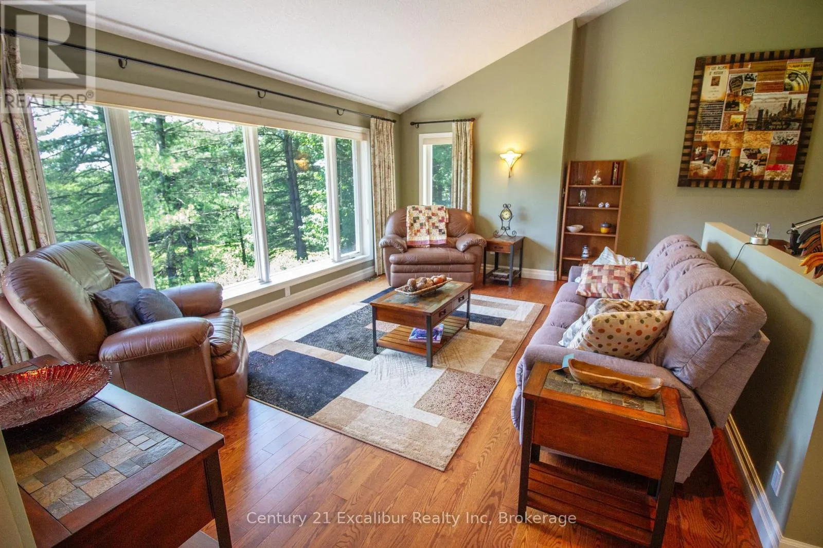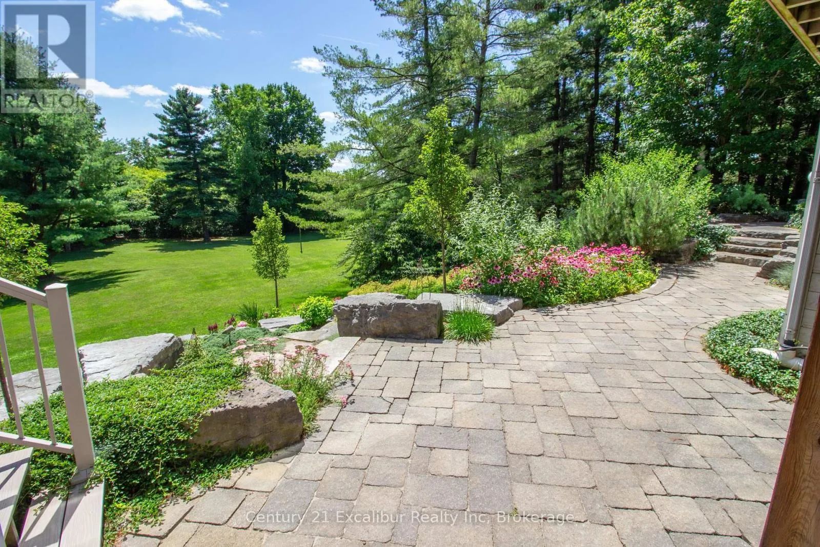 Cross Streets: EAST OF HWY 6/ SOUTH OF 401. ** Directions: Hwy 6: L or R onto Badenoch St, Right into driveway. Set on 3.4 acres of beautifully landscaped grounds, this spacious 3-bedroom, 4-bathroom home perfectly balances privacy, functionality, and comfort. Inside, soaring ceilings and a thoughtful layout create an inviting atmosphere. A versatile bachelor in-law suite-with its own heating system and bathroom-is currently used as a bright and productive home office. Step outside to the expansive back deck, ideal for entertaining or simply relaxing while you take in serene views of the surrounding green space. The yard has been carefully designed for enjoyment year-round, complete with a cozy fire pit area. The generous garage accommodates two cars and a motorbike, with a full workshop and extra storage space below-perfect for hobbyists or those needing room to tinker. An exciting opportunity adds even more value to this property: the process of severing a 1-acre lot from the main parcel is underway, creating the potential for future development, investment, or multi-generational living. The property is being offered as a package deal, allowing the buyer to secure both the existing residence and the newly severed lot-an exceptional combination of lifestyle and long-term potential. (id:27476)