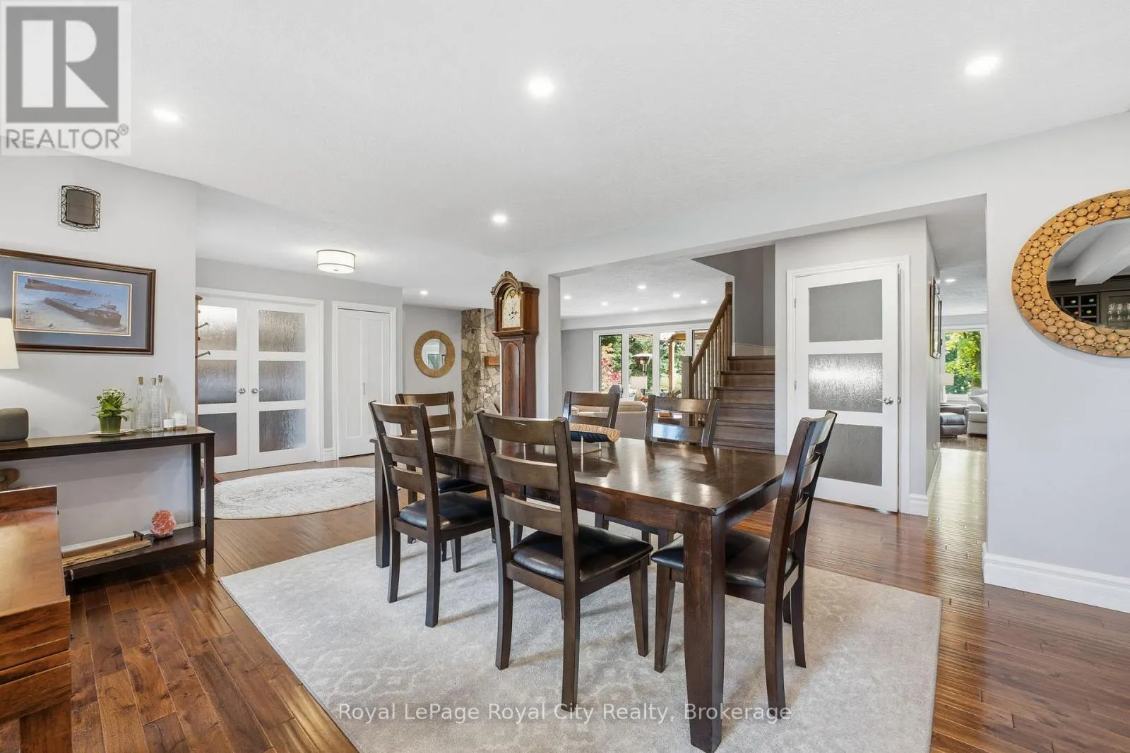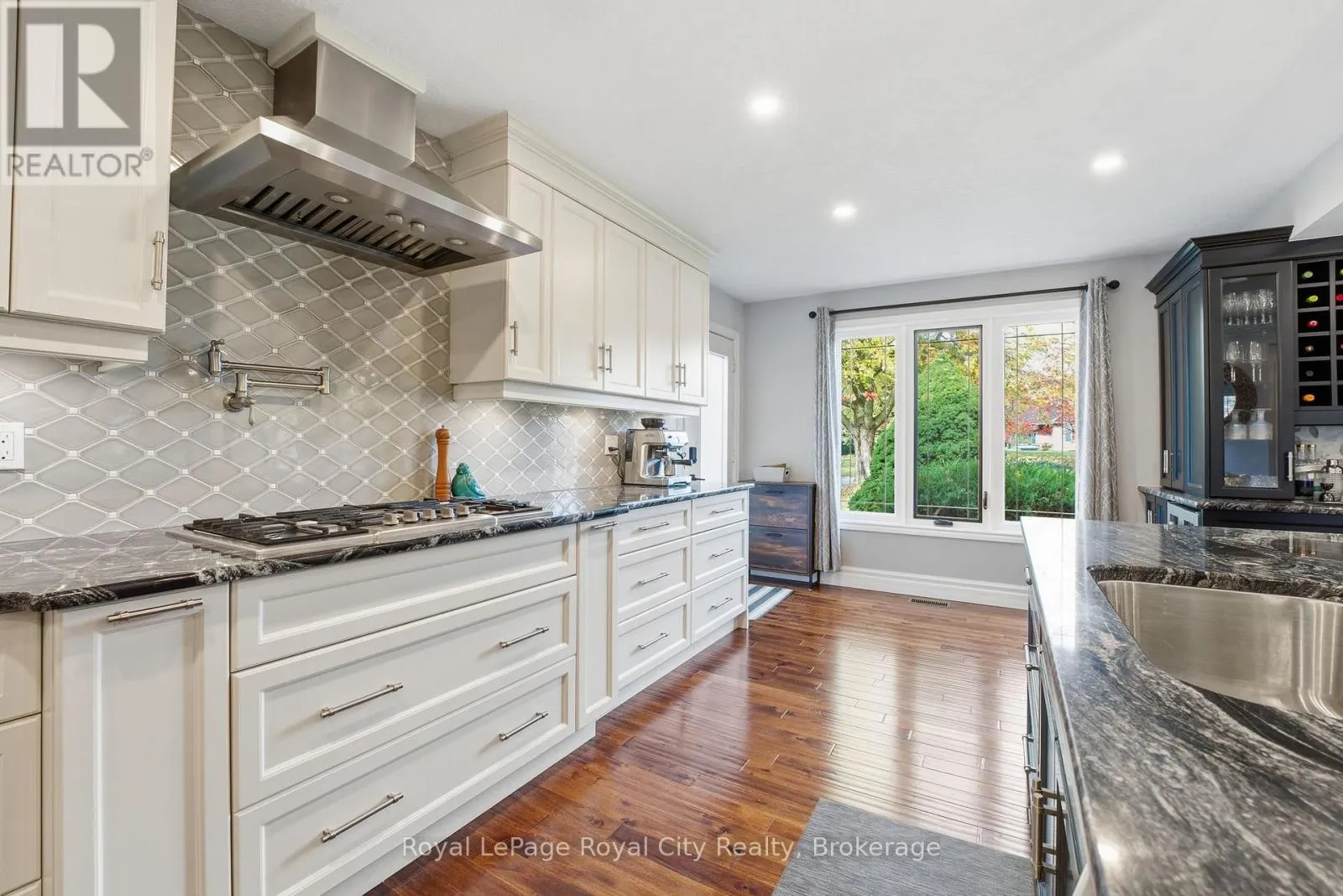 Cross Streets: Brock Road and Bridle Path. ** Directions: North on Brock road to Bridle Path. Welcome to a rare offering in one of the area's most coveted neighbourhoods.Set on a mature, tree-lined lot with towering maples and a circular drive, this exceptional 1.5-storey home blends timeless character with refined modern living. The reclaimed brick exterior hints at the craftsmanship within, while the private, resort-style backyard is truly one of the finest in the community.Step outside and prepare to be impressed. A saltwater pool anchors the outdoor oasis, complete with a charming pool cabana featuring a gas fireplace and multiple seating areas that invite relaxation and entertaining. A two-level composite deck, newly covered by a stunning pavilion boasts a hot tub overlooking a second stone patio with firepit and gazebo. Lush perennial gardens surround the entire yard, ensuring colour and beauty year round.Inside, the home is equally impressive. The main floor is designed for both connection and comfort, open concept ,yet thoughtfully defined. Large principal rooms, framed by generous windows, fill the space with natural light. The living room features a stone fireplace handcrafted by a local mason, paired with a rich timber mantle that becomes the heart of the home.The grand main-floor primary suite is a sanctuary of its own, offering an oversized bedroom, a dedicated dressing room, and serene views of the grounds. The versatile kitchen is ideal for both everyday living and entertaining, complete with gas cooktop, double ovens, granite island, walk-in pantry, and a beverage station. Upstairs, two additional bedrooms share a full bath.The fully finished walk-up basement adds exceptional functionality with a billiards area, bar for entertaining, TV/media space, games room, and three additional bedrooms-perfect for extended family or guests.A rare opportunity to own a home that combines craftsmanship, luxury, and resort-style outdoor living all minutes to the amenities and conveniences of the South End of Guelph and quick access for commuters. Impressive. (id:27476)