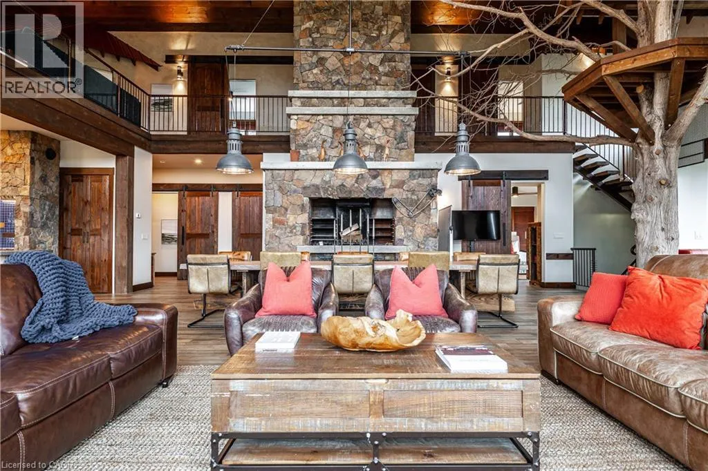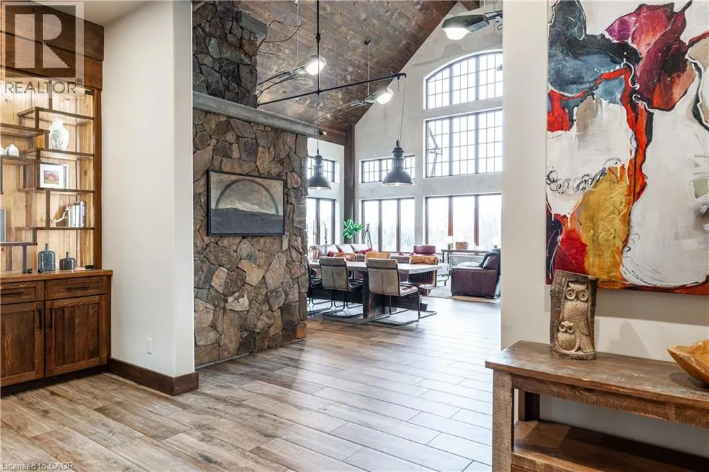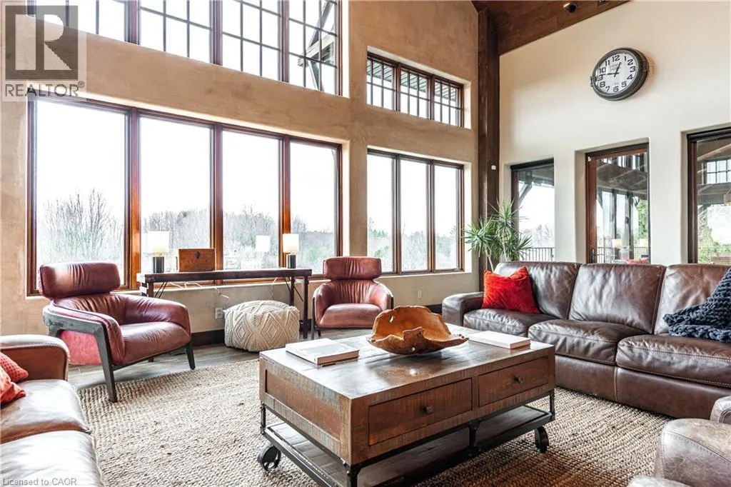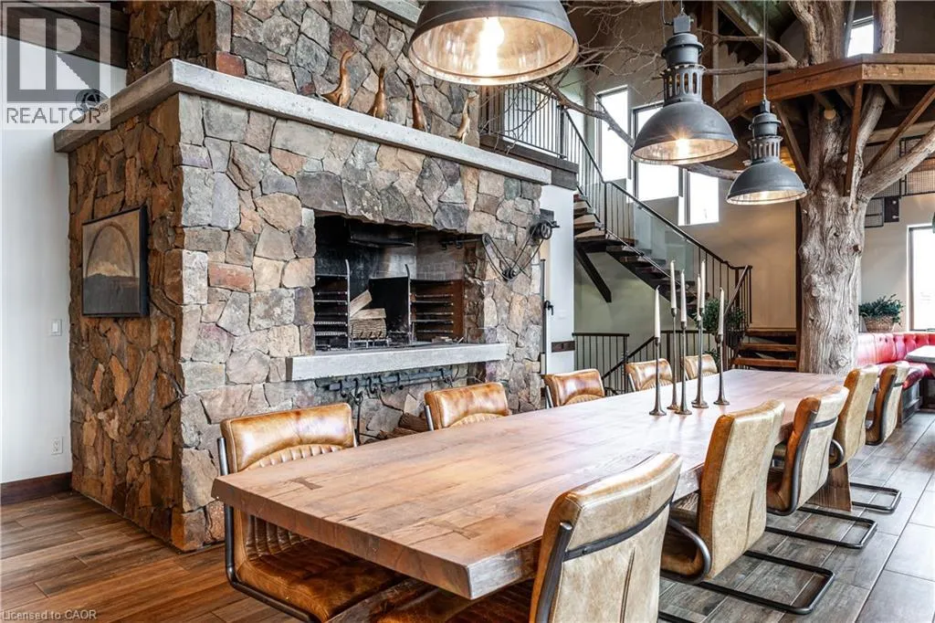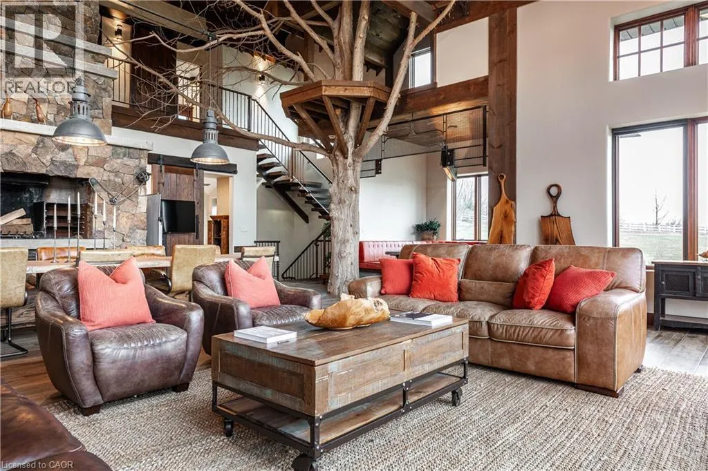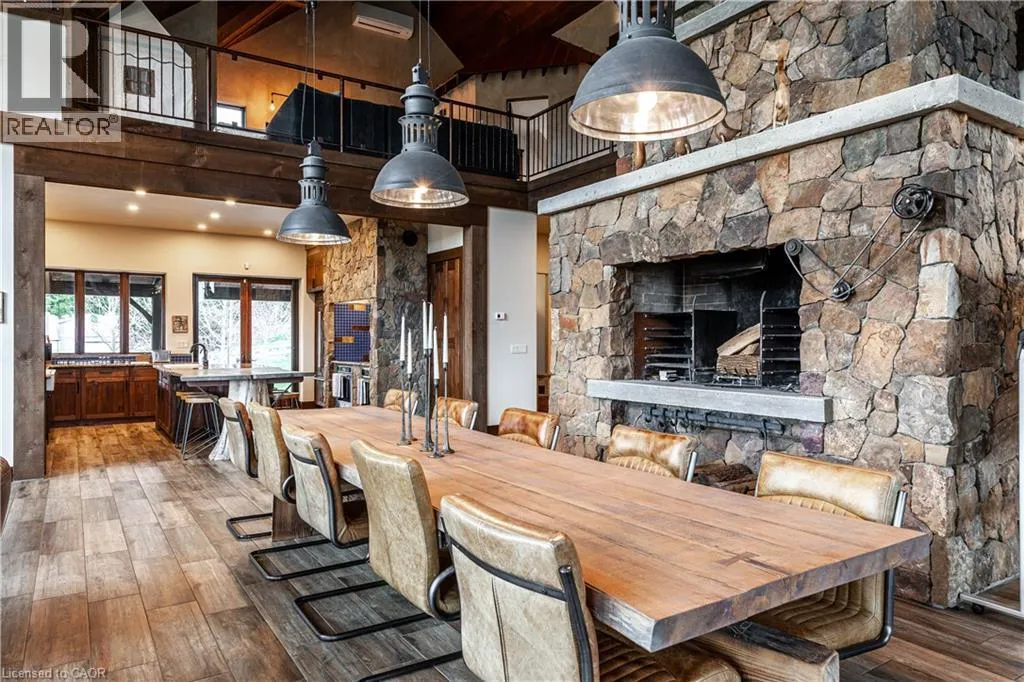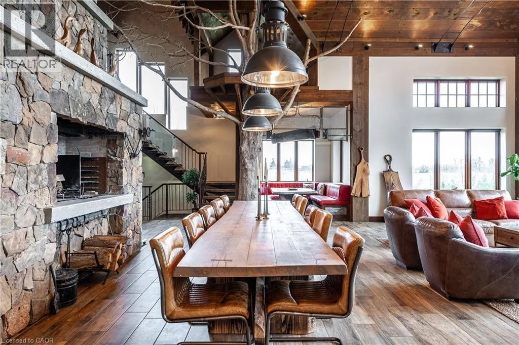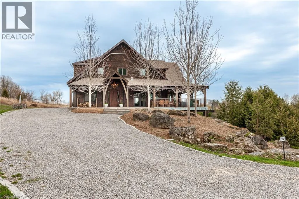between Guelph and Hamilton, just off Hwy 6 Short-term or long-term rental - available daily, weekly, monthly. Welcome to Elmwood Estate, an upscale 8-bedroom timber-frame sanctuary where rustic craftsmanship meets refined modern design. Set between Guelph and Hamilton and surrounded by quiet forest, this one-of-a-kind lodge is the perfect backdrop for unforgettable experiences of every kind. Inside, soaring cathedral ceilings, rich wood beams, and a dramatic 20-ft stone hearth anchor the great room â a breathtaking space for groups to gather, celebrate, and reconnect. Expansive windows frame calming woodland views, filling the home with natural light and inviting nature into every corner. The chefâs kitchen offers professional-grade appliances, generous prep space, and room for multiple cooks, ideal for shared meals, retreats, and special occasions. Elmwood is designed for relaxation, creativity, and wellness. Guests can enjoy a private sauna, fully outfitted gym, and a whimsical indoor treehouse loft perfect for reading, meditation, or quiet reflection. With 8 inviting bedrooms, the property provides flexible accommodations for families, corporate teams, and group getaways. Outdoors, forest trails, wide-open skies, and peaceful surroundings create a landscape that feels worlds away while remaining easily accessible. Just minutes from Dundas Peak, Elmwood offers convenience without sacrificing serenity. From wellness retreats to small weddings, bachelor getaways, corporate sessions, Christmas parties, and countless celebrations, Elmwood Estate offers a truly special setting that inspires, rejuvenates, and brings people together. Available for short term rentals - daily, weekly, monthly. Click on the sales brochure for booking/showing instructions. (id:27476)