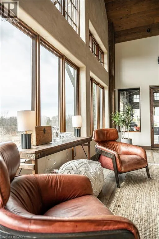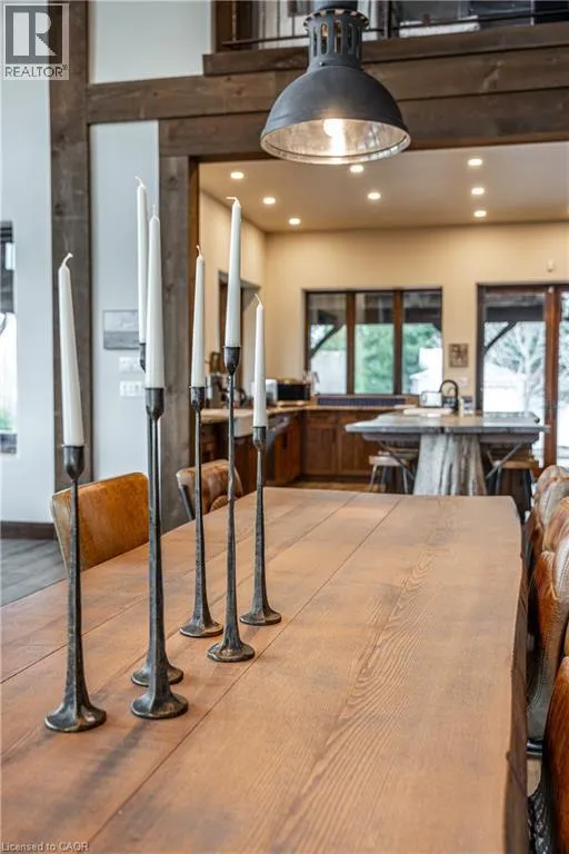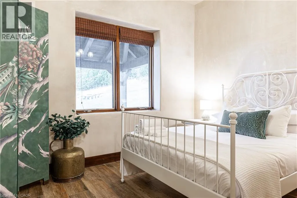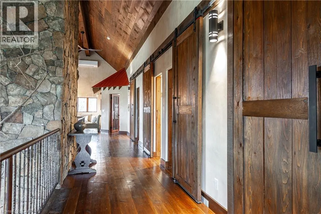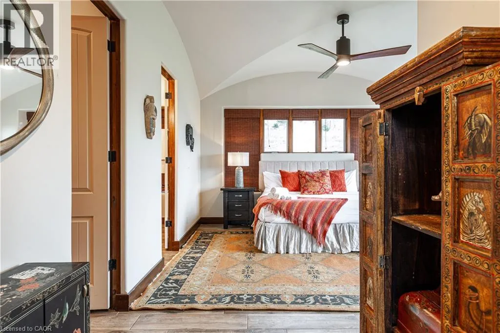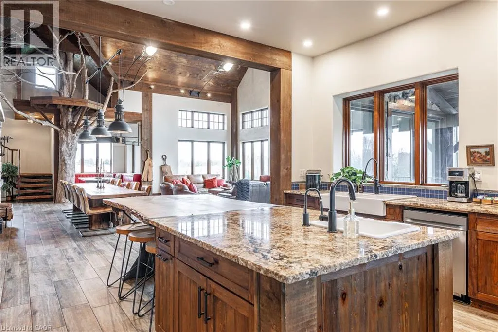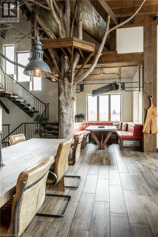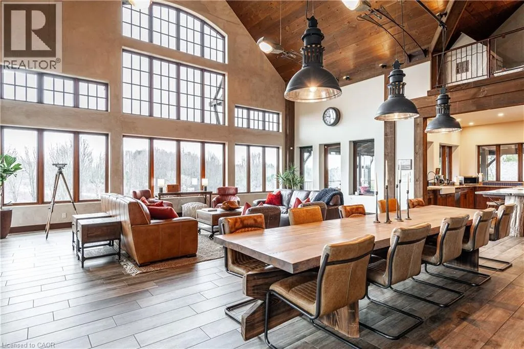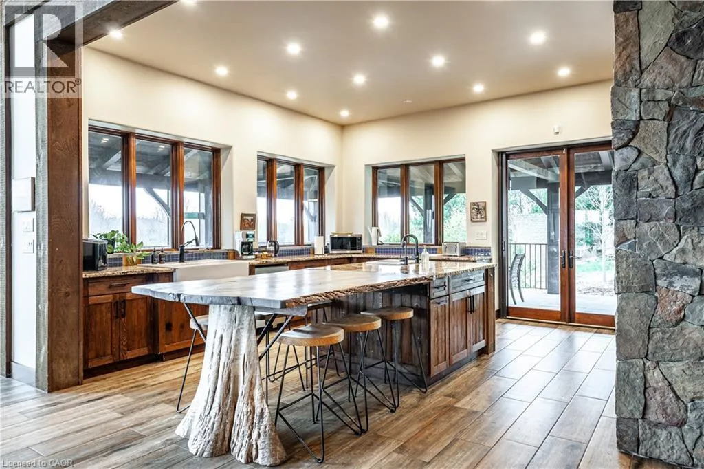 between Guelph and Hamilton, just off Hwy 6 Short-term or long-term rental - available daily, weekly, monthly. Welcome to Elmwood Estate, an upscale 8-bedroom timber-frame sanctuary where rustic craftsmanship meets refined modern design. Set between Guelph and Hamilton and surrounded by quiet forest, this one-of-a-kind lodge is the perfect backdrop for unforgettable experiences of every kind. Inside, soaring cathedral ceilings, rich wood beams, and a dramatic 20-ft stone hearth anchor the great room â a breathtaking space for groups to gather, celebrate, and reconnect. Expansive windows frame calming woodland views, filling the home with natural light and inviting nature into every corner. The chefâs kitchen offers professional-grade appliances, generous prep space, and room for multiple cooks, ideal for shared meals, retreats, and special occasions. Elmwood is designed for relaxation, creativity, and wellness. Guests can enjoy a private sauna, fully outfitted gym, and a whimsical indoor treehouse loft perfect for reading, meditation, or quiet reflection. With 8 inviting bedrooms, the property provides flexible accommodations for families, corporate teams, and group getaways. Outdoors, forest trails, wide-open skies, and peaceful surroundings create a landscape that feels worlds away while remaining easily accessible. Just minutes from Dundas Peak, Elmwood offers convenience without sacrificing serenity. From wellness retreats to small weddings, bachelor getaways, corporate sessions, Christmas parties, and countless celebrations, Elmwood Estate offers a truly special setting that inspires, rejuvenates, and brings people together. Available for short term rentals - daily, weekly, monthly. Click on the sales brochure for booking/showing instructions. (id:27476)