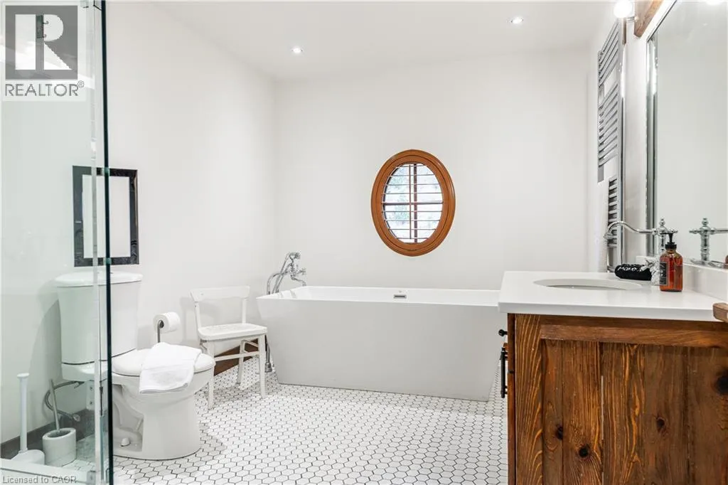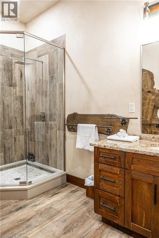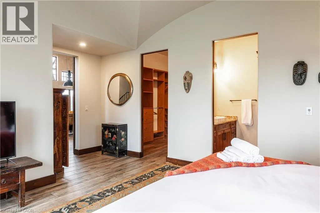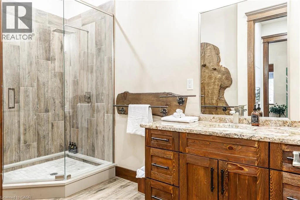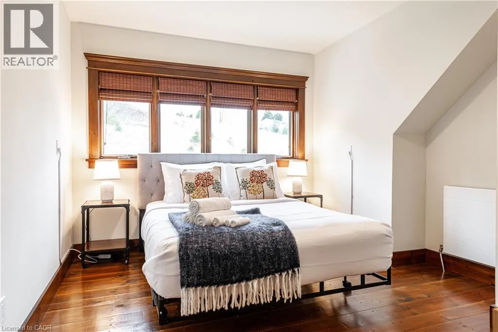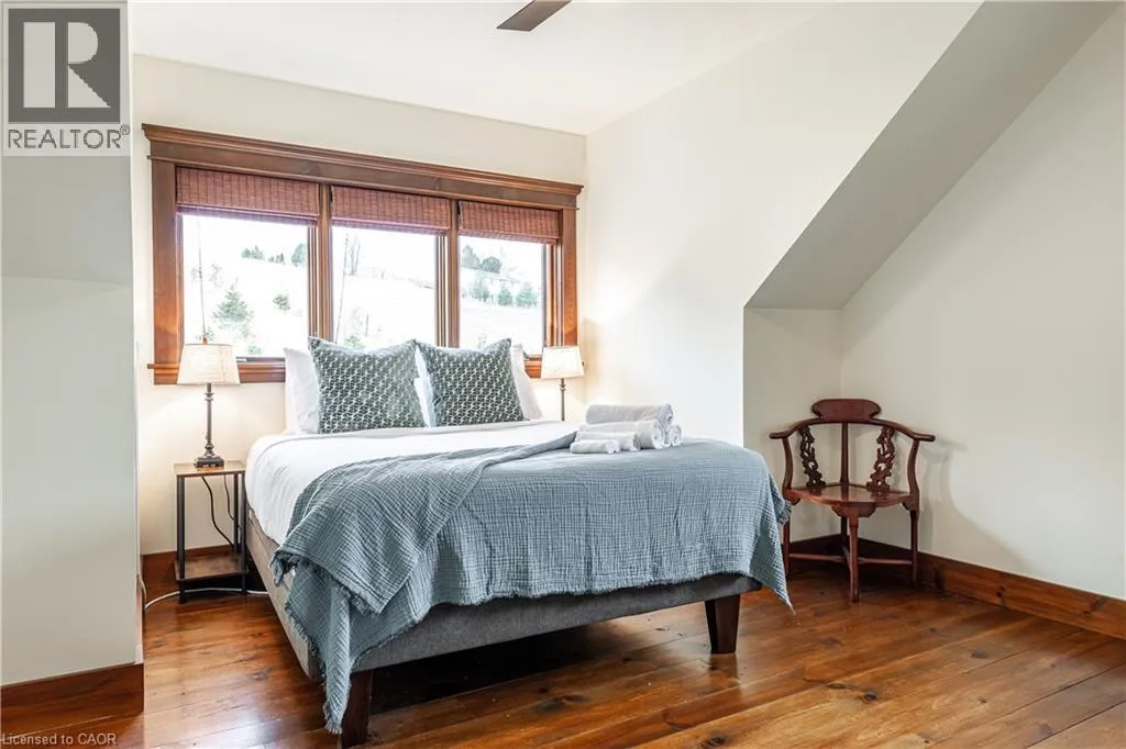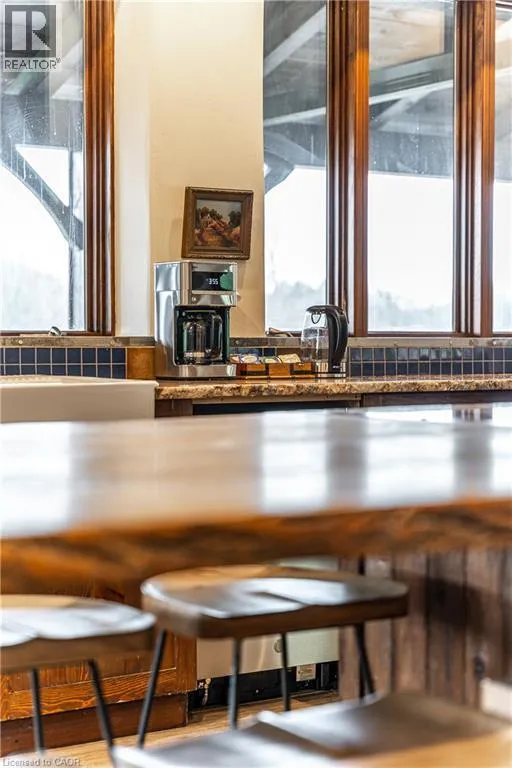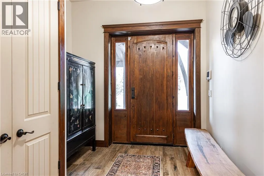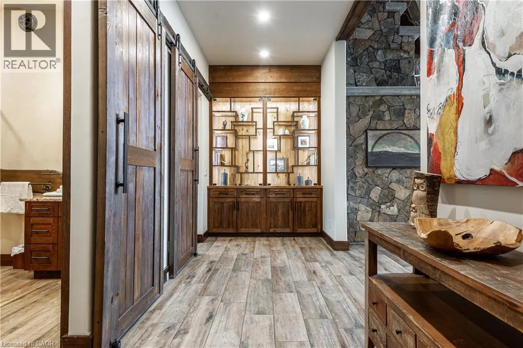 between Guelph and Hamilton, just off Hwy 6 Short-term or long-term rental - available daily, weekly, monthly. Welcome to Elmwood Estate, an upscale 8-bedroom timber-frame sanctuary where rustic craftsmanship meets refined modern design. Set between Guelph and Hamilton and surrounded by quiet forest, this one-of-a-kind lodge is the perfect backdrop for unforgettable experiences of every kind. Inside, soaring cathedral ceilings, rich wood beams, and a dramatic 20-ft stone hearth anchor the great room â a breathtaking space for groups to gather, celebrate, and reconnect. Expansive windows frame calming woodland views, filling the home with natural light and inviting nature into every corner. The chefâs kitchen offers professional-grade appliances, generous prep space, and room for multiple cooks, ideal for shared meals, retreats, and special occasions. Elmwood is designed for relaxation, creativity, and wellness. Guests can enjoy a private sauna, fully outfitted gym, and a whimsical indoor treehouse loft perfect for reading, meditation, or quiet reflection. With 8 inviting bedrooms, the property provides flexible accommodations for families, corporate teams, and group getaways. Outdoors, forest trails, wide-open skies, and peaceful surroundings create a landscape that feels worlds away while remaining easily accessible. Just minutes from Dundas Peak, Elmwood offers convenience without sacrificing serenity. From wellness retreats to small weddings, bachelor getaways, corporate sessions, Christmas parties, and countless celebrations, Elmwood Estate offers a truly special setting that inspires, rejuvenates, and brings people together. Available for short term rentals - daily, weekly, monthly. Click on the sales brochure for booking/showing instructions. (id:27476)