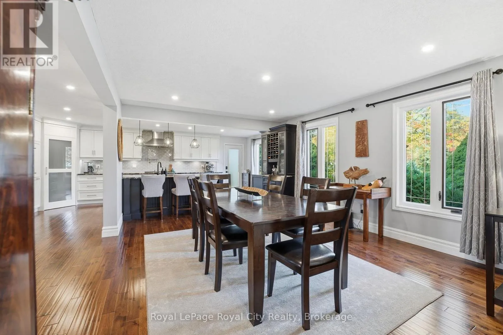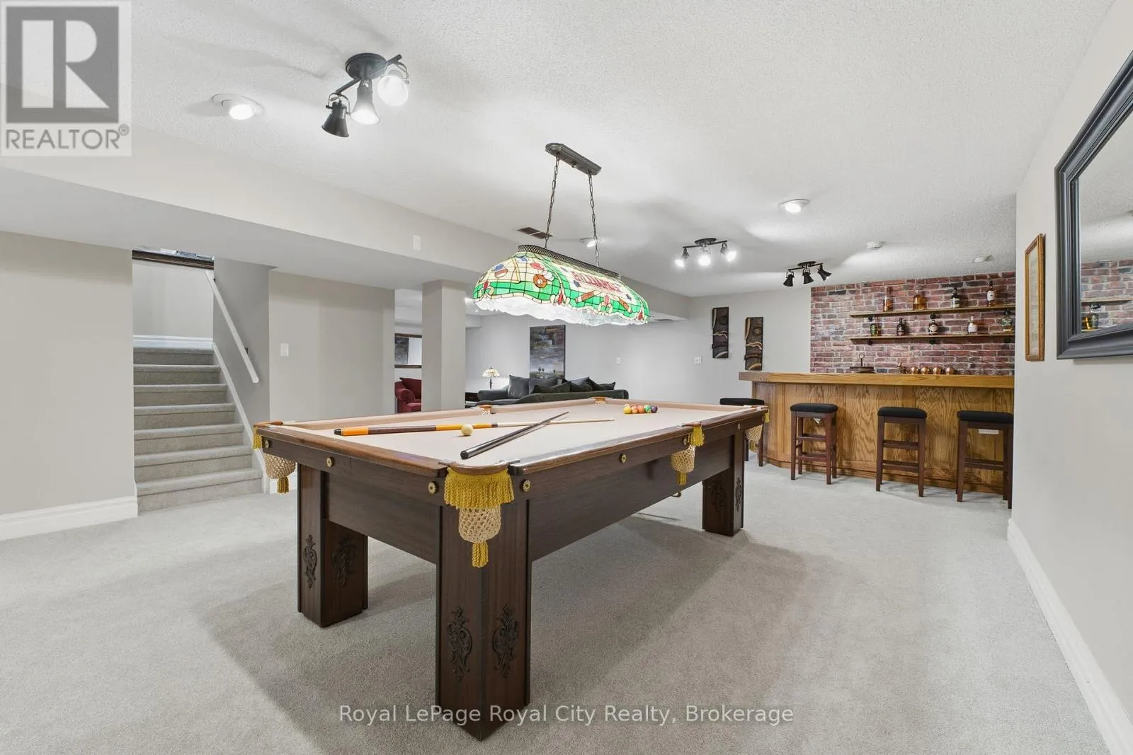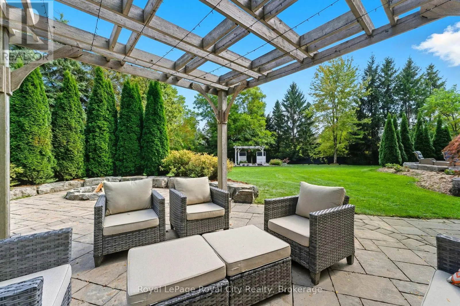 Cross Streets: Brock Road and Bridle Path. ** Directions: South of Maltby Road, North of WR34. Welcome to a rare offering in one of the area's most coveted neighbourhoods.Set on a mature, tree-lined lot with towering maples and a circular drive, this exceptional 1.5-storey home blends timeless character with refined modern living. The reclaimed brick exterior hints at the craftsmanship within, while the private, resort-style backyard is truly one of the finest in the community.Step outside and prepare to be impressed. A saltwater pool anchors the outdoor oasis, complete with a charming pool cabana featuring a gas fireplace and multiple seating areas that invite relaxation and entertaining. A two-level composite deck, newly covered by a stunning pavilion boasts a hot tub overlooking a second stone patio with firepit and gazebo. Lush perennial gardens surround the entire yard, ensuring colour and beauty year round.Inside, the home is equally impressive. The main floor is designed for both connection and comfort, open concept ,yet thoughtfully defined. Large principal rooms, framed by generous windows, fill the space with natural light. The living room features a stone fireplace handcrafted by a local mason, paired with a rich timber mantle that becomes the heart of the home.The grand main-floor primary suite is a sanctuary of its own, offering an oversized bedroom, a dedicated dressing room, and serene views of the grounds. The versatile kitchen is ideal for both everyday living and entertaining, complete with gas cooktop, double ovens, granite island, walk-in pantry, and a beverage station. Upstairs, two additional bedrooms share a full bath.The fully finished walk-up basement adds exceptional functionality with a billiards area, bar for entertaining, TV/media space, games room, and three additional bedrooms-perfect for extended family or guests.A rare opportunity to own a home that combines craftsmanship, luxury, and resort-style outdoor living all minutes to the amenities and conveniences of the South End of Guelph and quick access for commuters. Impressive. (id:27476)