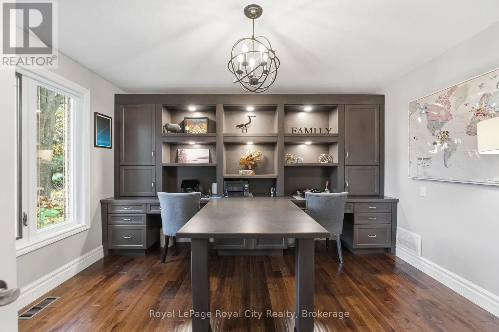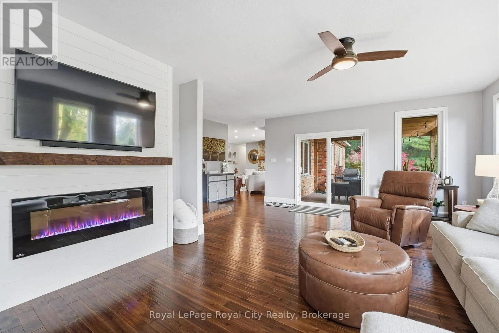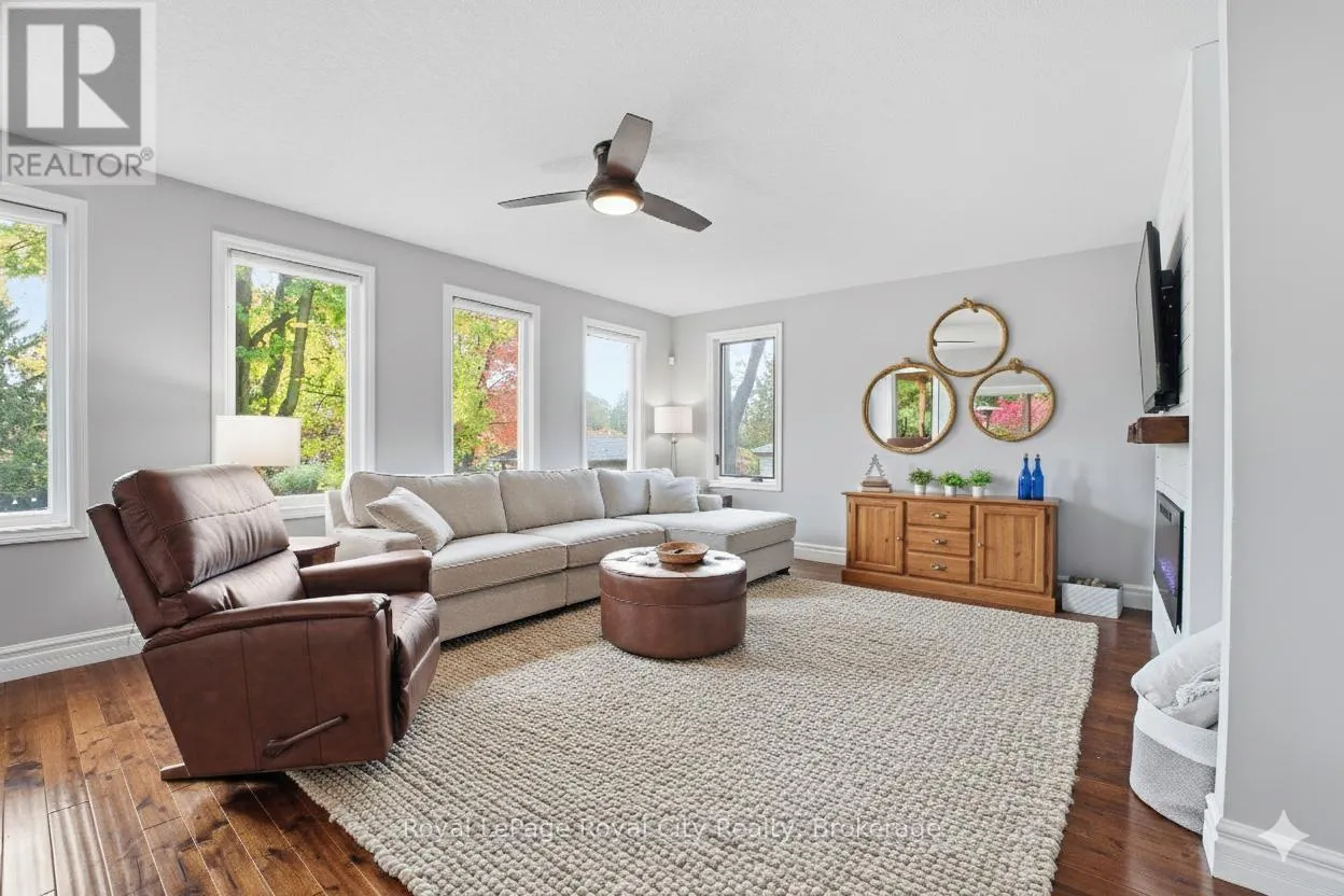 Cross Streets: Brock Road and Bridle Path. ** Directions: South of Maltby Road, North of WR34. Welcome to a rare offering in one of the area's most coveted neighbourhoods.Set on a mature, tree-lined lot with towering maples and a circular drive, this exceptional 1.5-storey home blends timeless character with refined modern living. The reclaimed brick exterior hints at the craftsmanship within, while the private, resort-style backyard is truly one of the finest in the community.Step outside and prepare to be impressed. A saltwater pool anchors the outdoor oasis, complete with a charming pool cabana featuring a gas fireplace and multiple seating areas that invite relaxation and entertaining. A two-level composite deck, newly covered by a stunning pavilion boasts a hot tub overlooking a second stone patio with firepit and gazebo. Lush perennial gardens surround the entire yard, ensuring colour and beauty year round.Inside, the home is equally impressive. The main floor is designed for both connection and comfort, open concept ,yet thoughtfully defined. Large principal rooms, framed by generous windows, fill the space with natural light. The living room features a stone fireplace handcrafted by a local mason, paired with a rich timber mantle that becomes the heart of the home.The grand main-floor primary suite is a sanctuary of its own, offering an oversized bedroom, a dedicated dressing room, and serene views of the grounds. The versatile kitchen is ideal for both everyday living and entertaining, complete with gas cooktop, double ovens, granite island, walk-in pantry, and a beverage station. Upstairs, two additional bedrooms share a full bath.The fully finished walk-up basement adds exceptional functionality with a billiards area, bar for entertaining, TV/media space, games room, and three additional bedrooms-perfect for extended family or guests.A rare opportunity to own a home that combines craftsmanship, luxury, and resort-style outdoor living all minutes to the amenities and conveniences of the South End of Guelph and quick access for commuters. Impressive. (id:27476)