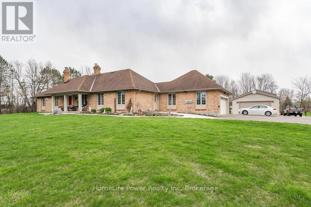 Wellington Road 26/Victoria Road S Discover the epitome of country living on 74 pristine acres, boasting an exquisite home and ample income potential. Crafted from enduring brick with 4438 sqft of living space this residence features 5 beds, 5 bath, a spacious eat-in kitchen, inviting living and dining areas, and a sunroom graced by a wood-burning fireplace. The finished basement offers flexibility w/ an in-law suite. Nestled on 6 acres of prime land, total 26 acres suitable for farming while the rest is adorned with picturesque foliage and trails. Enjoy a host of modern conveniences including separate entrances, central air, skylights, a state-of-the-art water treatment system, and an automated entry gate. A newly constructed heated and air-conditioned 23 X 63 hobby shop, equipped w/ a separate hydro meter, offers endless possibilities. Additionally, a 30X80 barn, divided into three storage units complete with hydro, heat, and an air compressor, along with an enclosed asphalt storage yard, formerly a tennis court, provide ample storage options. Located mere minutes from the thriving commercial and industrial hub of Puslinch & HWY 401, this property offers the perfect blend of tranquility and convenience. (id:27476)