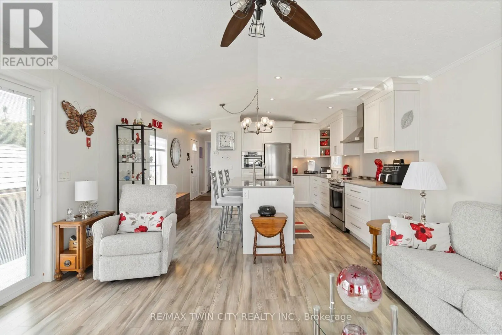Cross Streets: Water St/ Olympia Ave. ** Directions: Wellington Rd #34 to Mini Lakes (gate 3 entrance). Take Bullfrog drive and turn left onto Elm Street. Welcome to 27 Elm Street, a charming gem nestled in the highly desirable condominium community of Mini Lakes. This thoughtfully upgraded home offers the perfect blend of comfort, style, and low-maintenance living-an ideal retreat for empty nesters, snowbirds, or those looking to embrace a slower, more relaxed lifestyle. Boasting approximately $70,000 in tasteful updates over the past seven years, including a show-stopping kitchen that looks like it was pulled from the pages of a magazine, this home truly impresses at every turn. Set on a generous lot the property also features two sheds, parking for two vehicles, and all appliances included-just move in and start enjoying. Inside, the single-bedroom layout is cleverly designed to maximize space without sacrificing comfort or charm. From its tranquil setting to its unbeatable value, this home checks all the boxes. Located just 5 minutes from Guelph's bustling south end and a quick 5-minute drive to the 401 at Hwy 6, Mini Lakes offers unmatched convenience in a peaceful, gated community. Residents here enjoy a unique lifestyle centered around nature, connection, and recreation-with access to spring-fed lakes, scenic canals, a heated pool, community gardens, walking trails, and a vibrant social calendar filled with bocce, darts, card nights, and more. Whether you're looking to downsize, retire, or simply enjoy year-round living in a friendly, welcoming environment, 27 Elm Street is a rare opportunity you won't want to miss. (id:27476)