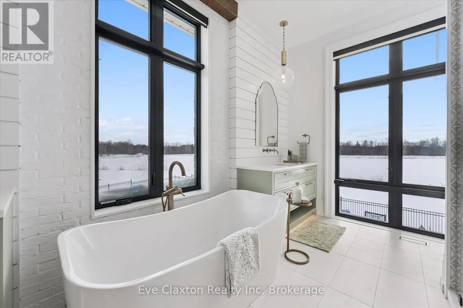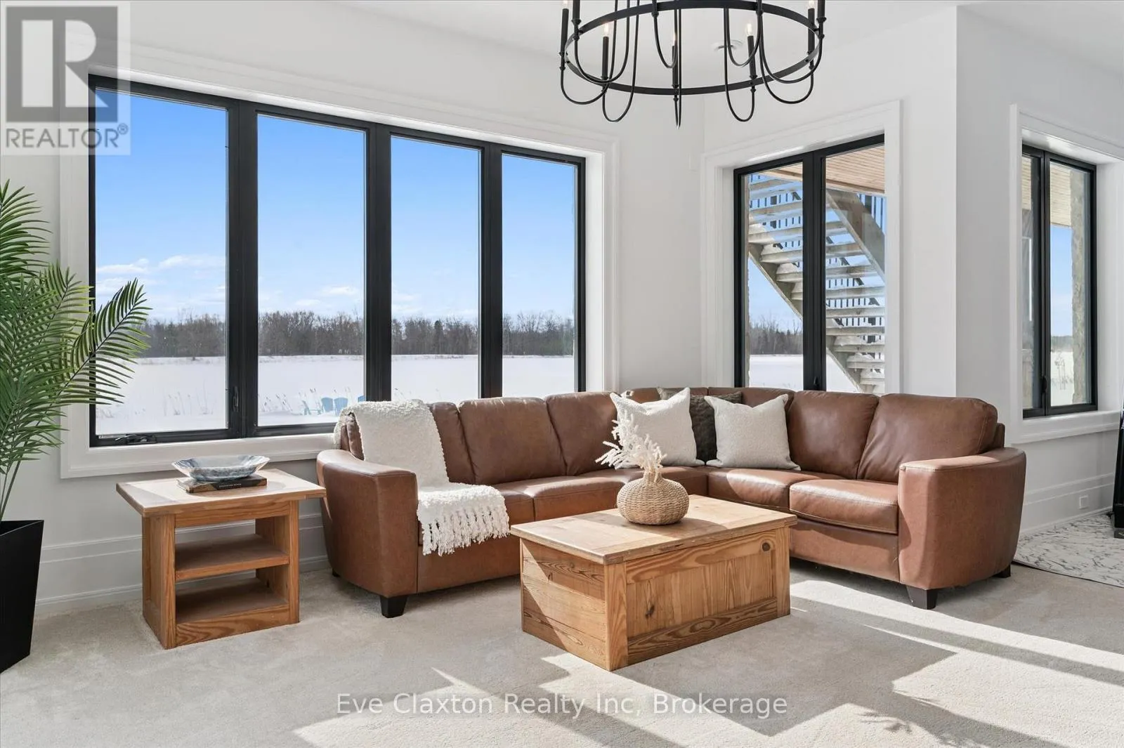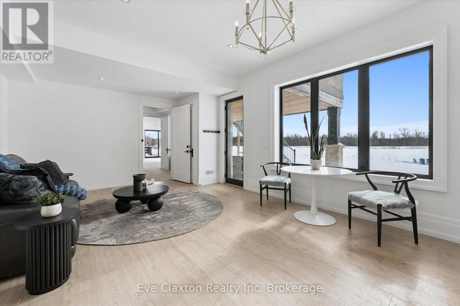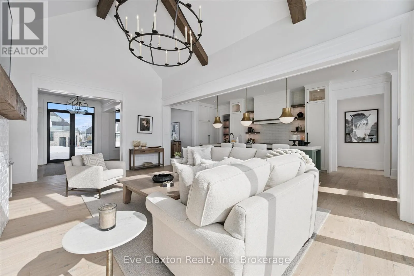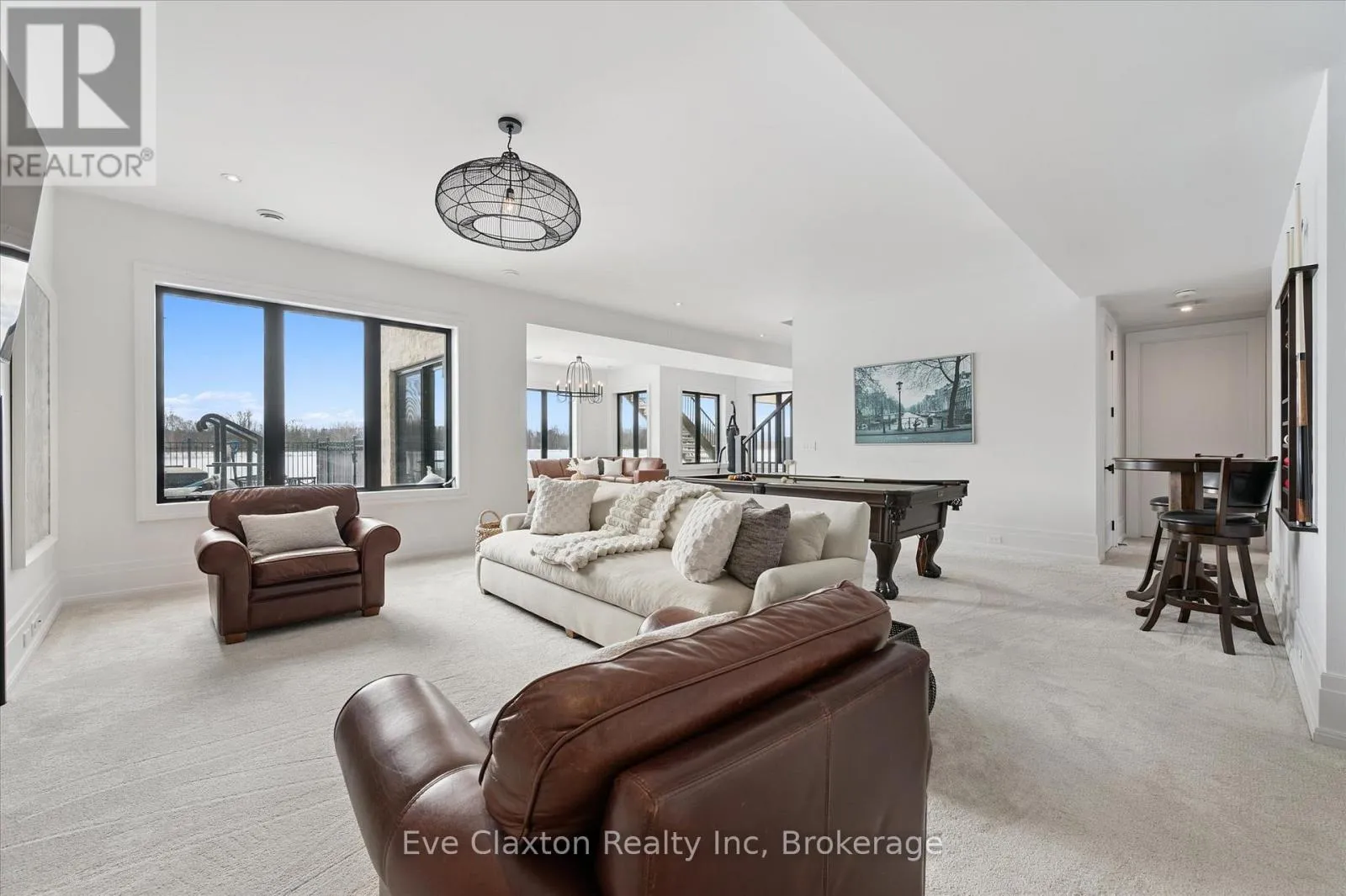 Cross Streets: Wellington 34 / Heritage Lake Dr. ** Directions: Exit 295 off 401, Right on Wellington 34 , Right into Heritage Lake Estates. Experience true waterfront living-without leaving the city. Nestled in the exclusive gated community of Heritage Lake Estates, this stunning modern farmhouse bungalow offers a rare blend of privacy, space, and lakeside serenity.Wake up to peaceful water views, enjoy sun-filled open-concept living, and entertain effortlessly beneath soaring cathedral ceilings accented by warm wood beams. Every detail has been thoughtfully curated to create a home that feels both elegant and inviting, with high-end finishes, designer lighting, premium appliances, and luxurious heated flooring adding comfort year-round.With over 5,670 sq. ft. of living space, there's room for every chapter of life-hosting family gatherings in the formal dining room, working from home in two private offices, or unwinding in the expansive walk-out lower level featuring a generous recreation area and games space. The separate one-bedroom suite offers ideal accommodations for extended family, guests, or income potential-each space framed by beautiful lake views.Step outside to your private outdoor retreat, set on an oversized -acre pie-shaped lot with nearly 1 acre of exclusive use. Spend summer days by the inground pool, relax on covered patios or fishing off the dock and enjoy a fully landscaped property designed for effortless outdoor living. An oversized three-car garage and ample driveway parking make hosting friends and family a breeze.Homes like this rarely come to market-where refined luxury meets relaxed lakeside living. This is more than a home; it's a lifestyle (id:27476)