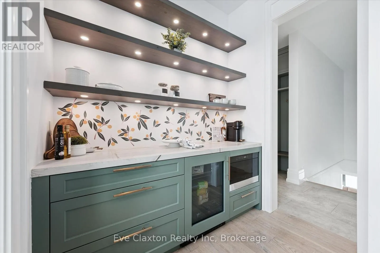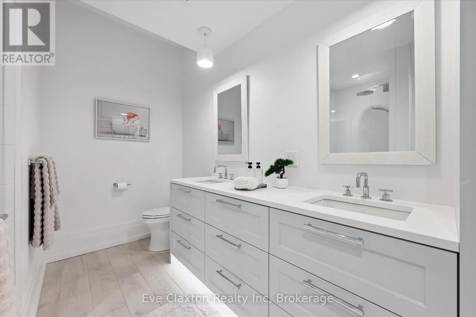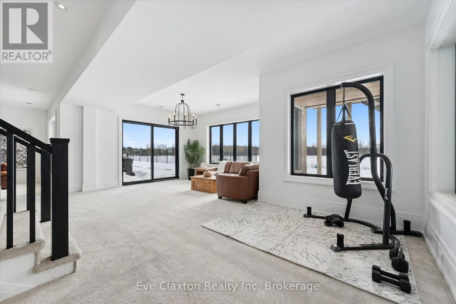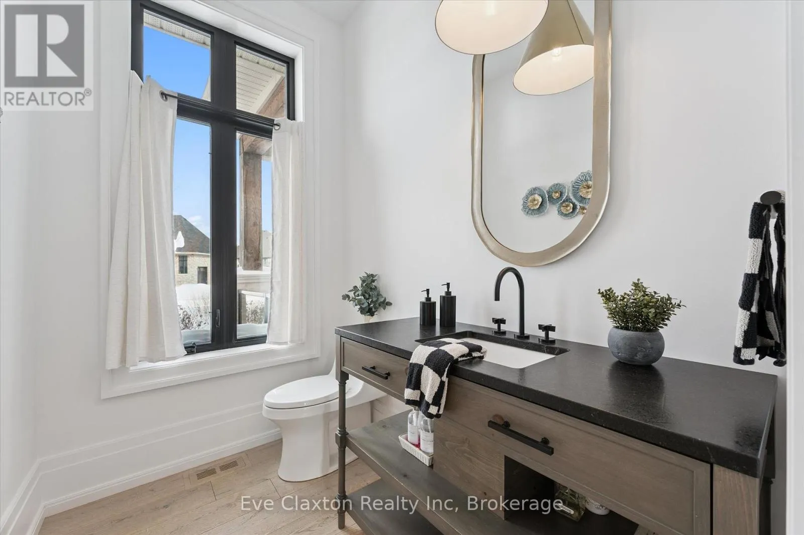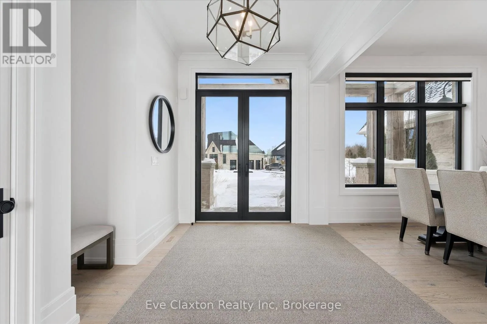 Cross Streets: Wellington 34 / Heritage Lake Dr. ** Directions: Exit 295 off 401, Right on Wellington 34 , Right into Heritage Lake Estates. Experience true waterfront living-without leaving the city. Nestled in the exclusive gated community of Heritage Lake Estates, this stunning modern farmhouse bungalow offers a rare blend of privacy, space, and lakeside serenity.Wake up to peaceful water views, enjoy sun-filled open-concept living, and entertain effortlessly beneath soaring cathedral ceilings accented by warm wood beams. Every detail has been thoughtfully curated to create a home that feels both elegant and inviting, with high-end finishes, designer lighting, premium appliances, and luxurious heated flooring adding comfort year-round.With over 5,670 sq. ft. of living space, there's room for every chapter of life-hosting family gatherings in the formal dining room, working from home in two private offices, or unwinding in the expansive walk-out lower level featuring a generous recreation area and games space. The separate one-bedroom suite offers ideal accommodations for extended family, guests, or income potential-each space framed by beautiful lake views.Step outside to your private outdoor retreat, set on an oversized -acre pie-shaped lot with nearly 1 acre of exclusive use. Spend summer days by the inground pool, relax on covered patios or fishing off the dock and enjoy a fully landscaped property designed for effortless outdoor living. An oversized three-car garage and ample driveway parking make hosting friends and family a breeze.Homes like this rarely come to market-where refined luxury meets relaxed lakeside living. This is more than a home; it's a lifestyle (id:27476)