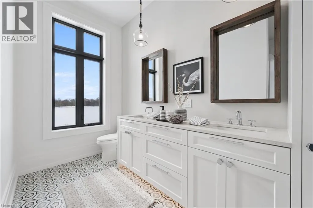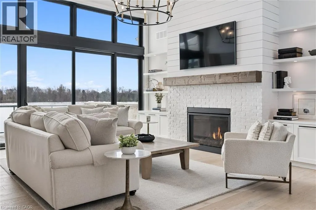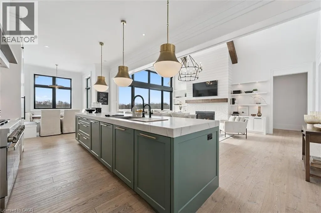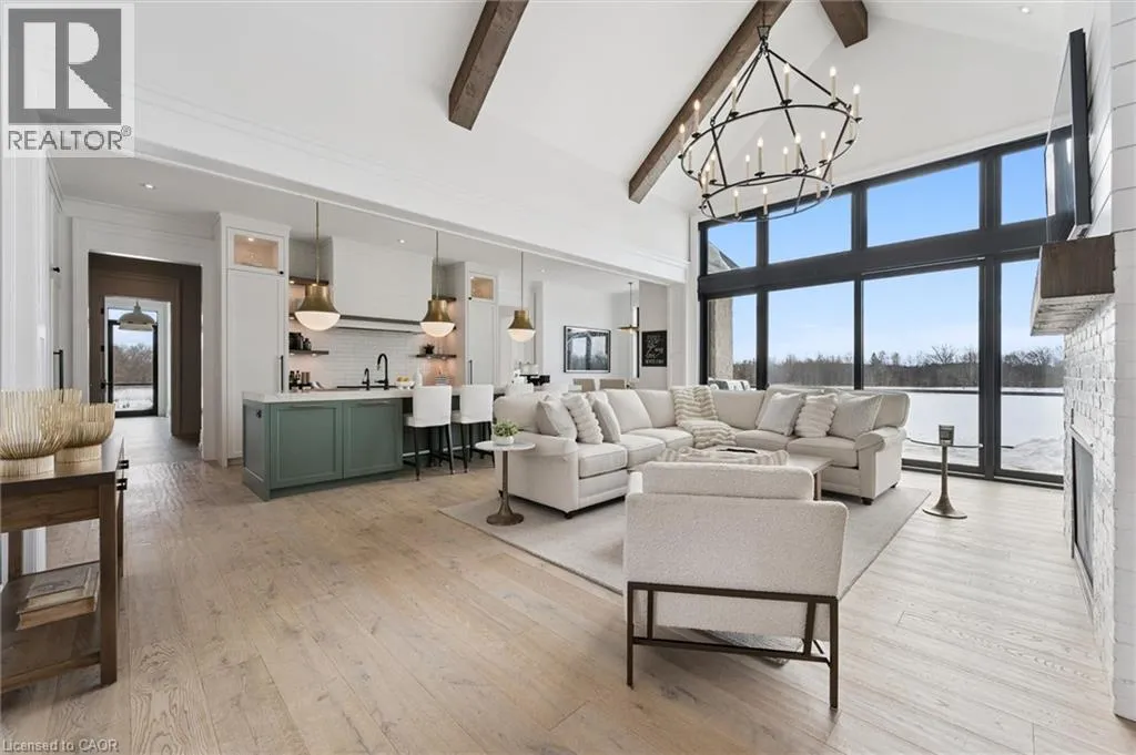 Exit 295 off 401, Right on Wellington 34 , Right into Heritage Lake Estates Experience true waterfront livingâwithout leaving the city. Nestled in the exclusive gated community of Heritage Lake Estates, this stunning modern farmhouse bungalow offers a rare blend of privacy, space, and lakeside serenity. Wake up to peaceful water views, enjoy sun-filled open-concept living, and entertain effortlessly beneath soaring cathedral ceilings accented by warm wood beams. Every detail has been thoughtfully curated to create a home that feels both elegant and inviting, with high-end finishes, designer lighting, premium appliances, and luxurious heated flooring adding comfort year-round. With over 5,670 sq. ft. of living space, thereâs room for every chapter of lifeâhosting family gatherings in the formal dining room, working from home in two private offices, or unwinding in the expansive walk-out lower level featuring a generous recreation area and games space. The separate one-bedroom suite offers ideal accommodations for extended family, guests, or income potentialâeach space framed by beautiful lake views. Step outside to your private outdoor retreat, set on an oversized ½-acre pie-shaped lot with nearly 1 acre of exclusive use. Spend summer days by the inground pool, relax on covered patios or fishing off the dock and enjoy a fully landscaped property designed for effortless outdoor living. An oversized three-car garage and ample driveway parking make hosting friends and family a breeze. Homes like this rarely come to marketâwhere refined luxury meets relaxed lakeside living. This is more than a home; itâs a lifestyle. (id:27476)