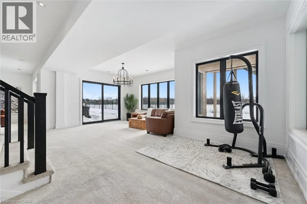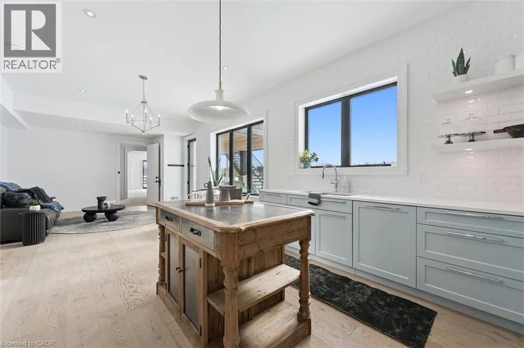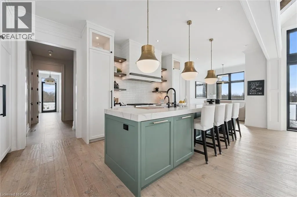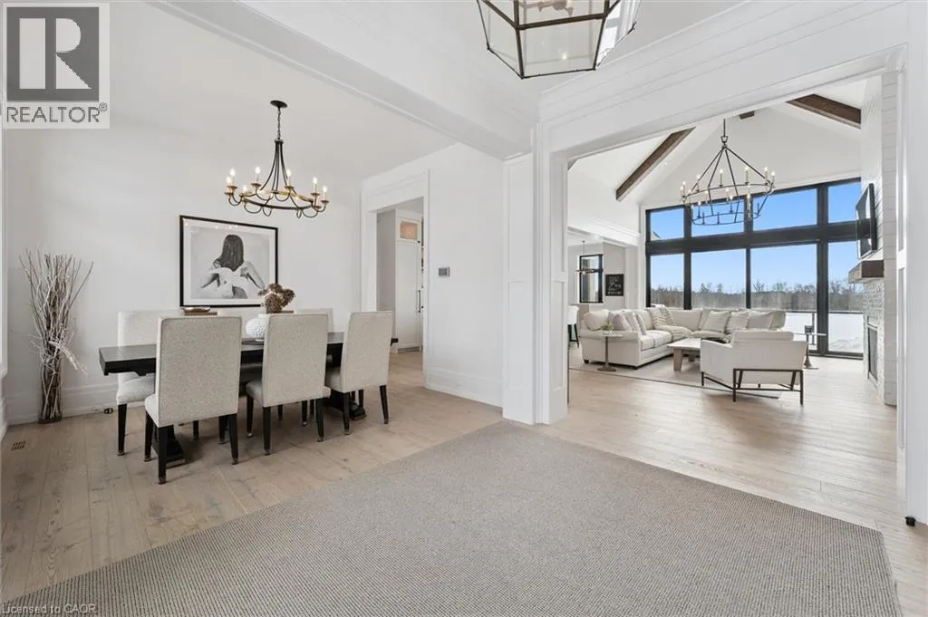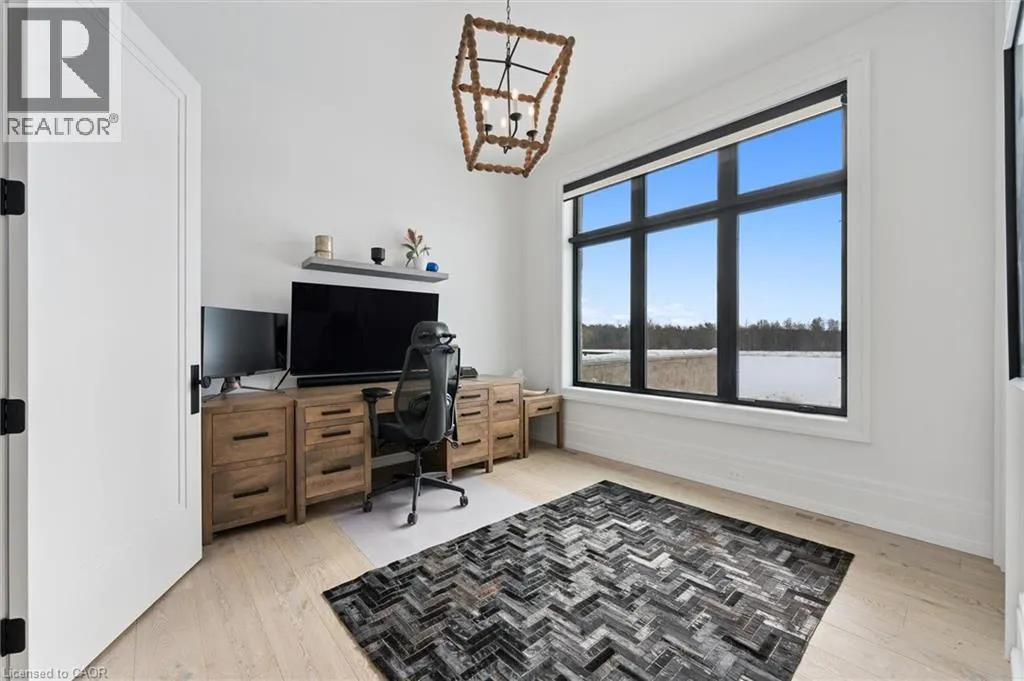 Exit 295 off 401, Right on Wellington 34 , Right into Heritage Lake Estates Experience true waterfront livingâwithout leaving the city. Nestled in the exclusive gated community of Heritage Lake Estates, this stunning modern farmhouse bungalow offers a rare blend of privacy, space, and lakeside serenity. Wake up to peaceful water views, enjoy sun-filled open-concept living, and entertain effortlessly beneath soaring cathedral ceilings accented by warm wood beams. Every detail has been thoughtfully curated to create a home that feels both elegant and inviting, with high-end finishes, designer lighting, premium appliances, and luxurious heated flooring adding comfort year-round. With over 5,670 sq. ft. of living space, thereâs room for every chapter of lifeâhosting family gatherings in the formal dining room, working from home in two private offices, or unwinding in the expansive walk-out lower level featuring a generous recreation area and games space. The separate one-bedroom suite offers ideal accommodations for extended family, guests, or income potentialâeach space framed by beautiful lake views. Step outside to your private outdoor retreat, set on an oversized ½-acre pie-shaped lot with nearly 1 acre of exclusive use. Spend summer days by the inground pool, relax on covered patios or fishing off the dock and enjoy a fully landscaped property designed for effortless outdoor living. An oversized three-car garage and ample driveway parking make hosting friends and family a breeze. Homes like this rarely come to marketâwhere refined luxury meets relaxed lakeside living. This is more than a home; itâs a lifestyle. (id:27476)