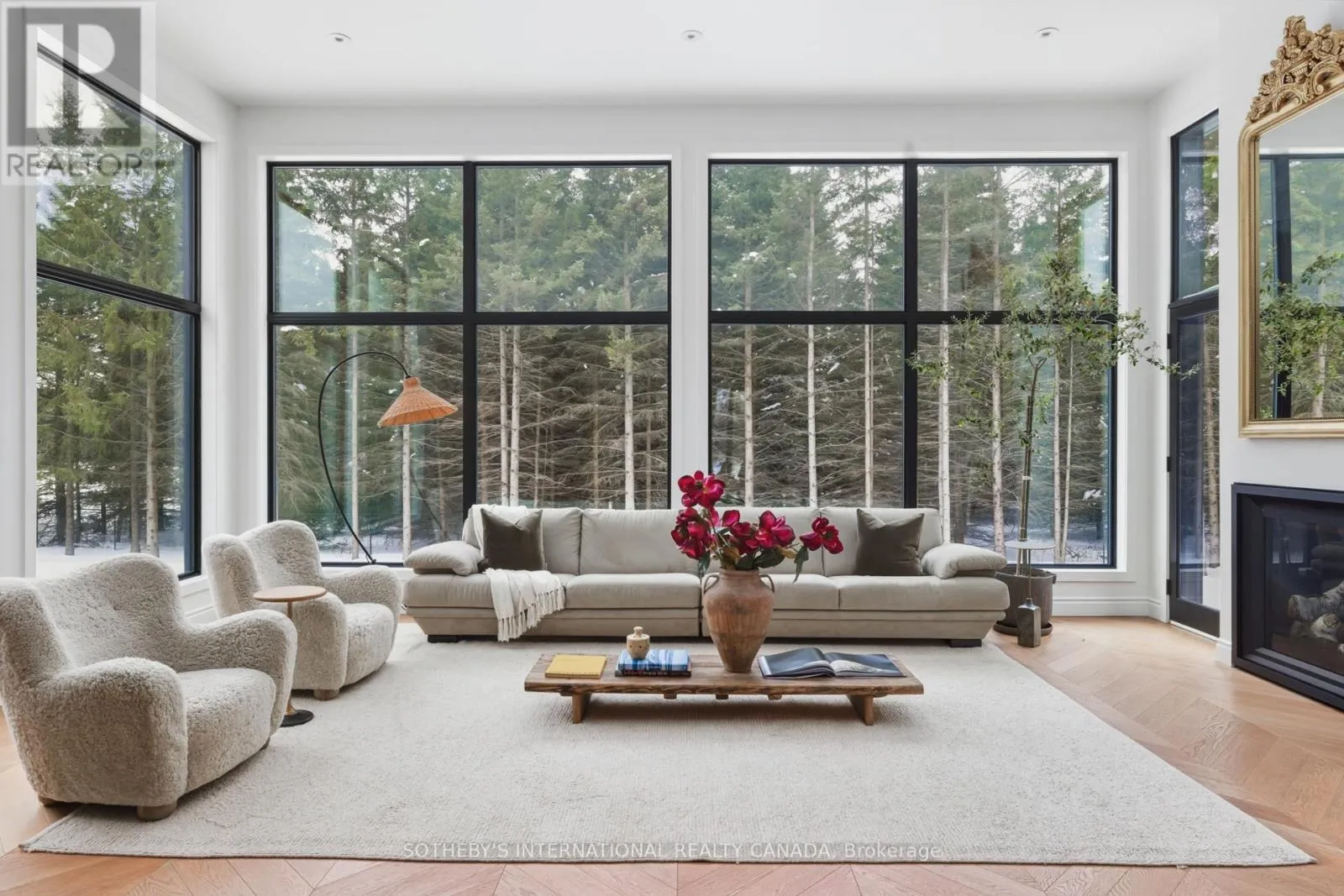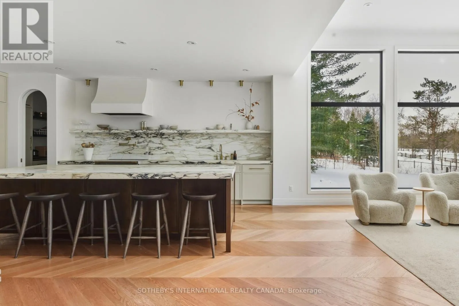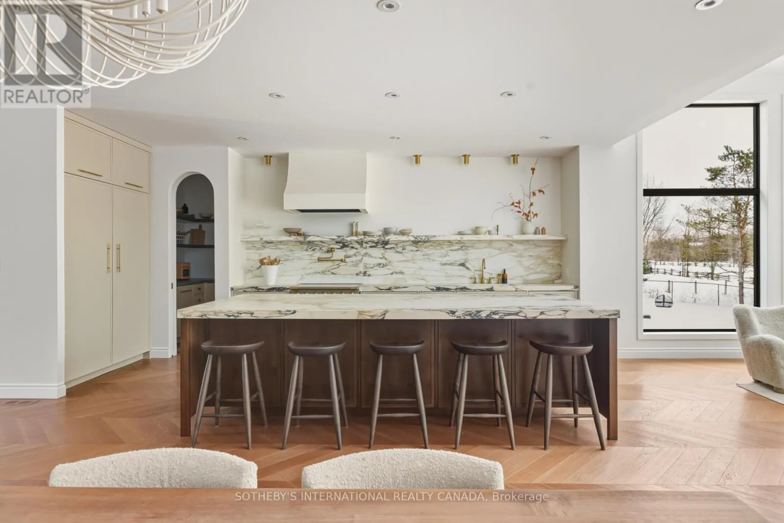 Hume & 25 Sideroad Custom built and masterfully designed, welcome to 4640 Nassagaweya-Puslinch Townline, a beautiful bungalow offering over 3,200 sq. ft. of elevated living space, ideally positioned to provide the tranquility of country living while remaining just minutes from Guelph & less than one hour from Toronto. Hardwood flooring laid in a striking chevron pattern sets the tone, while a dramatic 12-foot ceiling feature in combination with floor-to-ceiling windows at the rear of the home fills the space with natural light. Designer lighting, custom archways, & extensive millwork further establish a strong architectural presence throughout. At the heart of the home, the kitchen is where art & beauty meet function. Graced with a La Cornue induction range & complimented by marble surfaces and brass fixtures, the kitchen & well appointed pantry offer endless enjoyment for entertaining & cooking, along with ample storage. The impressive 12' x 6' island anchors the room, while Integrated Dacor 30" column side by side fridge & freezer maintains the kitchen's seamless aesthetic, while a secondary dishwasher tucked within the walk-in pantry enhances efficiency. A custom bar & coffee area featuring an integrated bar fridge & open shelving adds a layer of sophistication, thoughtfully designed for effortless entertaining. The primary suite delivers a true retreat, highlighted by a Jøtul fireplace & a spa-inspired ensuite featuring a freestanding tub, glass steam shower w/ dual rain heads, Toto Washlet, & porcelain finishes. The 2nd bedroom offers flexible space as an office or playroom, while the 3rd and 4th bedrooms are connected by a beautiful ensuite washroom with a separate shower room, and featuring closets w/built in storage. Main floor laundry with a dog wash station offers convenience off the garage & mudroom, while a separate entrance to the basement via the garage ideally positions this home for future development to suit evolving needs. Welcome home! (id:27476)
