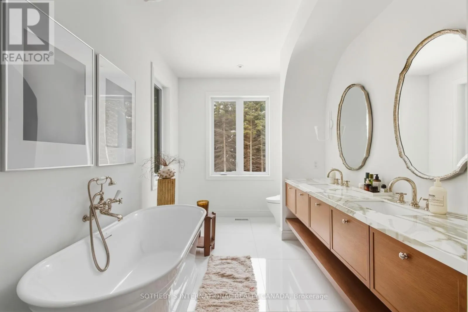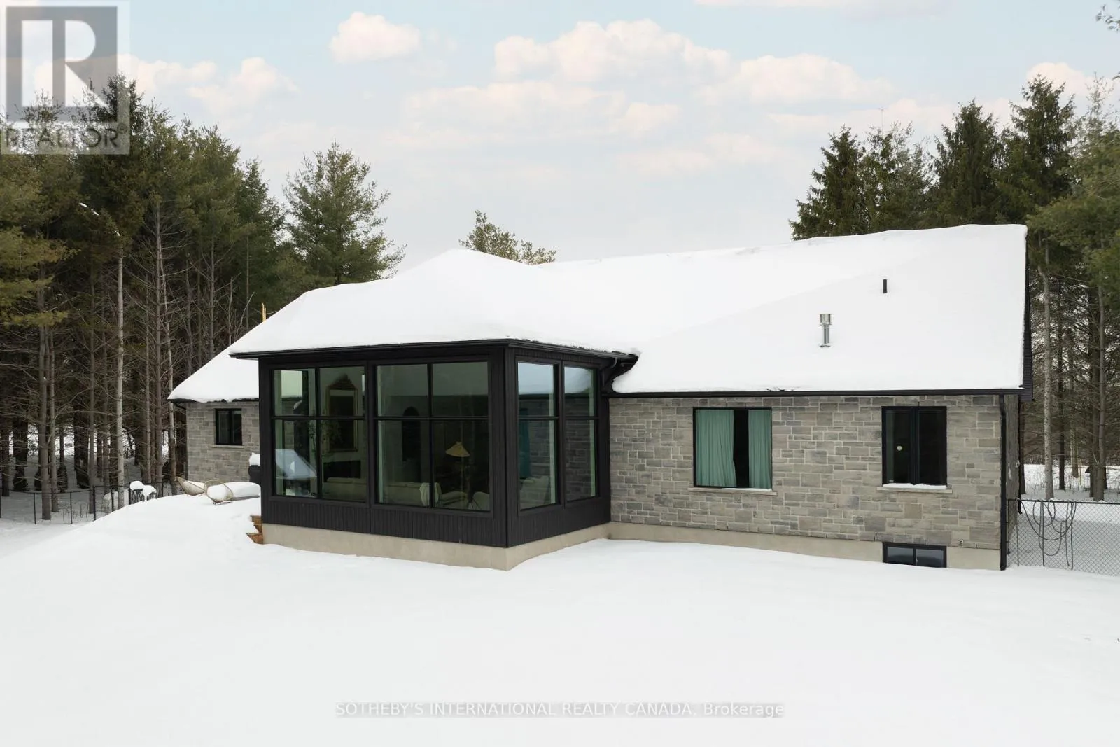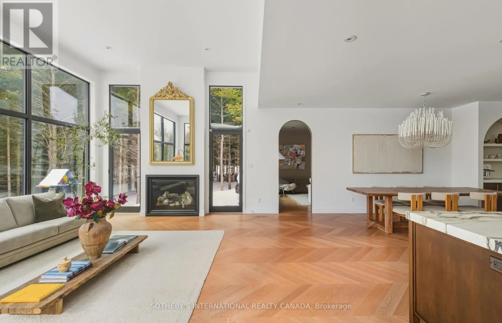 Hume & 25 Sideroad Custom built and masterfully designed, welcome to 4640 Nassagaweya-Puslinch Townline, a beautiful bungalow offering over 3,200 sq. ft. of elevated living space, ideally positioned to provide the tranquility of country living while remaining just minutes from Guelph & less than one hour from Toronto. Hardwood flooring laid in a striking chevron pattern sets the tone, while a dramatic 12-foot ceiling feature in combination with floor-to-ceiling windows at the rear of the home fills the space with natural light. Designer lighting, custom archways, & extensive millwork further establish a strong architectural presence throughout. At the heart of the home, the kitchen is where art & beauty meet function. Graced with a La Cornue induction range & complimented by marble surfaces and brass fixtures, the kitchen & well appointed pantry offer endless enjoyment for entertaining & cooking, along with ample storage. The impressive 12' x 6' island anchors the room, while Integrated Dacor 30" column side by side fridge & freezer maintains the kitchen's seamless aesthetic, while a secondary dishwasher tucked within the walk-in pantry enhances efficiency. A custom bar & coffee area featuring an integrated bar fridge & open shelving adds a layer of sophistication, thoughtfully designed for effortless entertaining. The primary suite delivers a true retreat, highlighted by a Jøtul fireplace & a spa-inspired ensuite featuring a freestanding tub, glass steam shower w/ dual rain heads, Toto Washlet, & porcelain finishes. The 2nd bedroom offers flexible space as an office or playroom, while the 3rd and 4th bedrooms are connected by a beautiful ensuite washroom with a separate shower room, and featuring closets w/built in storage. Main floor laundry with a dog wash station offers convenience off the garage & mudroom, while a separate entrance to the basement via the garage ideally positions this home for future development to suit evolving needs. Welcome home! (id:27476)