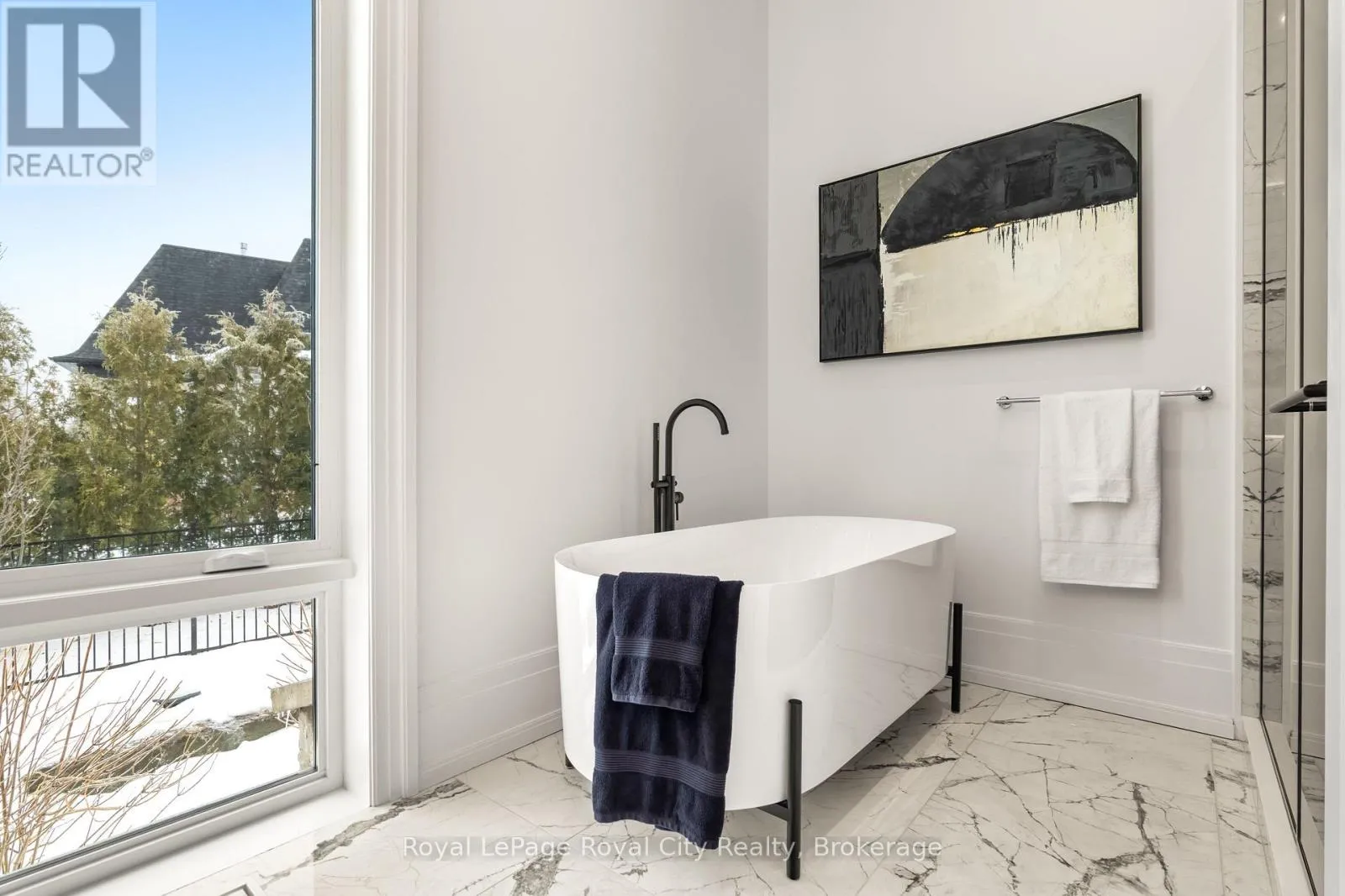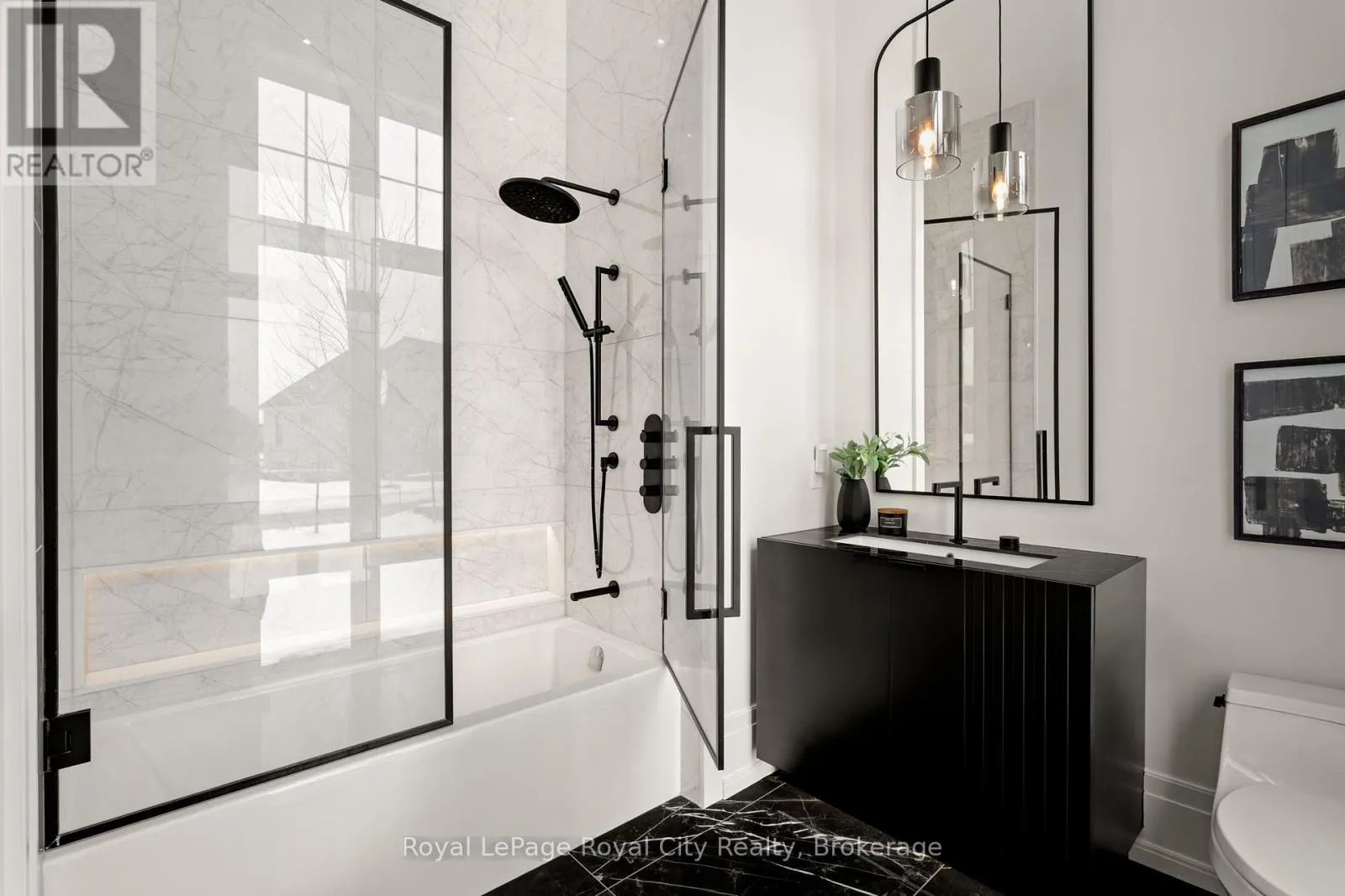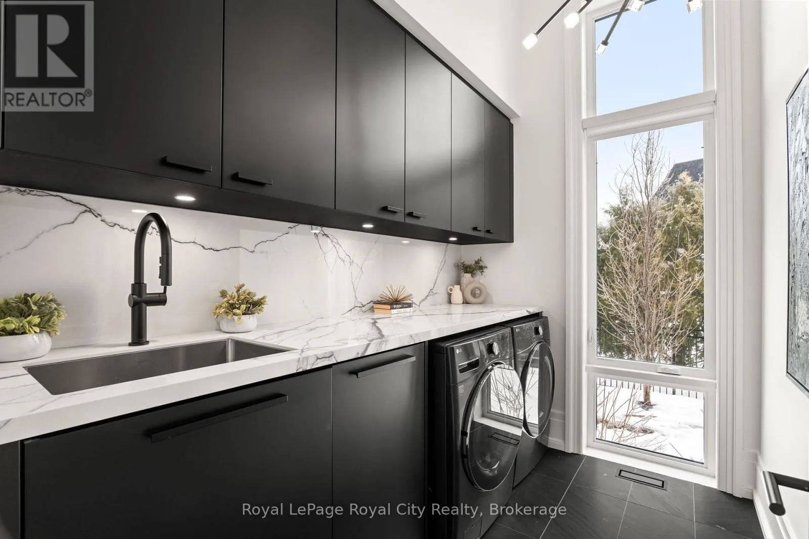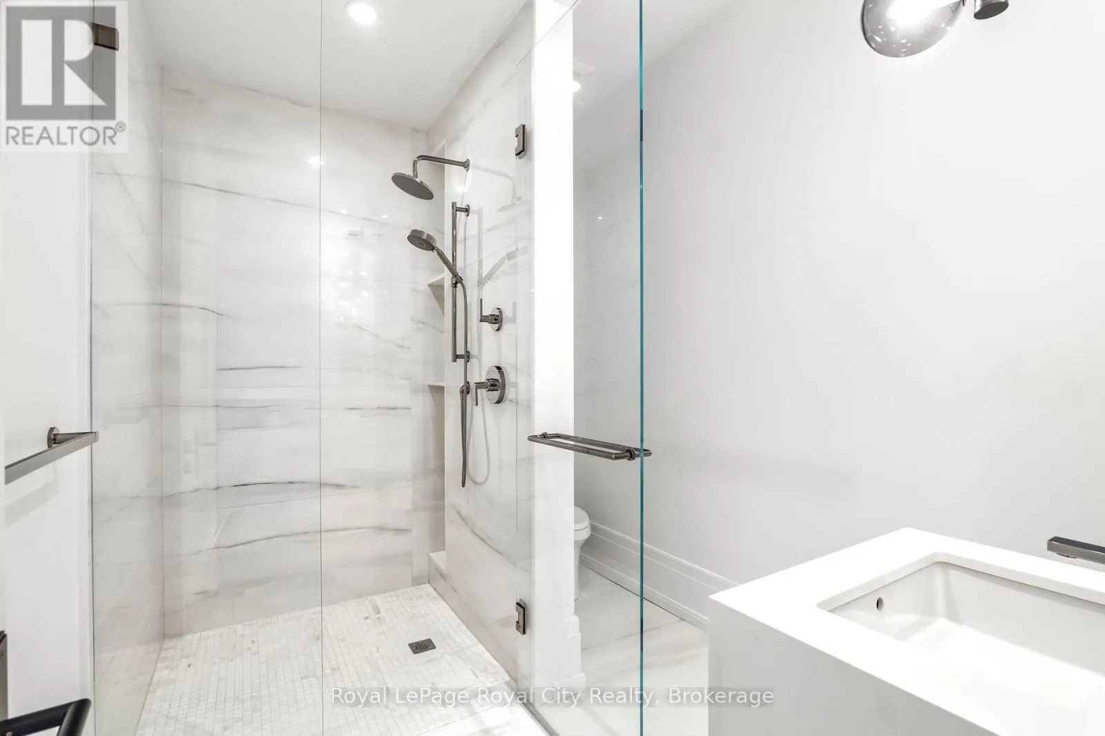 Cross Streets: Wellington Rd 34. ** Directions: Turn off Wellington Rd 34 into the Heritage Lake Estates, and follow Heritage Lake Drive into the community until you reach 153 Heritage Lake Drive. Welcome to life inside Heritage Lake Estates - a private, gated enclave in Puslinch known for its mature surroundings and beautiful custom homes. Set on a premium half-acre pie-shaped lot backing onto mature treelines, this custom stone bungalow offers privacy without compromise. With 2,252 square feet on the main floor and soaring 14-foot ceilings, the principal living space is defined by symmetry, scale, and natural light. A custom fireplace anchors the living room, while upgraded crown moulding and floor-to-ceiling windows create a refined yet inviting atmosphere.The kitchen and dining area are gallery-inspired in design, centred around a striking 21-foot stone waterfall island with seating for eight. Integrated cabinetry conceals premium WOLF appliances for a seamless aesthetic. Heated floors, custom lighting, and electric blinds reflect the many thoughtful upgrades woven throughout the home. Step outside to a covered back patio complete with built-in heaters and an impressive 350 sq ft gas fire feature, overlooking the fenced yard and tranquil forest backdrop - ideal for elevated, year-round outdoor living.The primary suite is a private retreat, offering 12ft ceilings, floor to ceiling windows, a generous walk-in closet and spa-inspired five-piece ensuite with Jet Spa shower system. Across from this, the well-appointed laundry room and additional main-floor bedroom, featuring with its own ensuite bath and walk-in closet, complete the main level. The fully finished lower level adds two bedrooms, each accompanied by an ensuite bathroom, a spacious recreation room with custom fireplace, dedicated office space, and a home gym - perfectly suited for growing families or multi-generational living. A functional mudroom with built-in cabinetry offers direct access to the heated three-car garage and walk-down access to the basement. 153 Heritage Lake Drive invites you to embrace a quiet kind of luxury, framed by the serenity of Puslinch Lake. (id:27476)