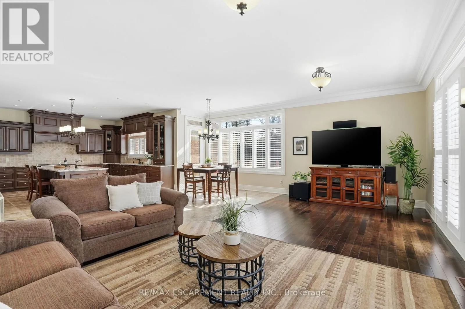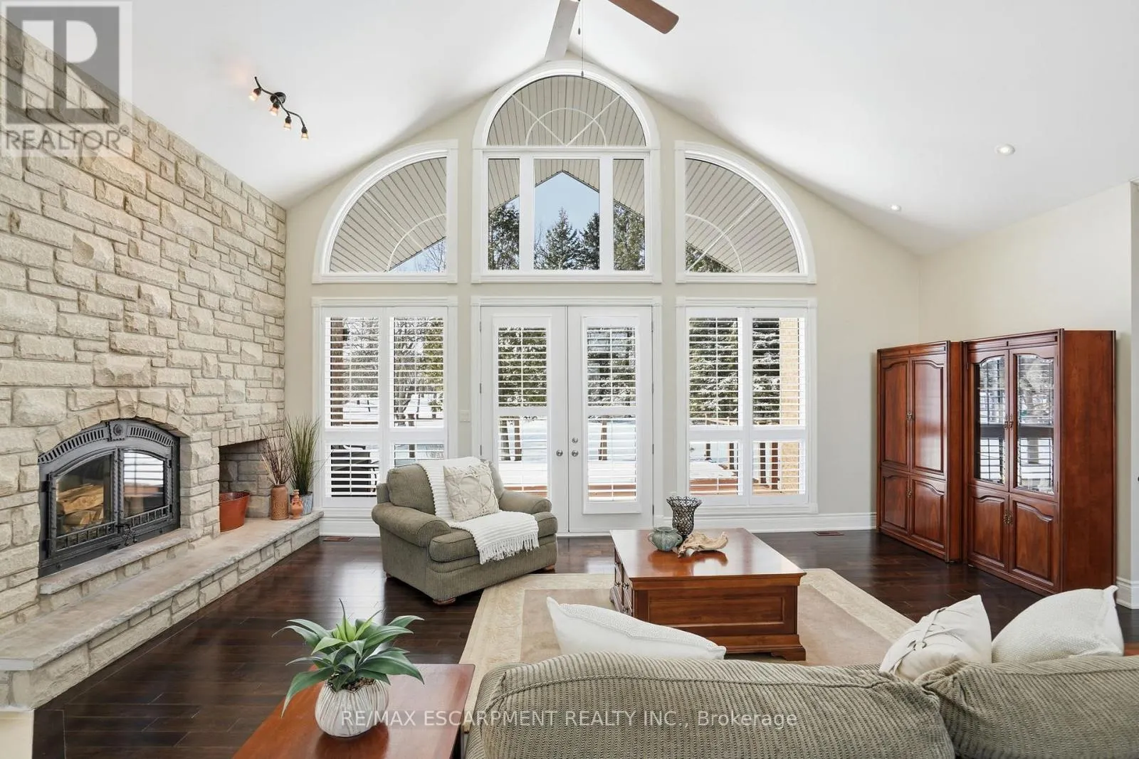 HWY 6TO MADDAUGH RD - BEFORE PUSLINCH TWOLINE Welcome home to this exquisite custom bungalow, ideally positioned on the serene Flamborough-Puslinch border. This residence offers more than 6,000 square feet of refined living space, highlighted by a spacious triple-car garage and set on over 4 acres of tranquil, private grounds featuring a charming pond. Secluded from the road for complete privacy, the property welcomes you through a gated entry and a picturesque, tree-lined driveway leading to the home. Upon entering, a grand great room captivates with dramatic 17-foot ceilings and a striking floor-to-ceiling Napoleon wood-burning fireplace that frames stunning panoramic views of the lush landscape beyond. The main level features three expansive bedrooms and three full bathrooms, complemented by luxurious 10-foot ceilings throughout for an airy, open atmosphere. At the heart of the home lies a spectacular kitchen, boasting premium cabinetry, a generous centre island, and elite appliances-including a professional-grade, commercial-sized Wolf gas range. The fully finished lower level is bathed in abundant natural light from generous egress windows, creating a bright and inviting space. It includes a spacious bedroom, a luxurious full bathroom with an oversized spa-like walk-in shower, a comfortable family room, a second full kitchen, and plentiful storage-ideal as a private teenager retreat, in-law suite, or multi-generational living area. Enjoy ultra-fast, reliable fibre optic WiFi throughout the home, supporting seamless streaming, remote work, and smart-home integration. With convenient proximity to major highways-including Highway 401 and Highway 403-this exceptional location blends rural tranquility with effortless commuting to Hamilton, Guelph, Toronto, and beyond. Combining privacy, generous proportions, superior craftsmanship, and prime highway access, this extraordinary property is a true rarity-don't miss the opportunity to make it yours! RSA. Luxury Certified. (id:27476)