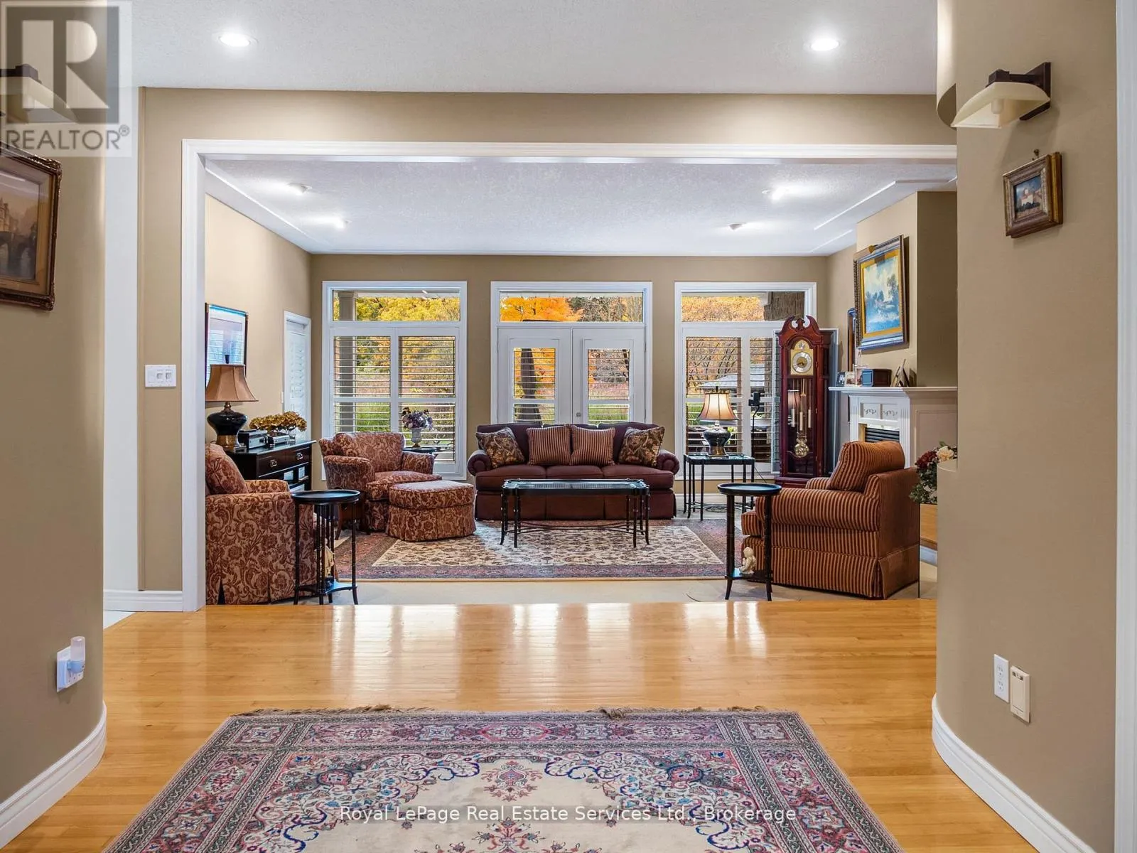 Cross Streets: HWY #6/FOX RUN. ** Directions: HWY #6 to FOX RUN. Welcome to 47 Fox Run Drive, an amazing over 4000 sq ft 'bungaloft' nestled on a treed and landscaped over 1 acre lot backing onto a protected forest area. An easy flowing design with 4 bedrooms and 5 Bathrooms A winding walkway leads to the custom double door entry to the spacious Foyer. To the left is the separate Dining Room and to the right the main floor Family Room. Straight ahead is the beautiful Living Room with tall cathedral ceiling and gas fireplace that overlooks the massive garden with salt water pool, screened in Gazebo and Cabana and covered deck. The gleaming white Kitchen features granite counters, centre island, eating area and walkout to covered deck. Tall ceilings continue into the Primary Bedroom which is located at the back of the house also overlooking the gardens with another walkout and a 4 piece ensuite bathroom. There are an additional bedroom (currently used as office) on the main level as well as a 4 piece semi-ensuite bathroom. The main surprise is the separate entrance to an in-law/nanny suite/area which has a 3 piece bathroom, two Bedrooms, Office and Sitting Area.. All necessities are a short drive away and major highways are close. This is a 'must see' home waiting for your visit. (id:27476)