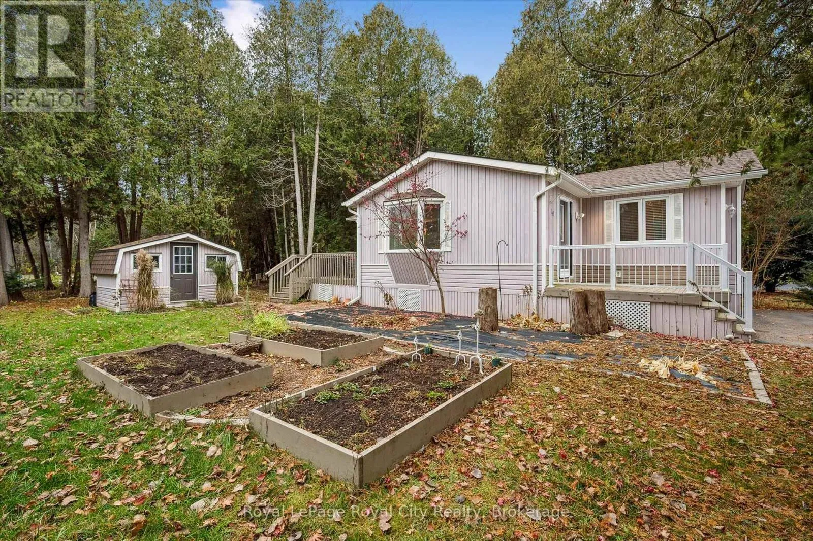 Cross Streets: Spruce Ave and Millcreek Rd. ** Directions: Travelling on Brock Rd (Hwy 6) turn East onto Cty Rd 34 to Millcreek Country Club entrance. Turn West onto Millcreek to Spruce to property. Spring is just around the corner, and 10 Spruce Ave. in Puslinch is where peaceful living meets an active, welcoming community. Located within the scenic Mill Creek Country Club and just minutes from Guelph's south end with quick access to the 401, this mature adult community offers the perfect balance of tranquility and convenience.This lovingly maintained 807 sq. ft. home is filled with natural light and thoughtfully designed living space. The bright dining area features sliding doors leading to the deck, while the open-concept living room showcases a charming bay window and built-in bookshelves/entertainment console. The kitchen is both functional and stylish, complete with a stunning butcher-block island and newer kitchen flooring, ideal for cooking, entertaining, or enjoying your morning coffee.Surrounded by mature trees, gardens, and raised beds, the outdoor space offers a serene, year-round setting. Additional features include a detached storage shed and parking for two vehicles. Recent updates include a furnace installed in fall 2020, roof shingles and shed shingles approximately 2.5 years old, a newer water softener and reverse osmosis system, and the driveway was updated approximately four years ago.Mill Creek Country Club is known for its friendly, close-knit atmosphere, offering residents access to a clubhouse, outdoor pavilion, and a full calendar of social activities. Nearby amenities include the Aberfoyle Flea Market, community centre, and a variety of shopping, dining, and entertainment options.Whether you're looking for a seasonal retreat or comfortable year-round living, this vibrant and welcoming community truly has it all. (id:27476)