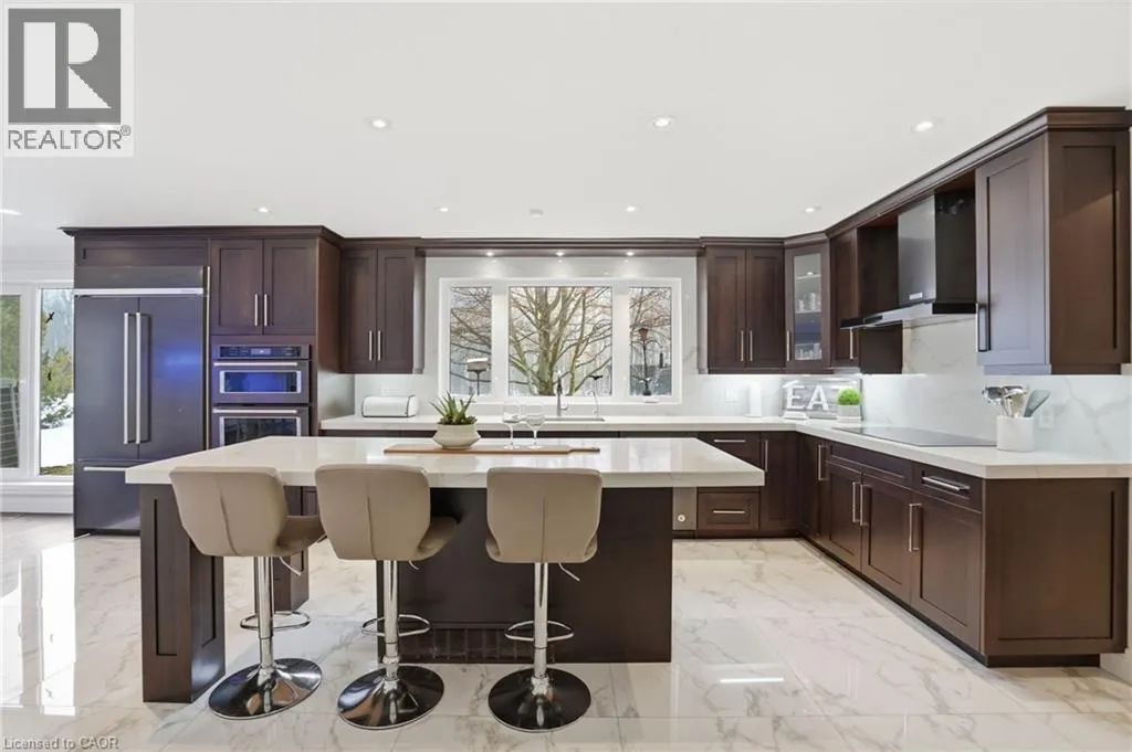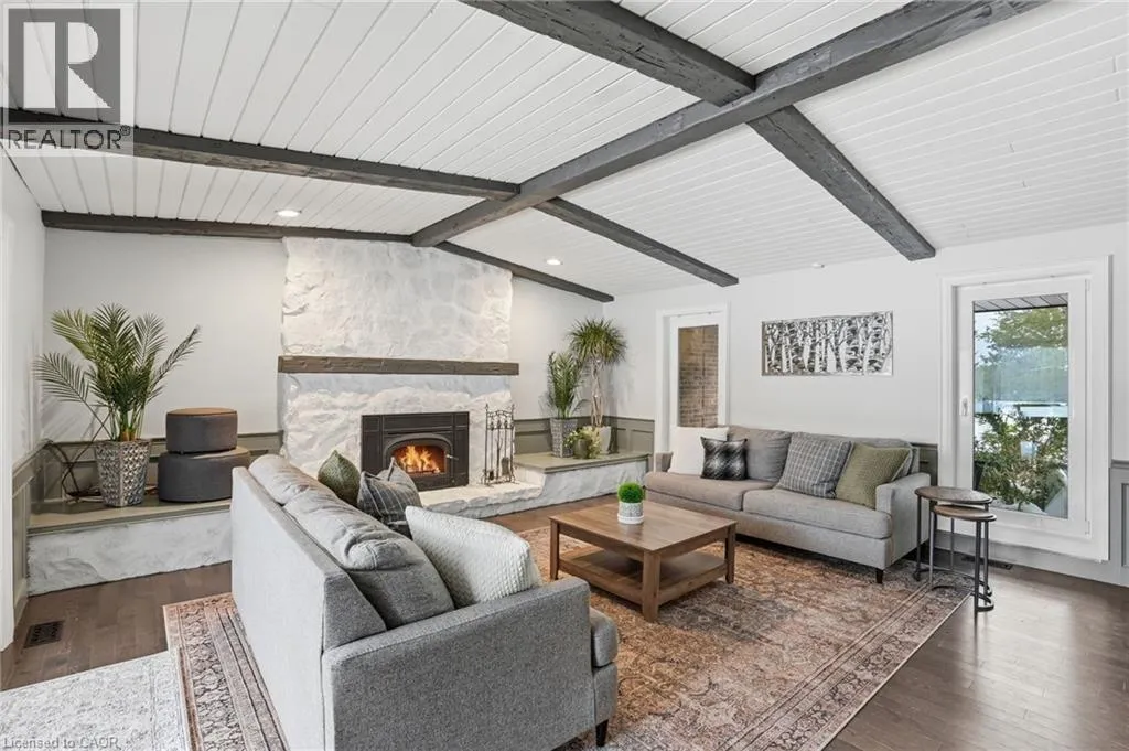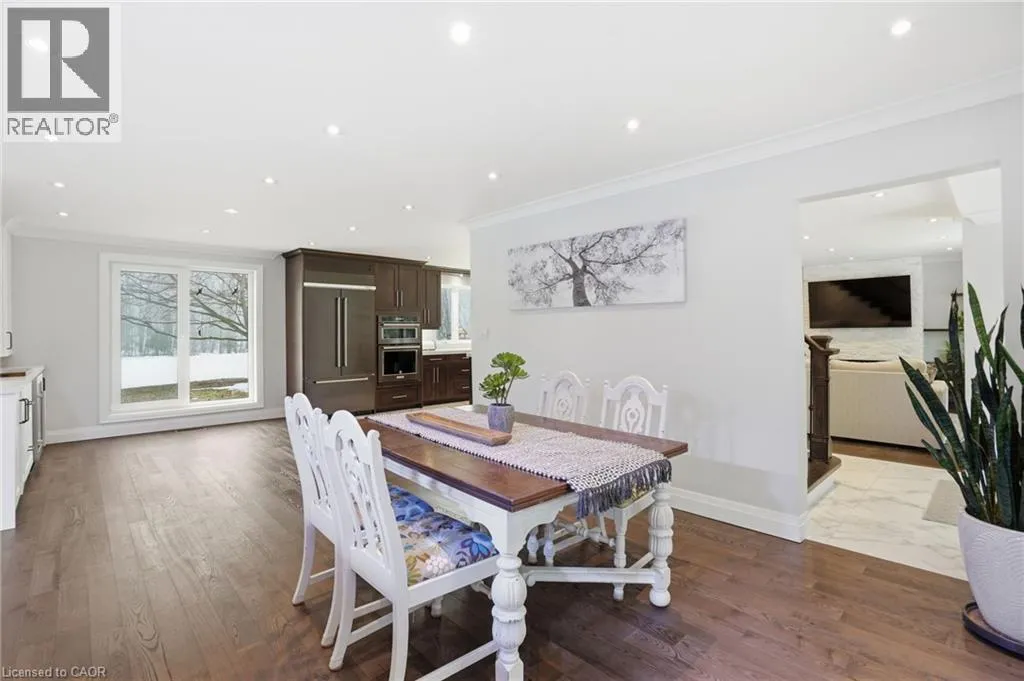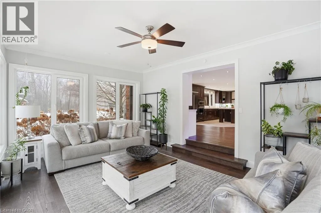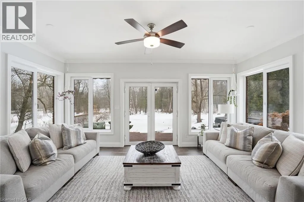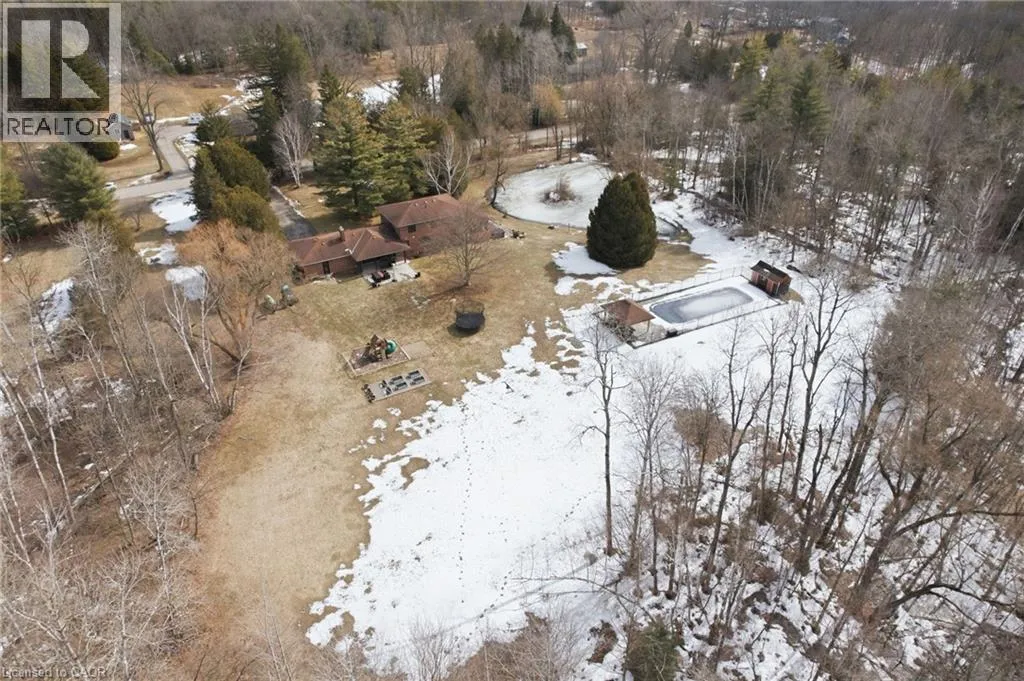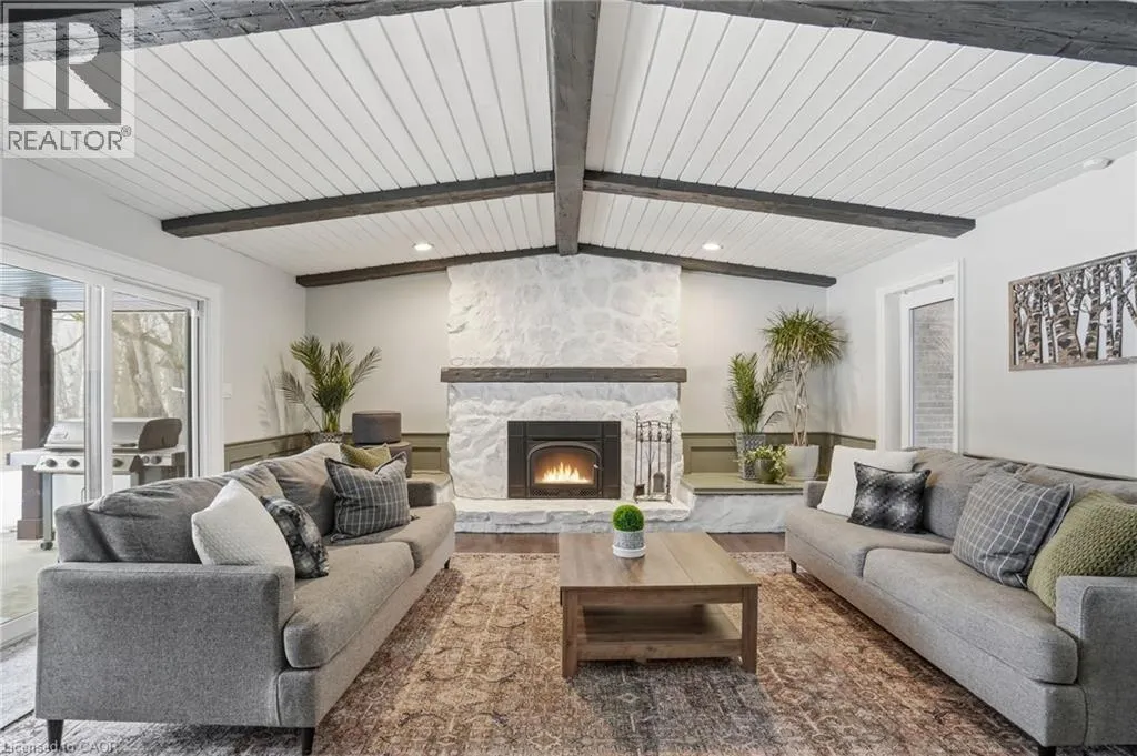 Hwy 6 to Gore Rd to Maddaugh Rd Discover private estate living on 8.5 acres in one of Puslinch's most coveted settings! Welcome to 3918 Maddaugh Road, where mature treed grounds, a spring-fed pond and resort-style outdoor living meet over 3,500 square feet of thoughtfully updated home. The family room is a true showstopper â a gorgeous stone fireplace, soaring vaulted wood ceilings and views across the property that stop you in your tracks. The sunken sunroom offers high ceilings and full views of the grounds, with a walk-out to the rear deck where the hot tub sits overlooking the tranquil pond â home to nesting turtles each spring. The renovated kitchen features an oversized island, quartz counters, built-in oven, heated floors and a new butler's pantry off the formal dining room. Upstairs, the primary suite is a true retreat with ensuite heated floors and double closets, plus three additional bedrooms and a full bath. The fully finished lower level adds a rec room, office, exercise room, fifth bedroom, full bath and walk-up garage access. Outside is the showpiece â a completely rebuilt 20 Ã 50 ft inground pool with all new stonework, iron gate, custom gazebo, pool house with dry sauna and multiple patio areas. Walking trails wind through the property with conservation trails a 5-minute walk away. Double garage with quick highway access. Donât be TOO LATE*! *REG TM. RSA. (id:27476)
