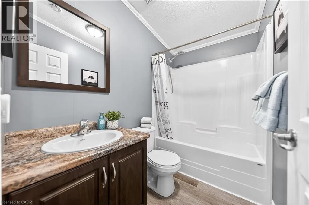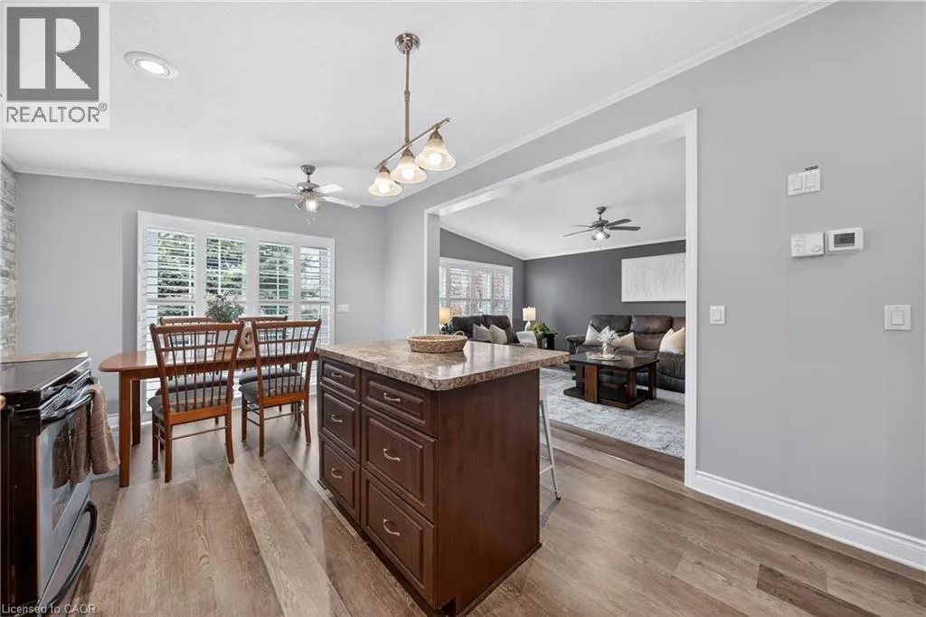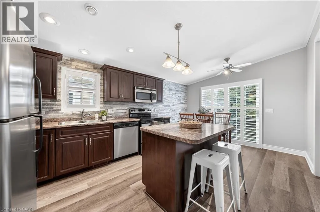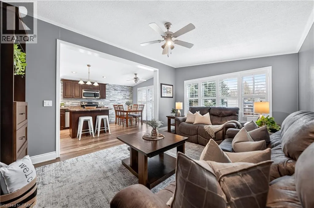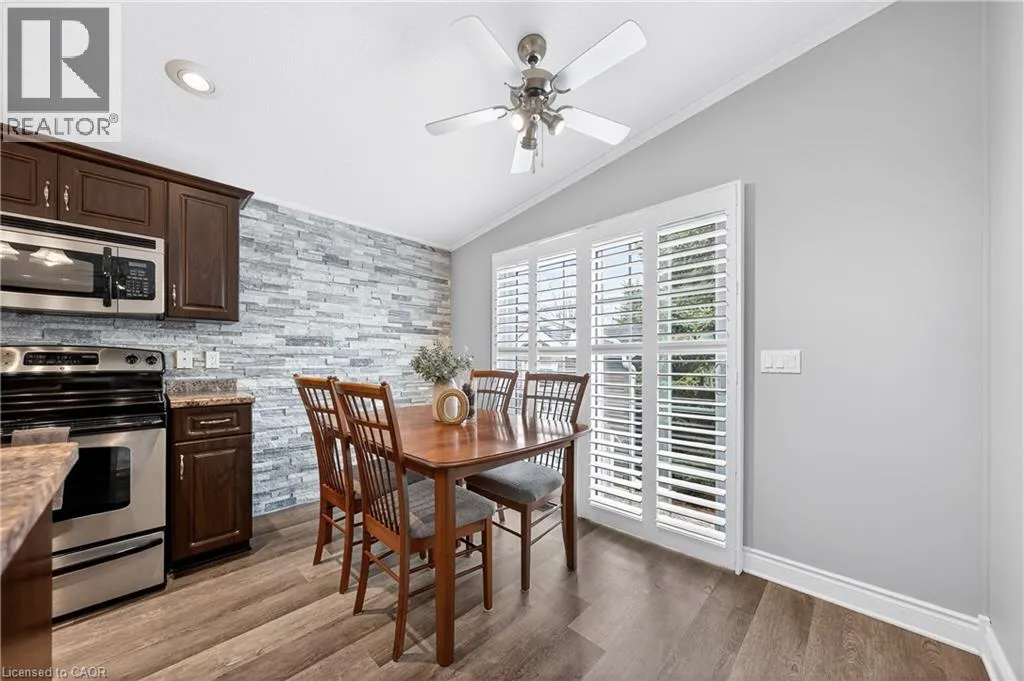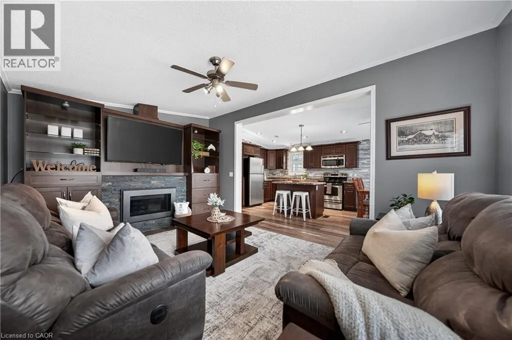 Spring is the perfect time to discover the resort-at-home lifestyle in the gated, freehold community of Mini Lakes. This warm, welcoming neighbourhood offers a unique way of life where neighbours pride themselves on knowing your name and a year-round social calendar keeps the community connected. 5 Elm St is a perfect complement to this incredible setting, having been meticulously maintained and kept spotless by its owner. The home features an open-concept layout with two spacious bedrooms, including a private ensuite with walk-in closet, plus an additional full bath with soaker tub. The heart of the home is the stunning living area, anchored by a custom wood-toned entertainment center with integrated pot lighting, expansive storage, and a striking stone-accented hearth surrounding a cozy gas fireplace. The kitchen is equally impressive, boasting stainless steel appliances and matching stone accents that tie the space together beautifully. Step outside to a low-maintenance, fully fenced backyard featuring a matching shed and an oversized porch with a covered gazebo-ideal for quiet afternoons. As part of this vibrant, golf-cart-friendly neighbourhood, you'll enjoy premium amenities including a heated outdoor pool, a grand recreation centre, and active bocce and dart leagues. Nature lovers will appreciate the three spring-fed lakes and canals perfect for kayaking, fishing, or lakeside strolls. More than just a home, this is a secure, active lifestyle where neighbours become friends and every day feels like a vacation. (id:27476)