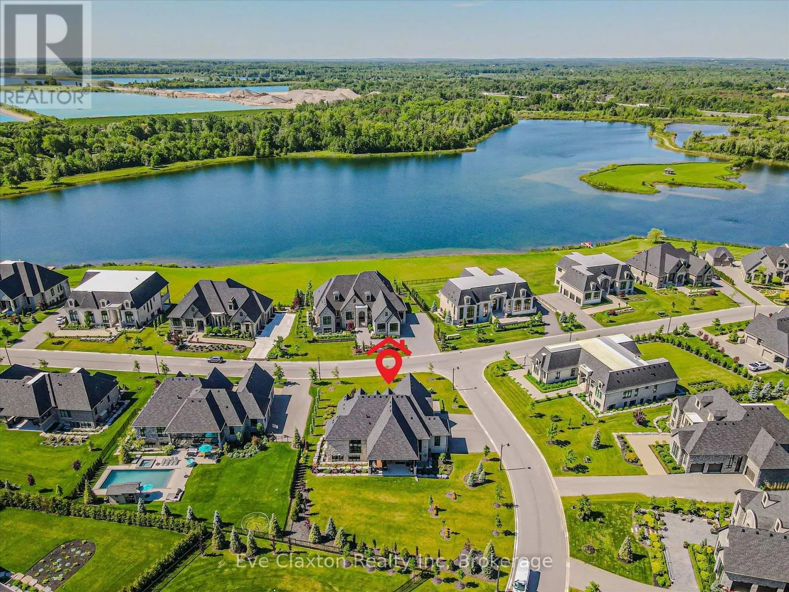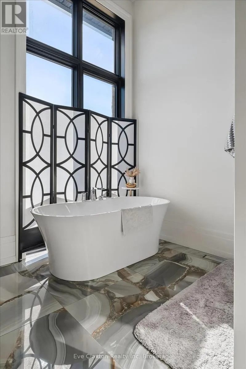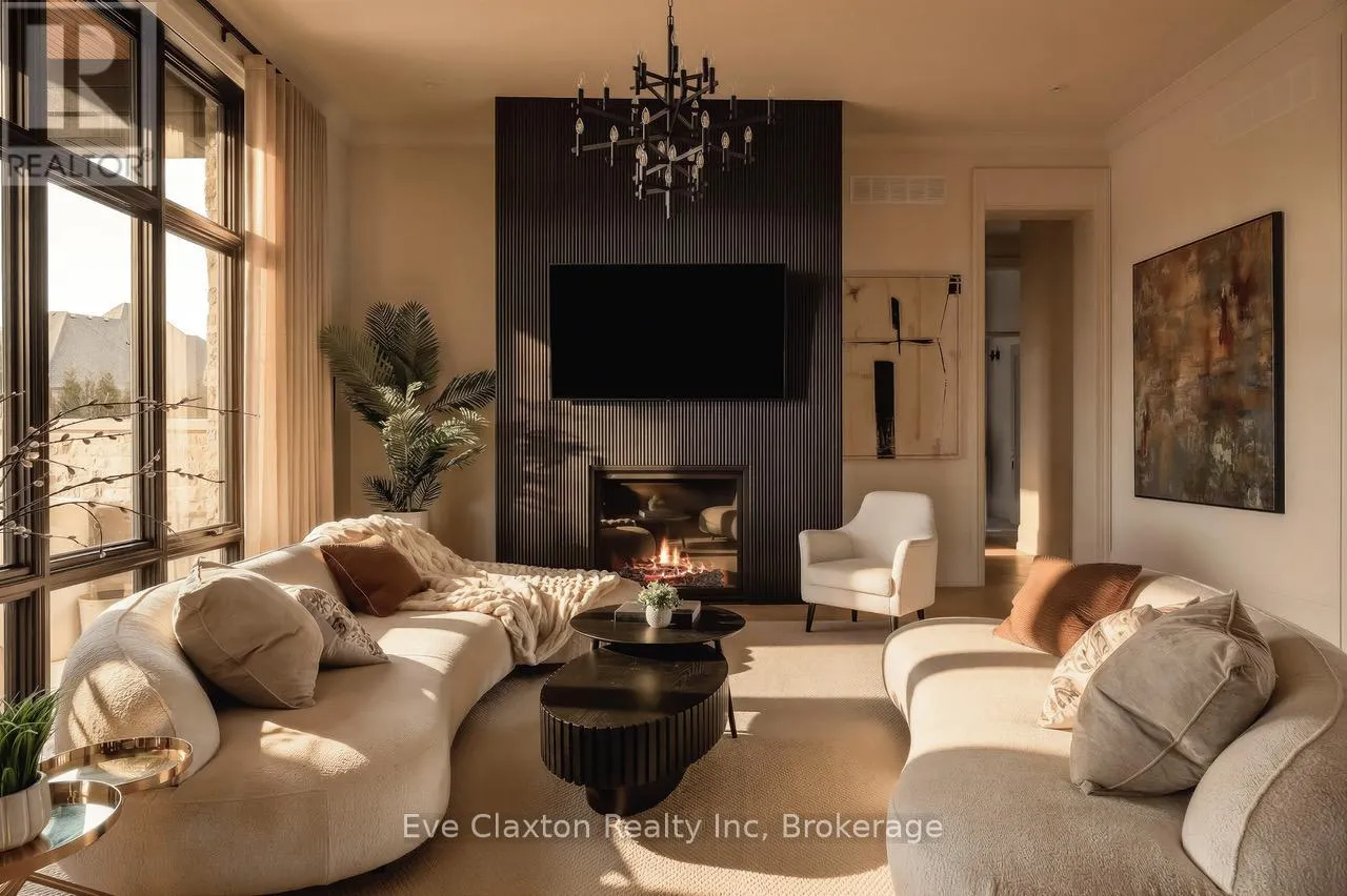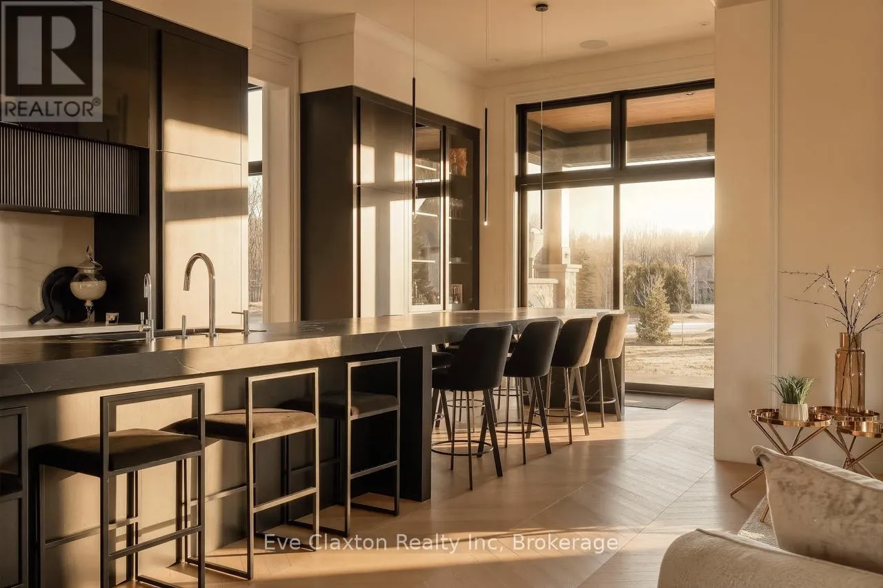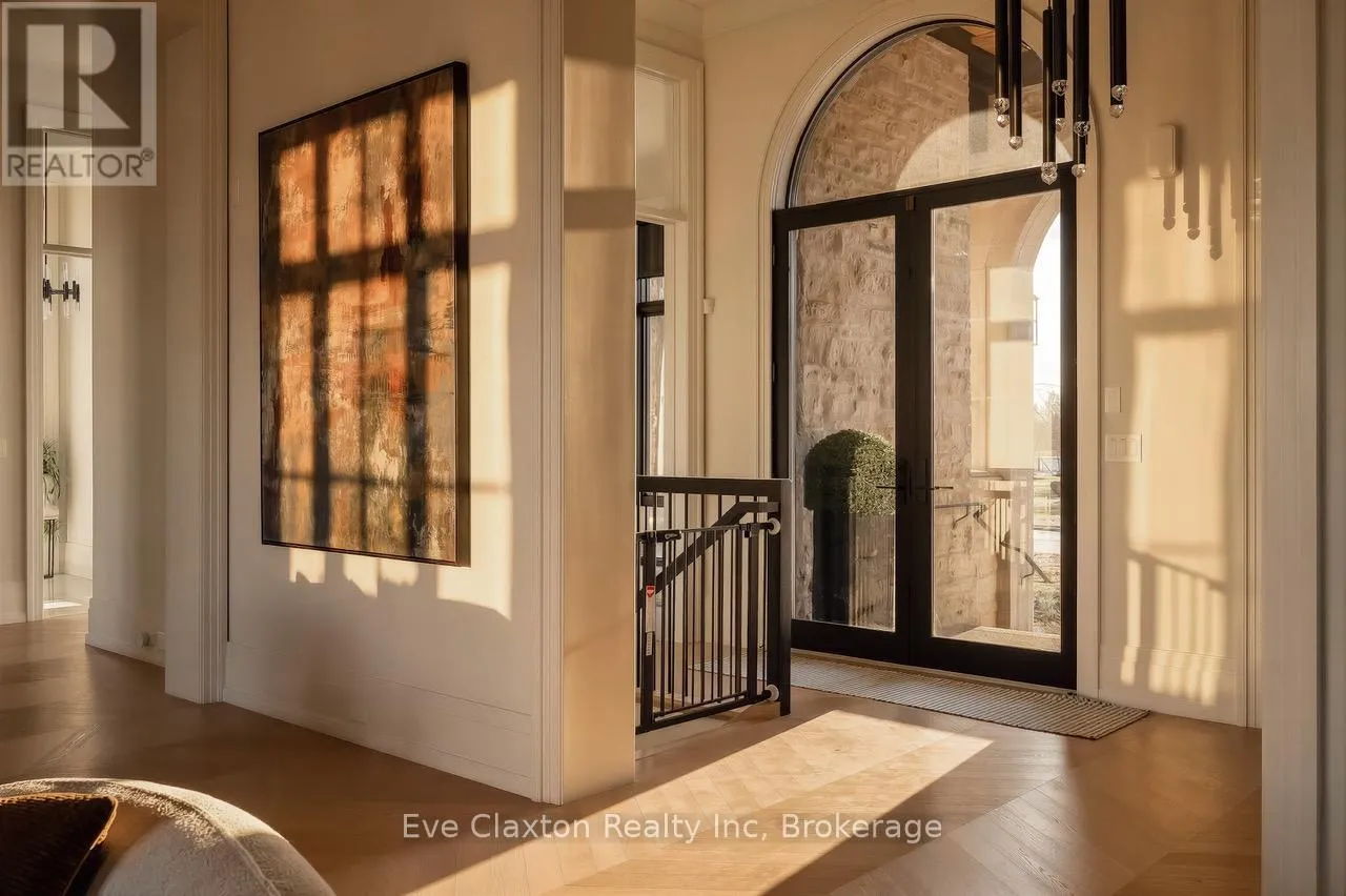 Cross Streets: Heritage Lake Dr. / Wellington 34. ** Directions: Heritage Lake Dr. is located off Wellington Rd. 34 between Gordon (Brock Rd) & Hanlon Expressway. Set within the exclusive gated community of Heritage Lake Estates, this extraordinary custom-built natural stone bungalow offers refined luxury on a private half-acre lot just steps from the lake. Perfectly positioned only minutes from Highway 401 and close to schools and amenities, this home delivers both privacy and exceptional convenience.From the moment you enter, the home impresses with 12-foot ceilings, striking chevron hardwood flooring, dramatic custom lighting, and a stunning fireplace feature wall. Expansive floor-to-ceiling windows flood the home with natural light, creating an atmosphere that is both sophisticated and welcoming. With over 4,200 square feet of impeccably designed living space, the home offers 4 spacious bedrooms and 5 luxurious bathrooms, along with heated floors and premium finishes throughout.At the heart of the home is a show-stopping chef's kitchen designed for grand entertaining, featuring built-in appliances, a walk-in pantry, and an impressive 20-foot granite island with seating for up to 15 guests.The private primary retreat offers a serene escape with a spa-inspired luxury ensuite and a custom walk-in closet with built-in cabinetry.The fully finished lower level continues the home's exceptional design with nearly 10-foot ceilings, oversized windows, radiant heated hardwood floors, and a cozy gas fireplace, creating the perfect space for entertaining, relaxing, or hosting guests.Outdoors, enjoy the beautifully landscaped grounds, complete with irrigation, an oversized covered patio for year-round outdoor living, and an expansive three-car garage with additional driveway parking for 6-8 vehicles.Net-zero ready and fully smart-wired with fibre optics and natural gas, this forward-thinking home blends timeless craftsmanship with modern technology.A rare offering where architectural elegance, thoughtful design, and premium craftsmanship come together to create a truly exceptional home. (id:27476)