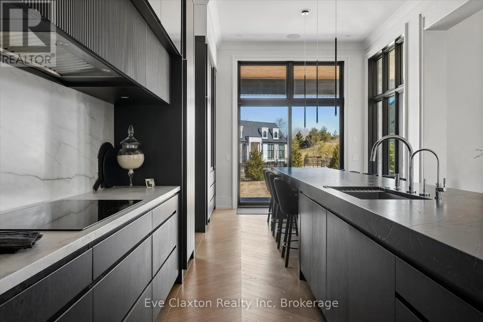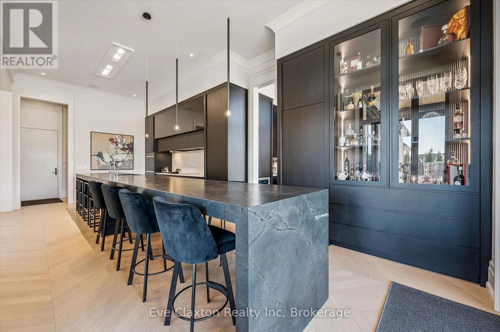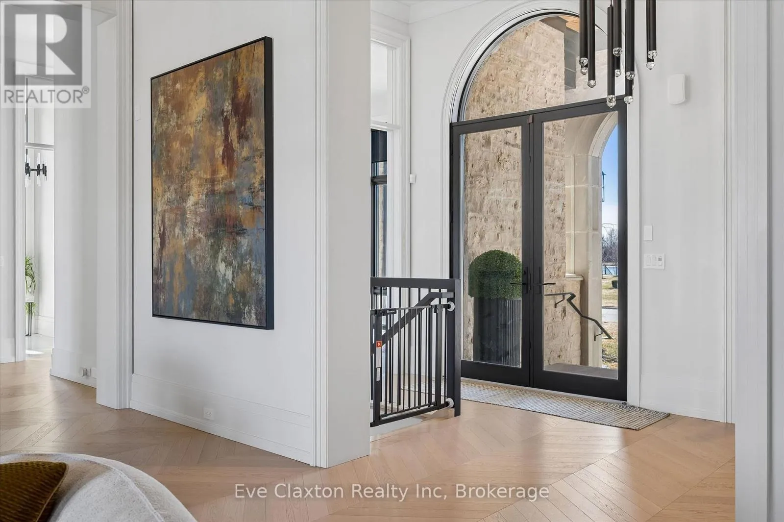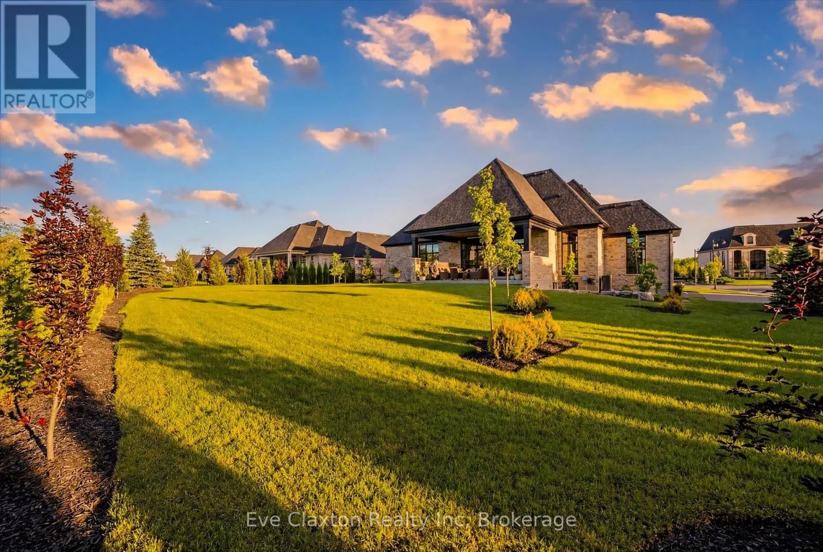Cross Streets: Heritage Lake Dr. / Wellington 34. ** Directions: Heritage Lake Dr. is located off Wellington Rd. 34 between Gordon (Brock Rd) & Hanlon Expressway. Set within the exclusive gated community of Heritage Lake Estates, this extraordinary custom-built natural stone bungalow offers refined luxury on a private half-acre lot just steps from the lake. Perfectly positioned only minutes from Highway 401 and close to schools and amenities, this home delivers both privacy and exceptional convenience.From the moment you enter, the home impresses with 12-foot ceilings, striking chevron hardwood flooring, dramatic custom lighting, and a stunning fireplace feature wall. Expansive floor-to-ceiling windows flood the home with natural light, creating an atmosphere that is both sophisticated and welcoming. With over 4,200 square feet of impeccably designed living space, the home offers 4 spacious bedrooms and 5 luxurious bathrooms, along with heated floors and premium finishes throughout.At the heart of the home is a show-stopping chef's kitchen designed for grand entertaining, featuring built-in appliances, a walk-in pantry, and an impressive 20-foot granite island with seating for up to 15 guests.The private primary retreat offers a serene escape with a spa-inspired luxury ensuite and a custom walk-in closet with built-in cabinetry.The fully finished lower level continues the home's exceptional design with nearly 10-foot ceilings, oversized windows, radiant heated hardwood floors, and a cozy gas fireplace, creating the perfect space for entertaining, relaxing, or hosting guests.Outdoors, enjoy the beautifully landscaped grounds, complete with irrigation, an oversized covered patio for year-round outdoor living, and an expansive three-car garage with additional driveway parking for 6-8 vehicles.Net-zero ready and fully smart-wired with fibre optics and natural gas, this forward-thinking home blends timeless craftsmanship with modern technology.A rare offering where architectural elegance, thoughtful design, and premium craftsmanship come together to create a truly exceptional home. (id:27476)