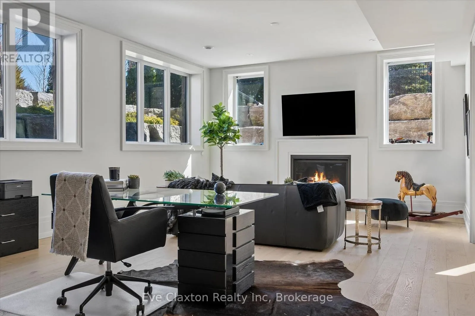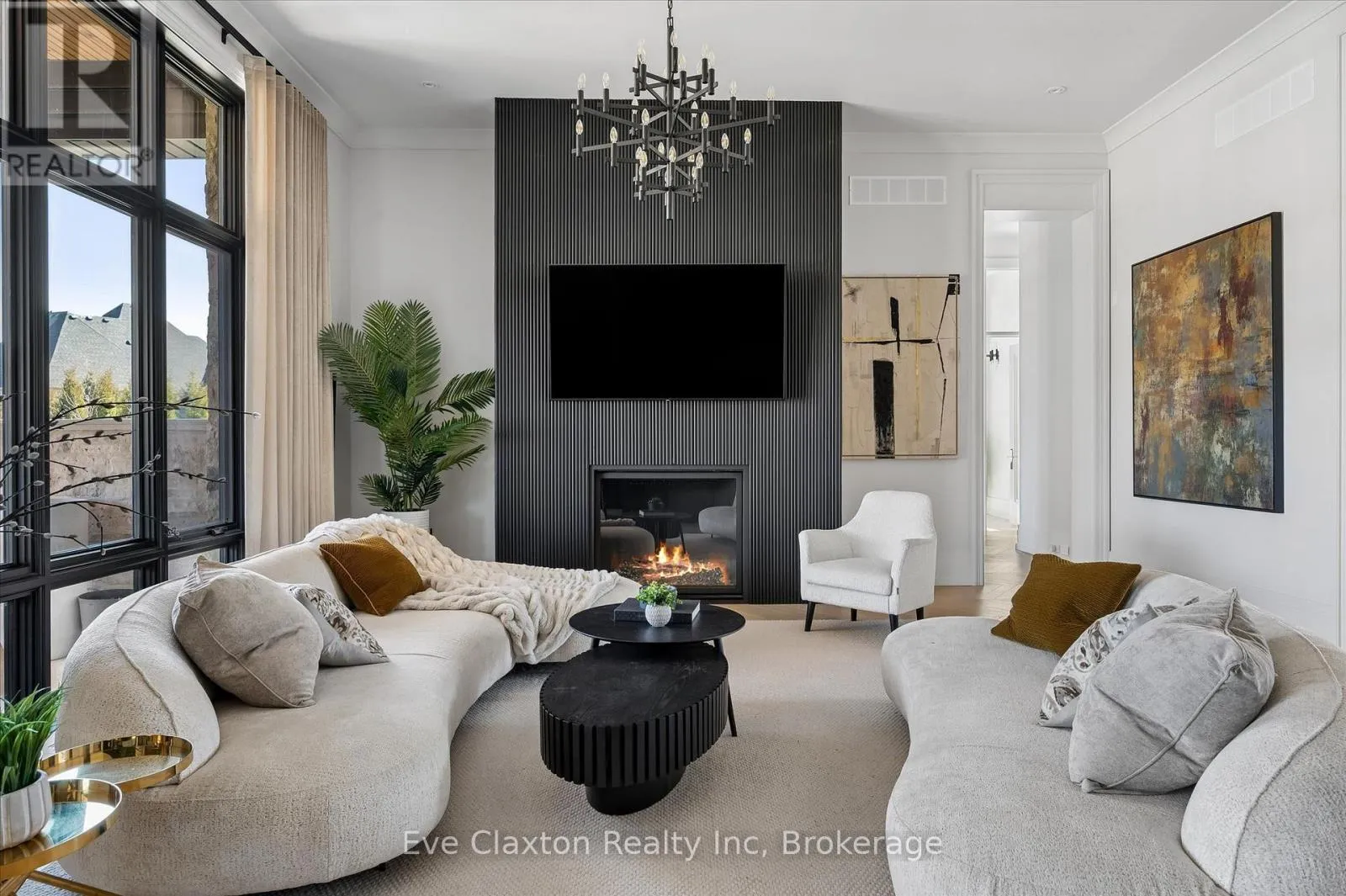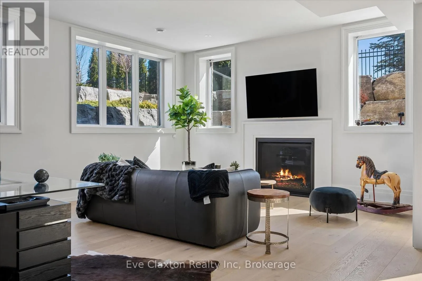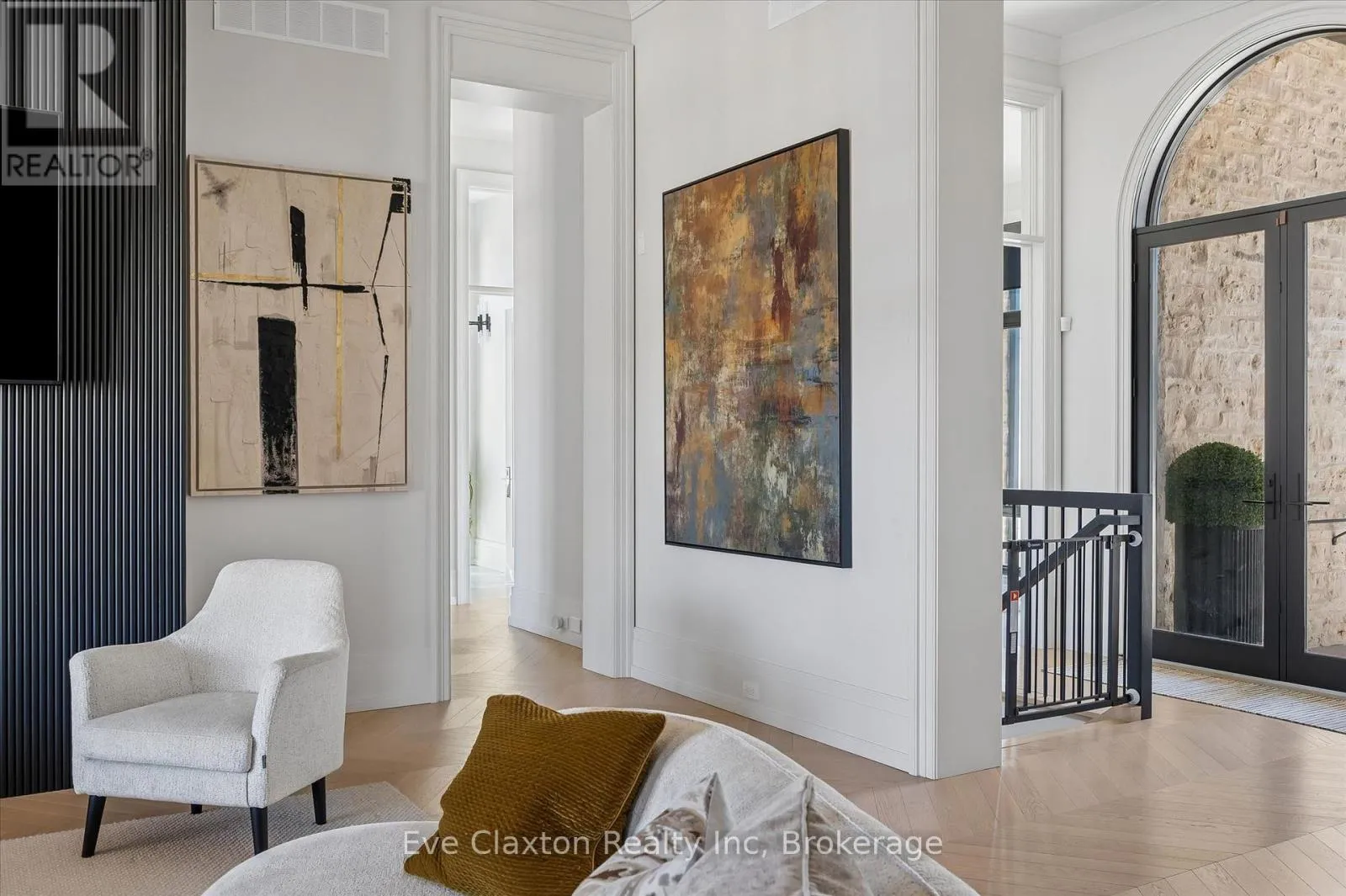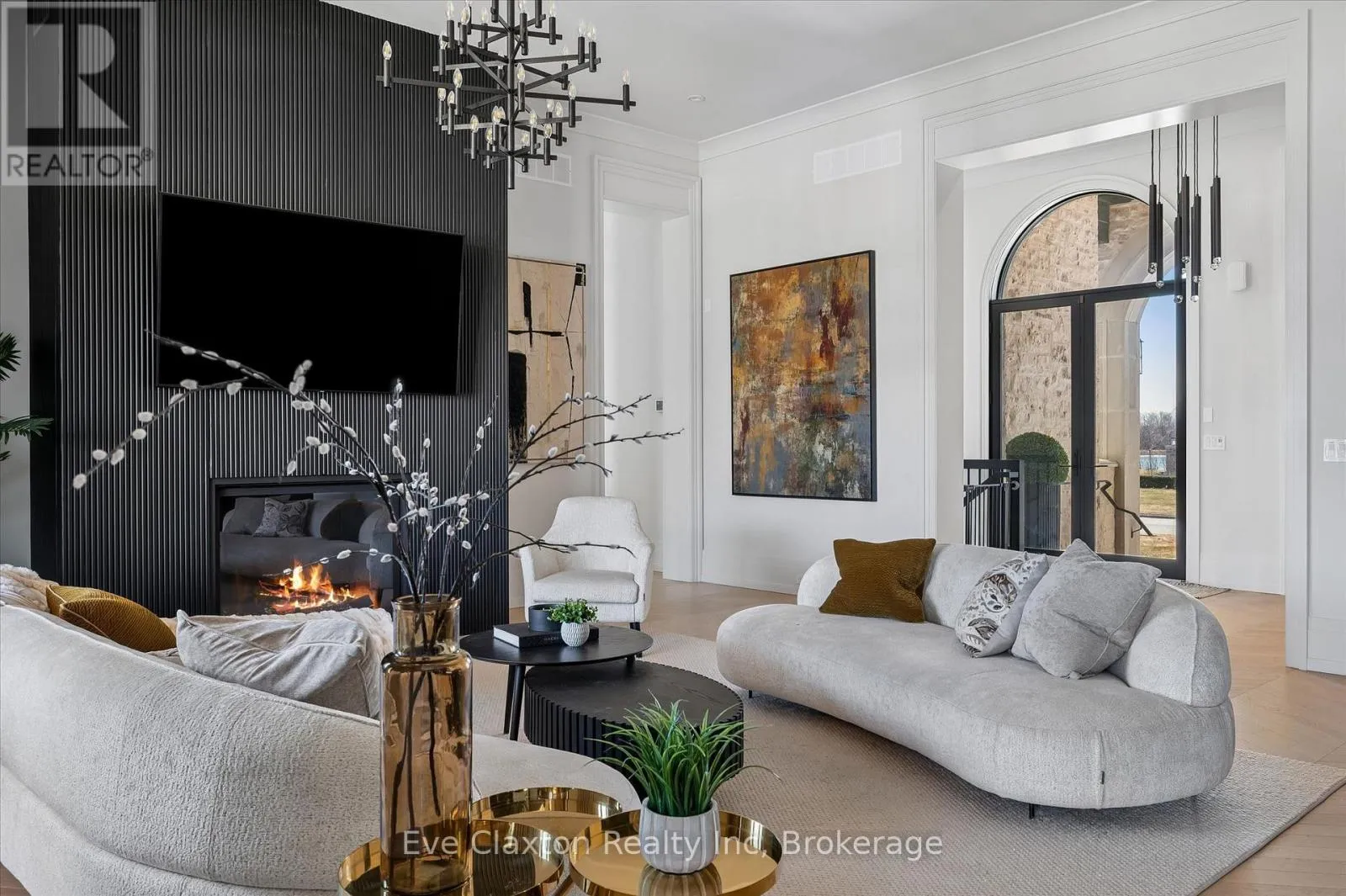 Cross Streets: Heritage Lake Dr. / Wellington 34. ** Directions: Heritage Lake Dr. is located off Wellington Rd. 34 between Gordon (Brock Rd) & Hanlon Expressway. Set within the exclusive gated community of Heritage Lake Estates, this extraordinary custom-built natural stone bungalow offers refined luxury on a private half-acre lot just steps from the lake. Perfectly positioned only minutes from Highway 401 and close to schools and amenities, this home delivers both privacy and exceptional convenience.From the moment you enter, the home impresses with 12-foot ceilings, striking chevron hardwood flooring, dramatic custom lighting, and a stunning fireplace feature wall. Expansive floor-to-ceiling windows flood the home with natural light, creating an atmosphere that is both sophisticated and welcoming. With over 4,200 square feet of impeccably designed living space, the home offers 4 spacious bedrooms and 5 luxurious bathrooms, along with heated floors and premium finishes throughout.At the heart of the home is a show-stopping chef's kitchen designed for grand entertaining, featuring built-in appliances, a walk-in pantry, and an impressive 20-foot granite island with seating for up to 15 guests.The private primary retreat offers a serene escape with a spa-inspired luxury ensuite and a custom walk-in closet with built-in cabinetry.The fully finished lower level continues the home's exceptional design with nearly 10-foot ceilings, oversized windows, radiant heated hardwood floors, and a cozy gas fireplace, creating the perfect space for entertaining, relaxing, or hosting guests.Outdoors, enjoy the beautifully landscaped grounds, complete with irrigation, an oversized covered patio for year-round outdoor living, and an expansive three-car garage with additional driveway parking for 6-8 vehicles.Net-zero ready and fully smart-wired with fibre optics and natural gas, this forward-thinking home blends timeless craftsmanship with modern technology.A rare offering where architectural elegance, thoughtful design, and premium craftsmanship come together to create a truly exceptional home. (id:27476)