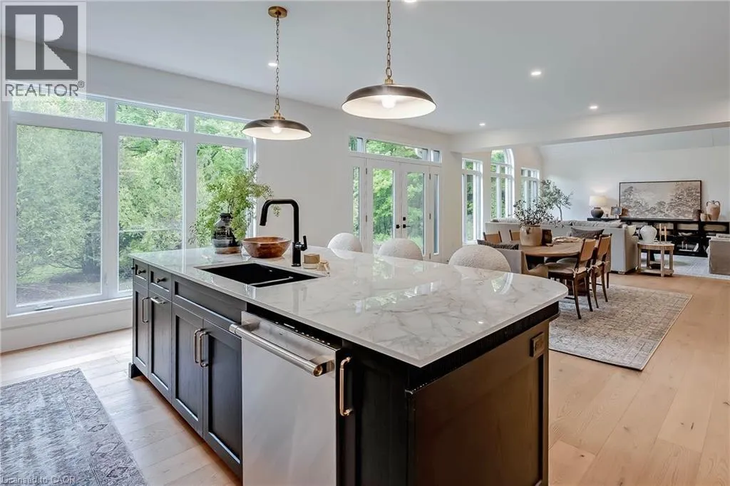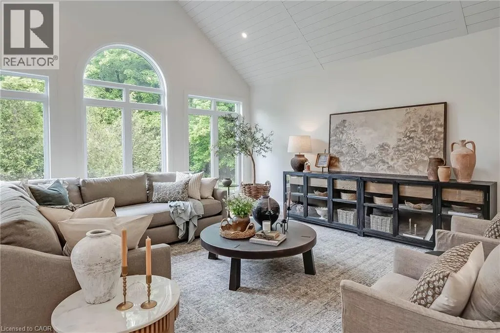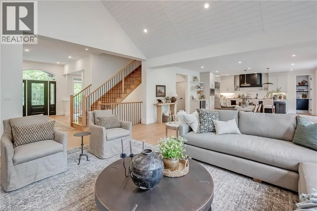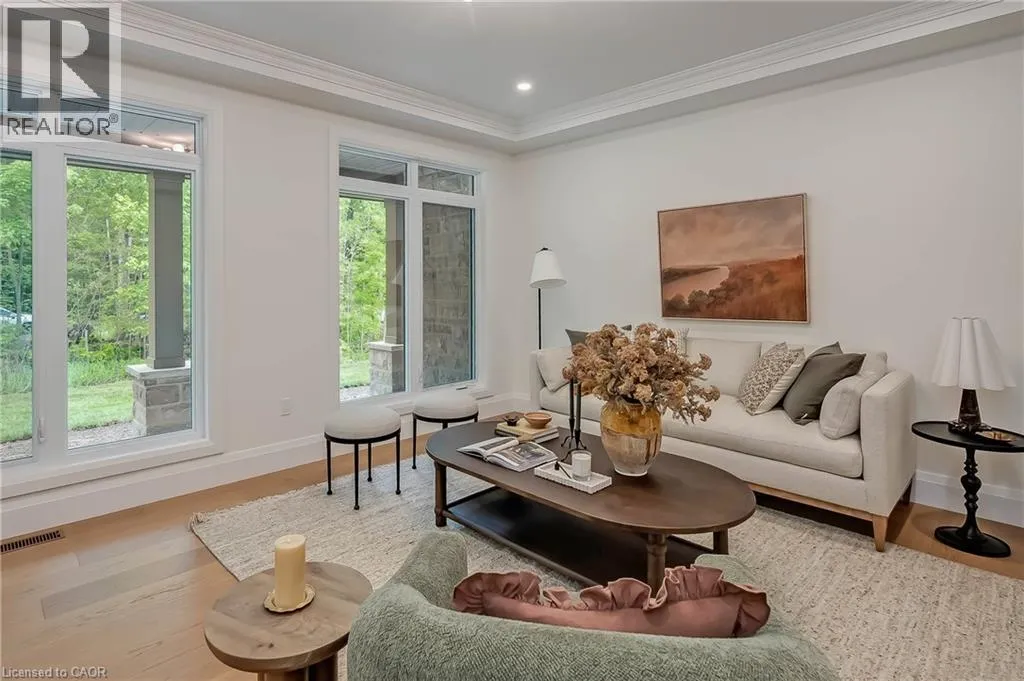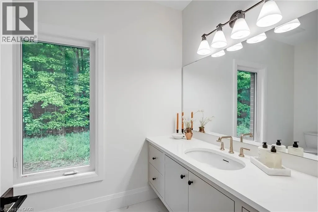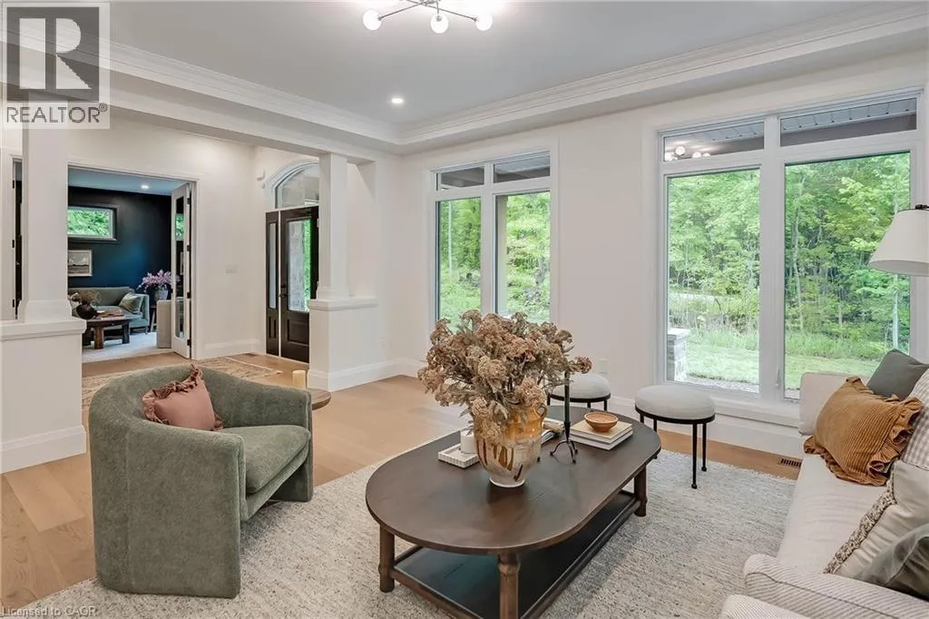 20 Sideroad/Concession Rd 11 Nestled in the picturesque Puslinch community on a pristine country road, this immaculate custom home offers refined traditional elegance with contemporary convenience. Ideally located southeast of Guelph and northeast of Aberfoyle, this location combines the serenity of country living with easy access to city amenities just 10 min away. Meticulously crafted by renowned Charleston Homes, this 3600 square foot (plus 500 sf of finished lower level space)showcases exceptional craftsmanship, expansive glazing, cathedral ceilings + unique designer details on a 1-acre lot.The aesthetic is classic yet sophisticated, perfectly blending traditional charm with modern comforts. The clever floor plan connects principal living spaces while ensuring privacy when desired. The heart of the home is the stunning Barzotti kitchen, complete with a walk-in pantry + ample cabinetry. Connected to the informal dining area and family room with soaring cathedral ceiling, this central hub features full-wall glazing framing lush, treed views. The mudroom is highly functional w/built-ins + interior access to the triple garage, complemented by a well-placed three-piece bath + coat closet. The primary suite is a sanctuary w/double-door entry, vaulted ceiling, expansive glazing, generous walk-in closet + a luxurious ensuite featuring a deep soaker tub, oversized glass shower +water closet. Two additional bedrooms are generously sized, each with ample storage, extensive glazing+private ensuites. A convenient laundry area completes this level. The partially finished lower level adds a fourth bedroom with walk-in + private ensuite, plus additional space with large windows, a rough-in for a two-piece bath + high ceilings. Charleston Homes has been building exceptional custom homes for over 30 years, known for quality craftsmanship and timeless style. This exquisite home offers the perfect blend of sophisticated living, natural beauty + proximity to major highways and urban amenities. (id:27476)
