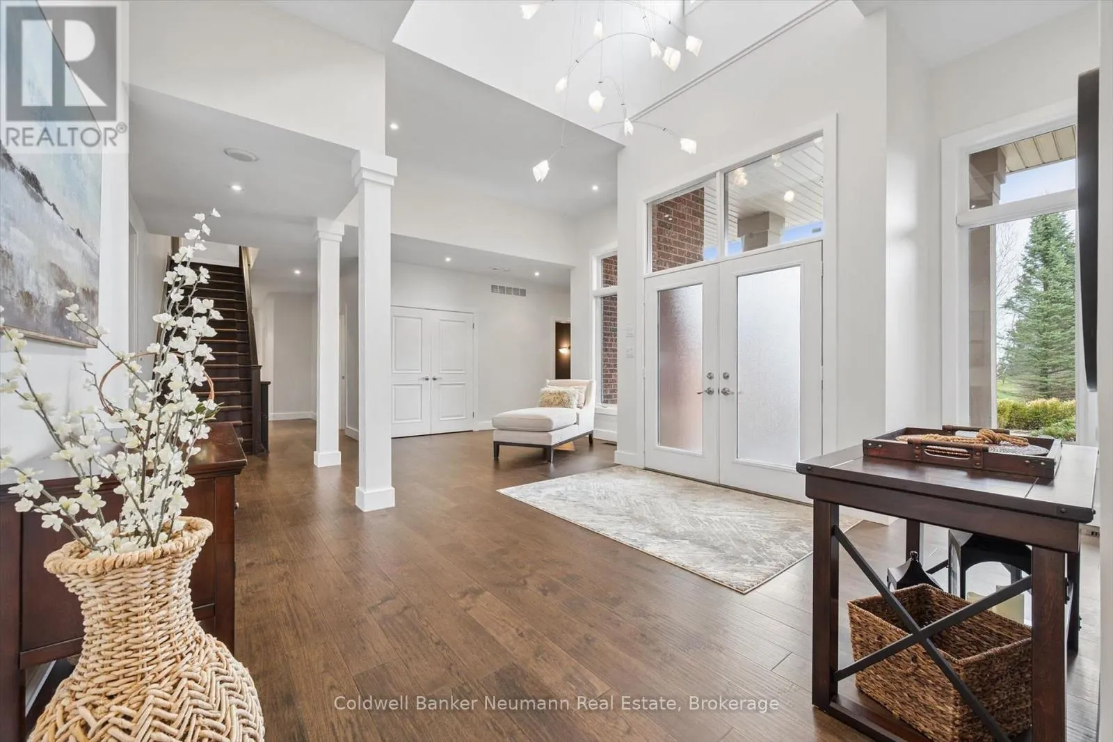 Cross Streets: Brock Road to Fox Run Drive. Left on Deer View Ridge. ** Directions: Brock Rd to Fox Run Dr to Deer View Rdge. Some estates are built. Others are earned. 10 Deer View Ridge is the latter - a magnificent 4,300 sq ft bungalow nestled on 1.3 pristine acres within one of the area's most coveted premier estate subdivisions.Step into a breathtaking foyer that rises dramatically overhead, flooding the entry with natural light and immediately setting the tone for the elegance throughout. Just freshly painted, the entire home feels crisp, bright, and completely move-in ready. The remainder of the home flows beautifully beneath nine-foot ceilings, creating an atmosphere that feels both grand and warmly livable. The gourmet kitchen, living, and dining areas flow seamlessly into one another - a natural entertainer's haven where every gathering feels effortless. When the day winds down, the privately situated bedroom wing offers a quiet retreat, thoughtfully set apart from the main living areas to give every member of the household the peace and privacy they deserve. Retreat to a master suite that rivals the finest spas. The oversized ensuite and dedicated dressing area offer a sanctuary of calm - your private escape from the world. A separate theatre room promises movie nights that never disappoint, while the bright loft with its own 2-piece bath opens the door to a home office, studio, or creative hideaway. The 2017 remodel elevated every detail of this home, and 2026 updates - including a new washer, dryer, and dishwasher - ensure it's move-in ready today. New bedroom carpets, a fully updated septic and irrigation system give you the ease of new construction with the soul of an established estate - protecting your investment for years to come. The 5-car garage adds exceptional practicality, and the unspoiled basement presents unlimited potential. All of this sits just 5 minutes from Hwy 401 and every south-end Guelph amenity you could need. 10 Deer View Ridge isn't just a home - it's a statement. Properties like this don't wait. Come experience it for yourself. (id:27476)