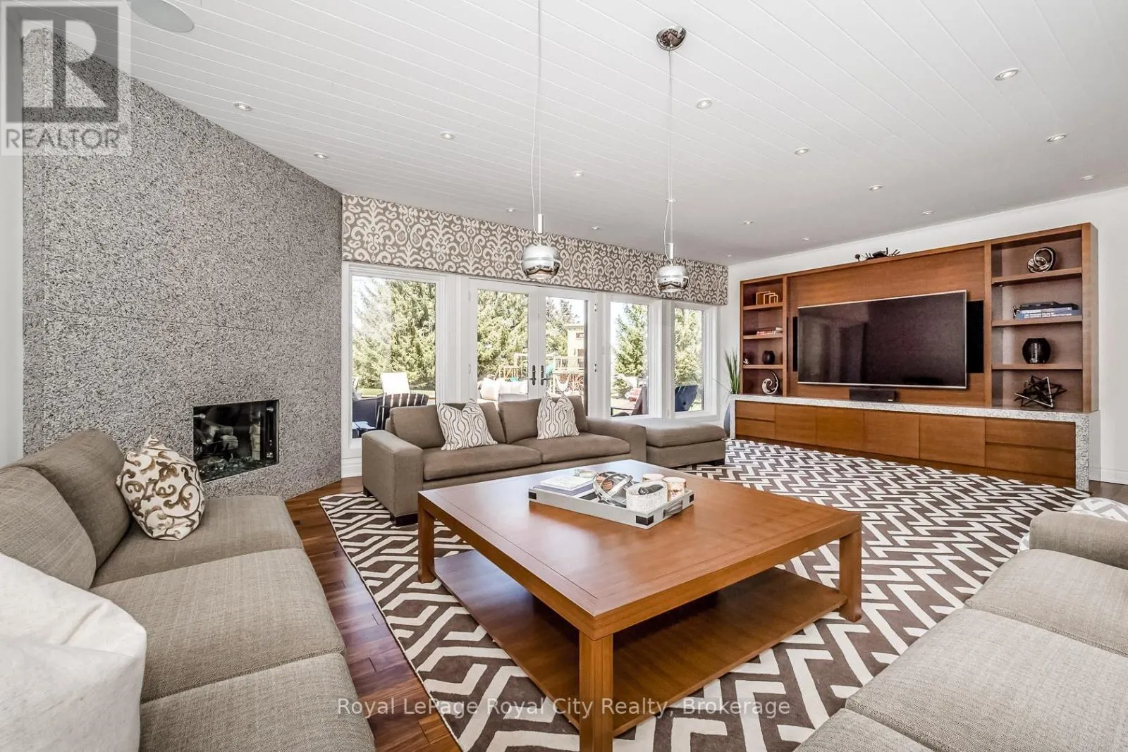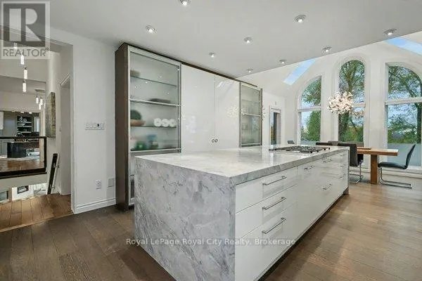Cross Streets: Brock Road. ** Directions: Brock Road to Fox Run Drive. Set high on a hill and surrounded by mature trees and backing onto parkland, this extraordinary residence offers the ultimate in privacy & sophistication. A classic, timeless exterior, perfectly situated in Fox Run Estates, one of the area's most coveted estate communities. Over 7300 sq ft of finished living space, it effortlessly blends elegance, comfort, design, and a touch of pizzazz. Magnificently located within minutes of all amenities as well as major transportation arteries, and yet a peaceful tranquil setting. Step inside and prepare to be impressed. The grand foyer boasting rich walnut flooring is flanked by a handsome home office on one side and an elegant formal dining room on the other - perfect for hosting special occasions. The private primary wing is a true retreat, complete with a newly renovated spa-like ensuite, a custom walk-in closet with Birdseye Maple cabinetry, and a private deck leading to a hot tub - the perfect spot to unwind at day's end. The state-of-the-art Downsview kitchen is a chef's dream, featuring an enormous granite island and abundant workspace for multiple cooks to collaborate in style. The bright breakfast area enjoys scenic countryside views, while the adjacent 2 storey sitting area offers a sunny sanctuary. This wing also provides access to a private front courtyard, a second main-floor powder room, laundry room and 3 car garage, along with convenient access to the rear yard and pool area. At the heart of the home, the family room is defined by a granite faced gas fireplace. Custom cabinetry houses an entertainment centre and French doors lead to an expansive rear deck overlooking the pool - a seamless blend of indoor and outdoor living. Upstairs, 2 bedrooms share a full Jack & Jill bath Third bedroom features its own private ensuite. Prepare to be dazzled once again on the lower level, where a recent renovation has transformed the space into an entertainer's dream. (id:27476)